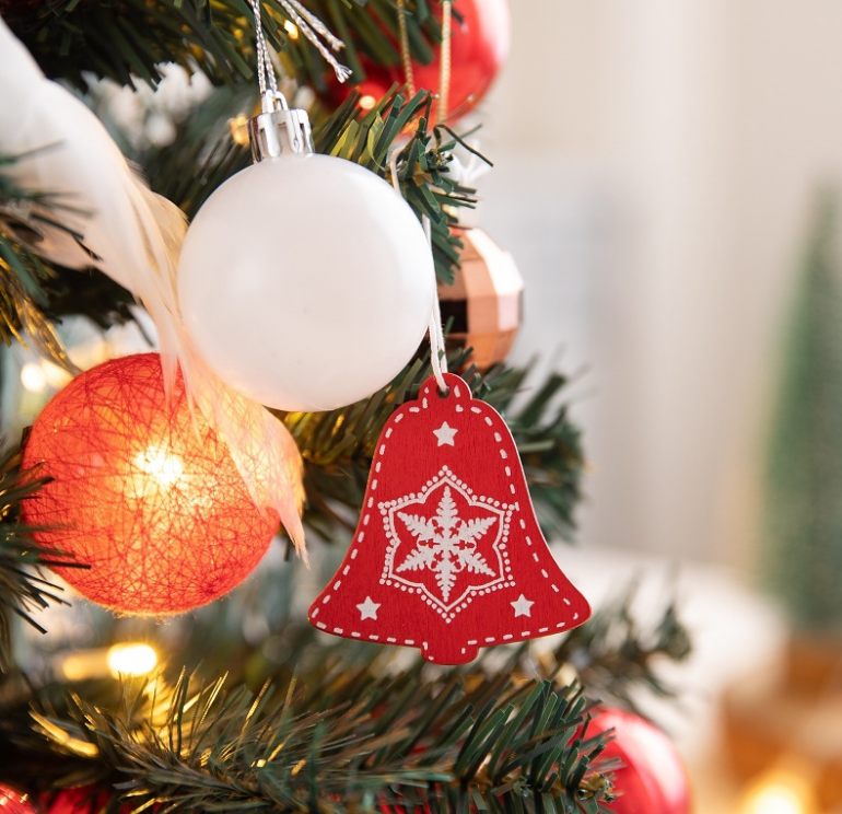60厘米高圣诞树上的装饰品比45厘米的要更丰富。