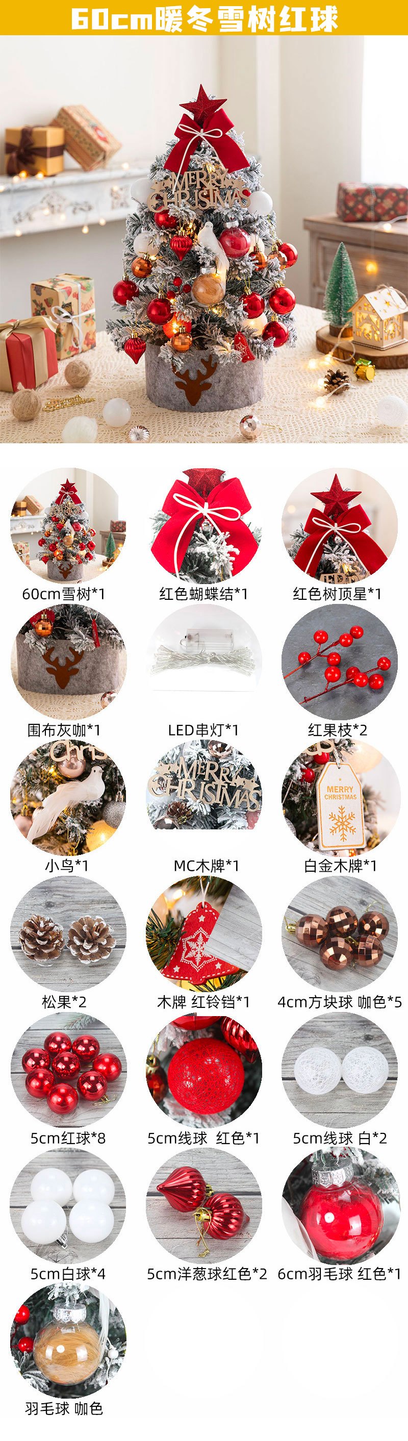 🤍 【60cm暖冬雪树红球】的装饰品数量更多,