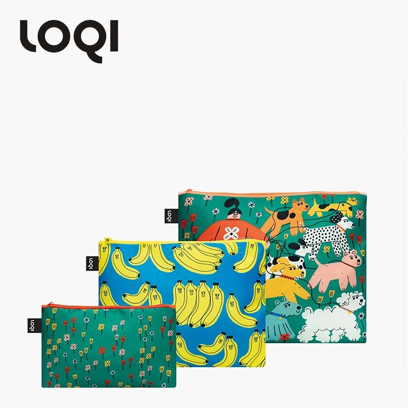 【收纳袋】德国LOQI艺术系列环保收纳袋三件套ZP.TS.BR香蕉与遛狗系列 文具数码配件收纳整理套包洗漱化妆防泼水潮流