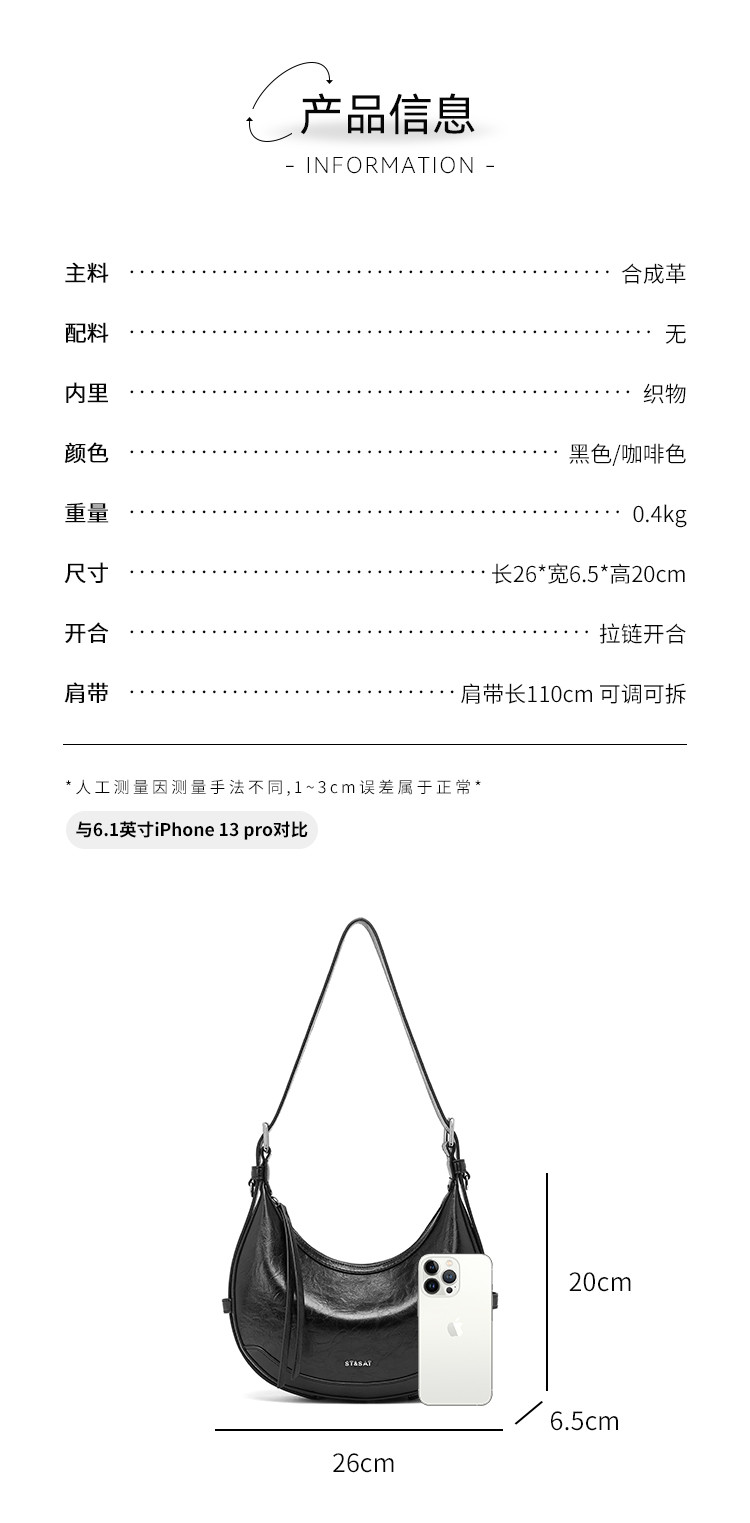 星期六高级感大容量拉链月亮包SSD521A0V7