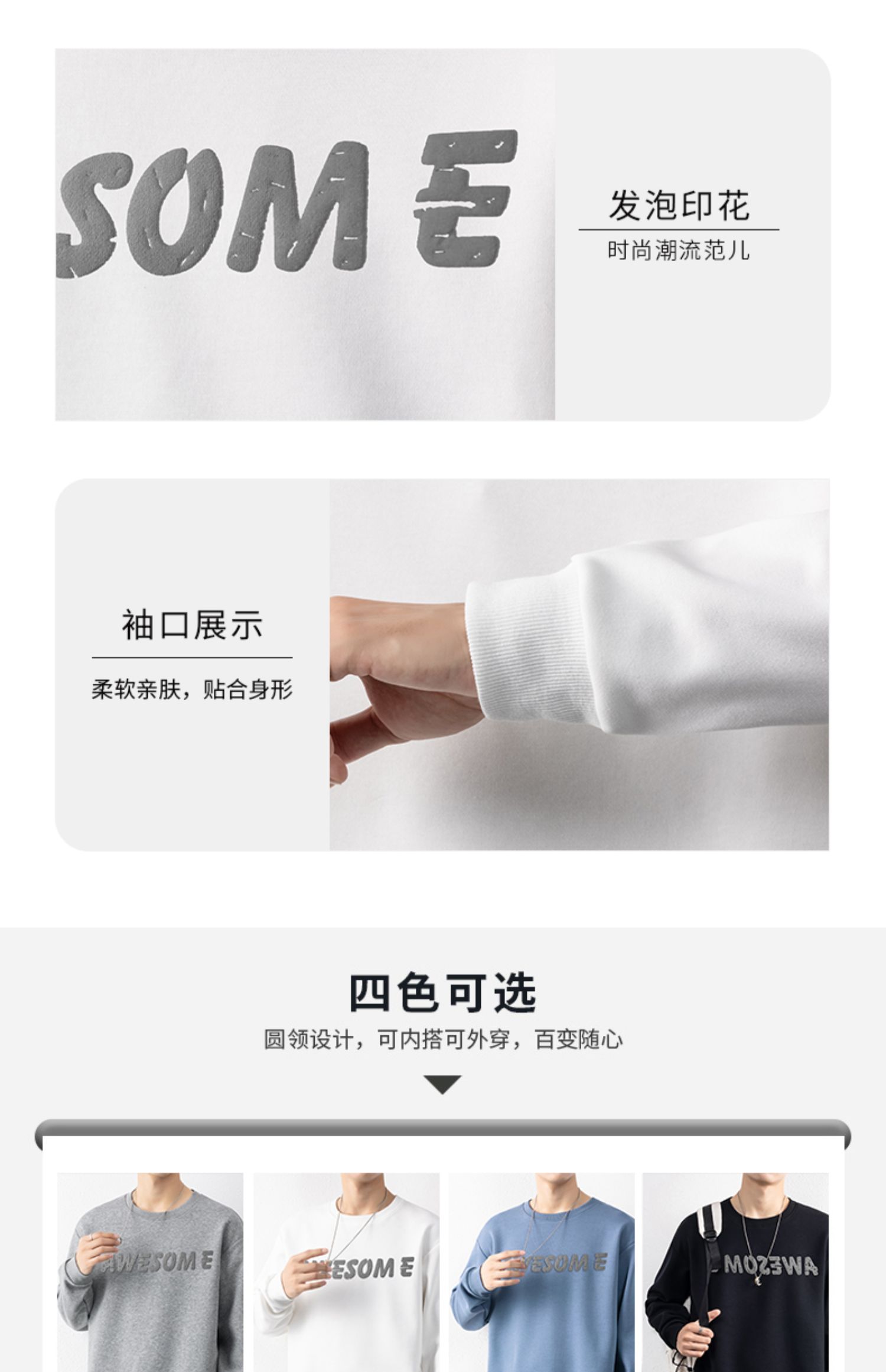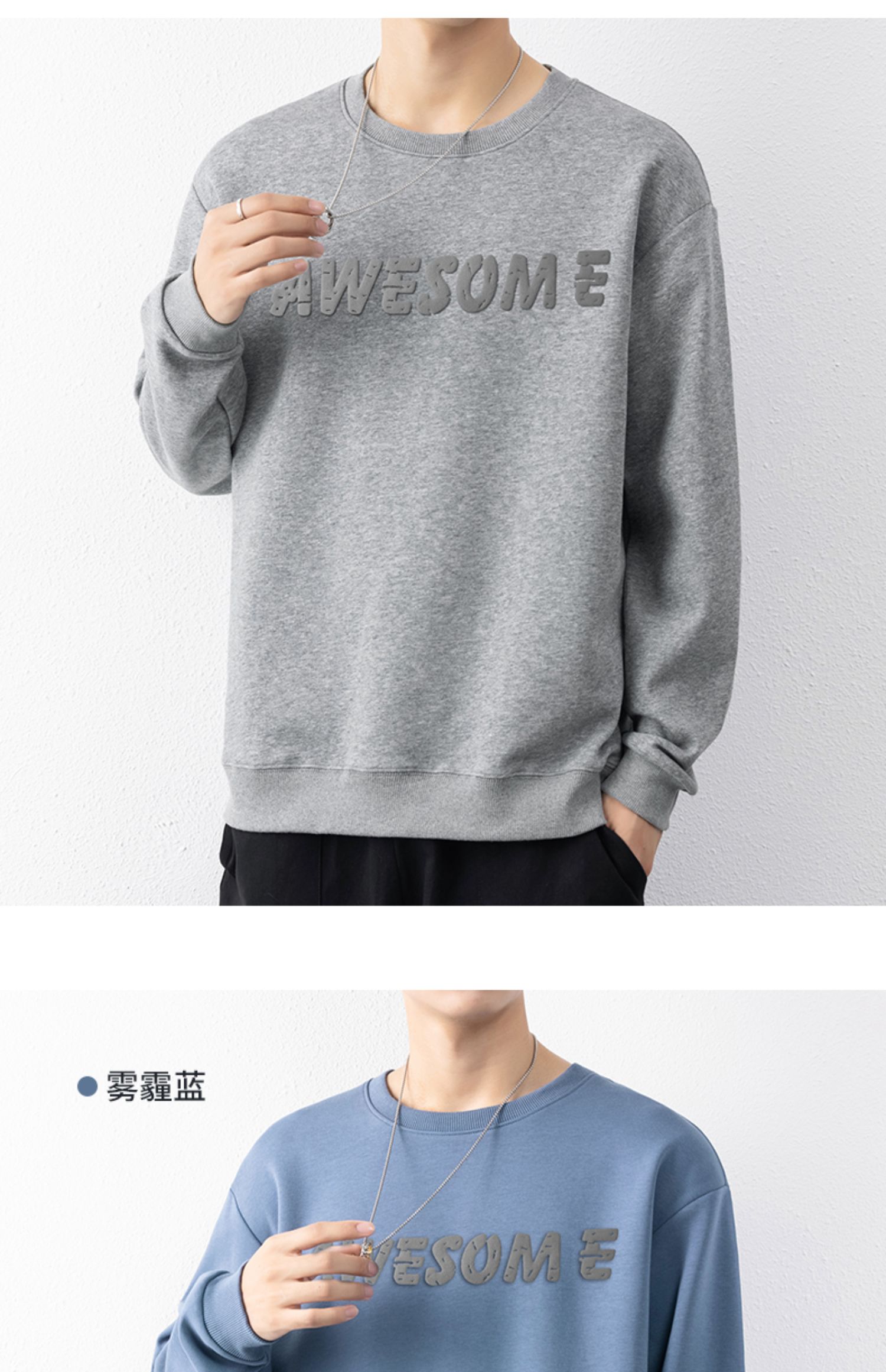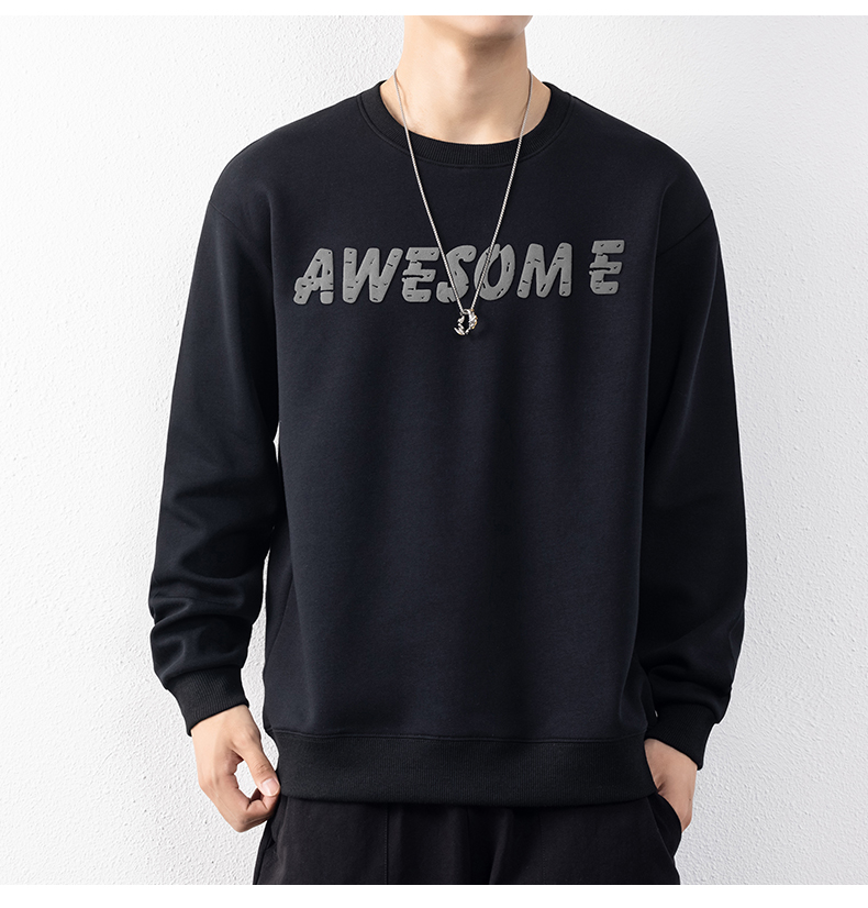圣得西男士时尚胸前字母印花卫衣年秋季宽松圆领套头外套2252978001