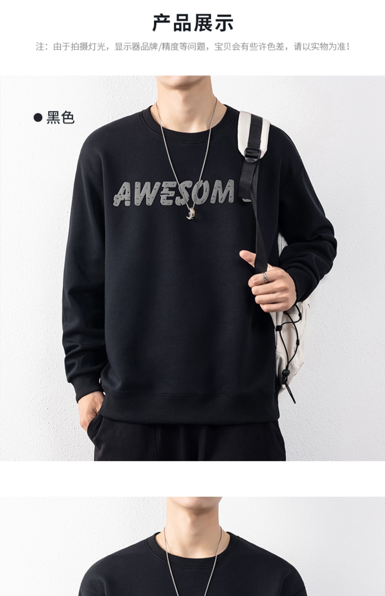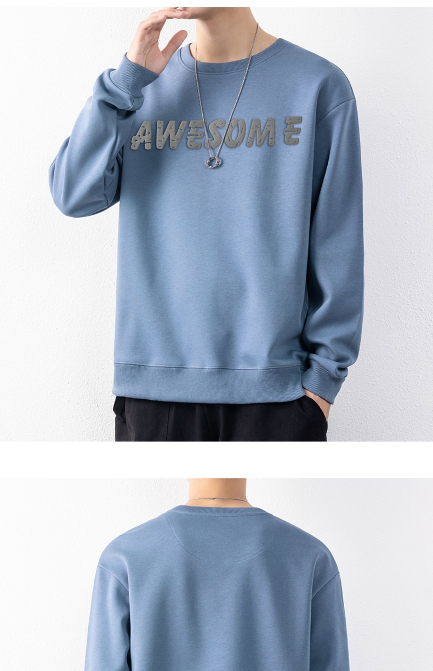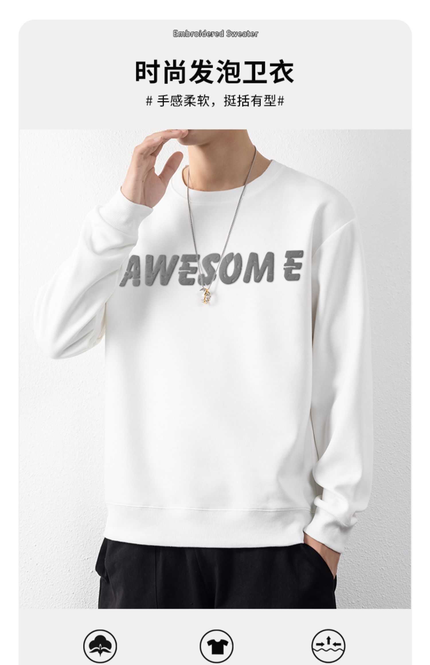 圣得西男士时尚胸前字母印花卫衣年秋季宽松圆领套头外套2252978001
