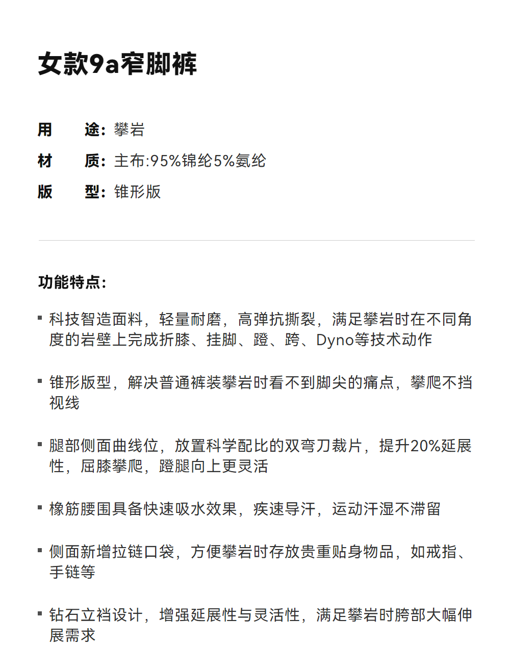 KAILAS凯乐石 女款9a窄脚裤 KG2515407