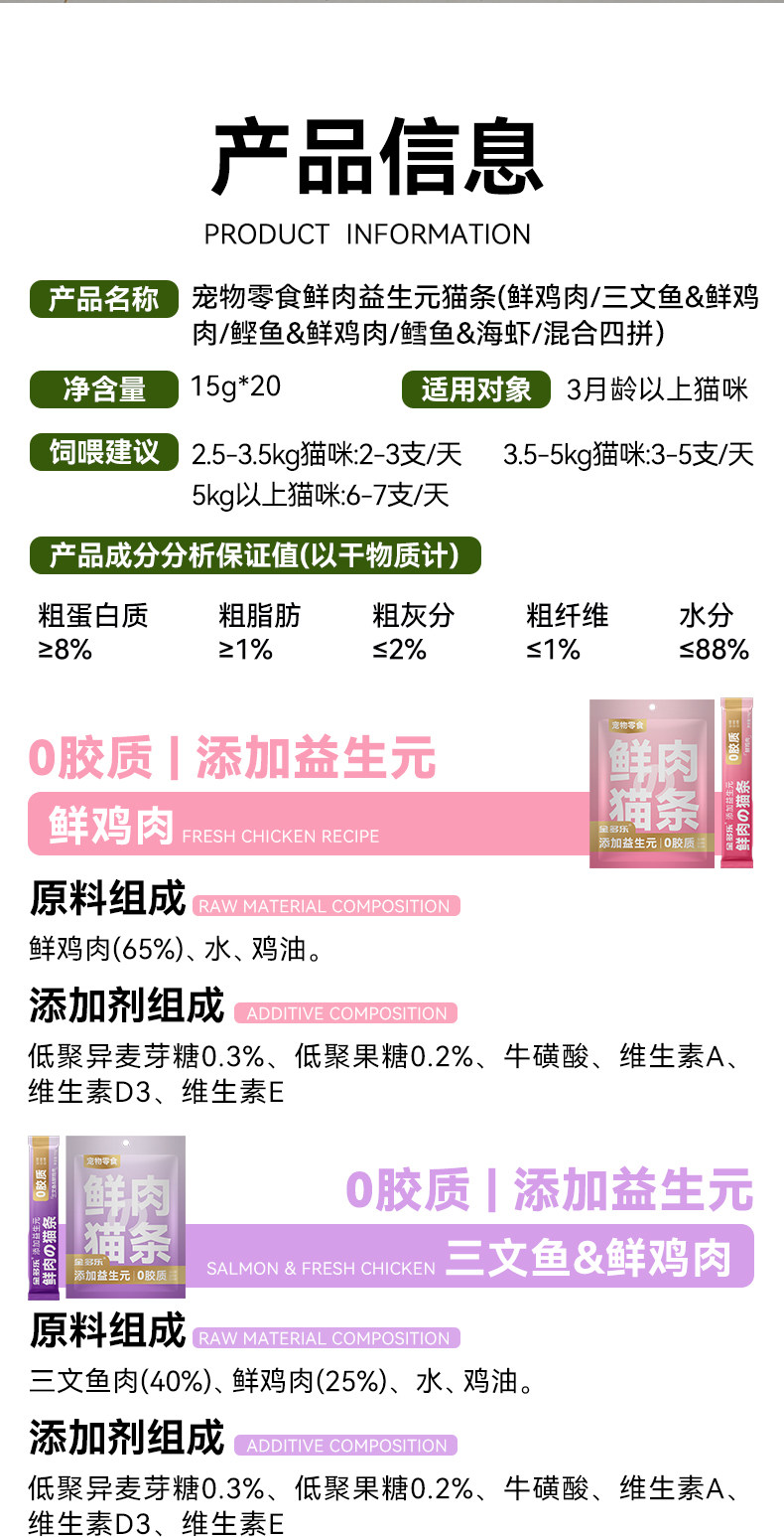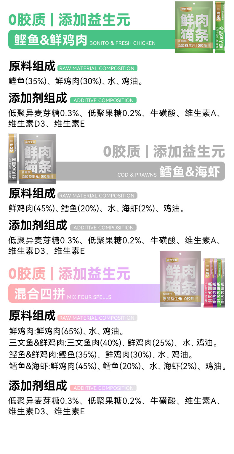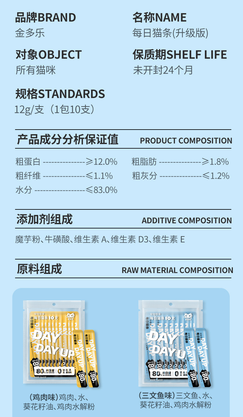 金多乐65%肉含量猫条15g*100支仅44.9(85%肉含量100支仅59.9)