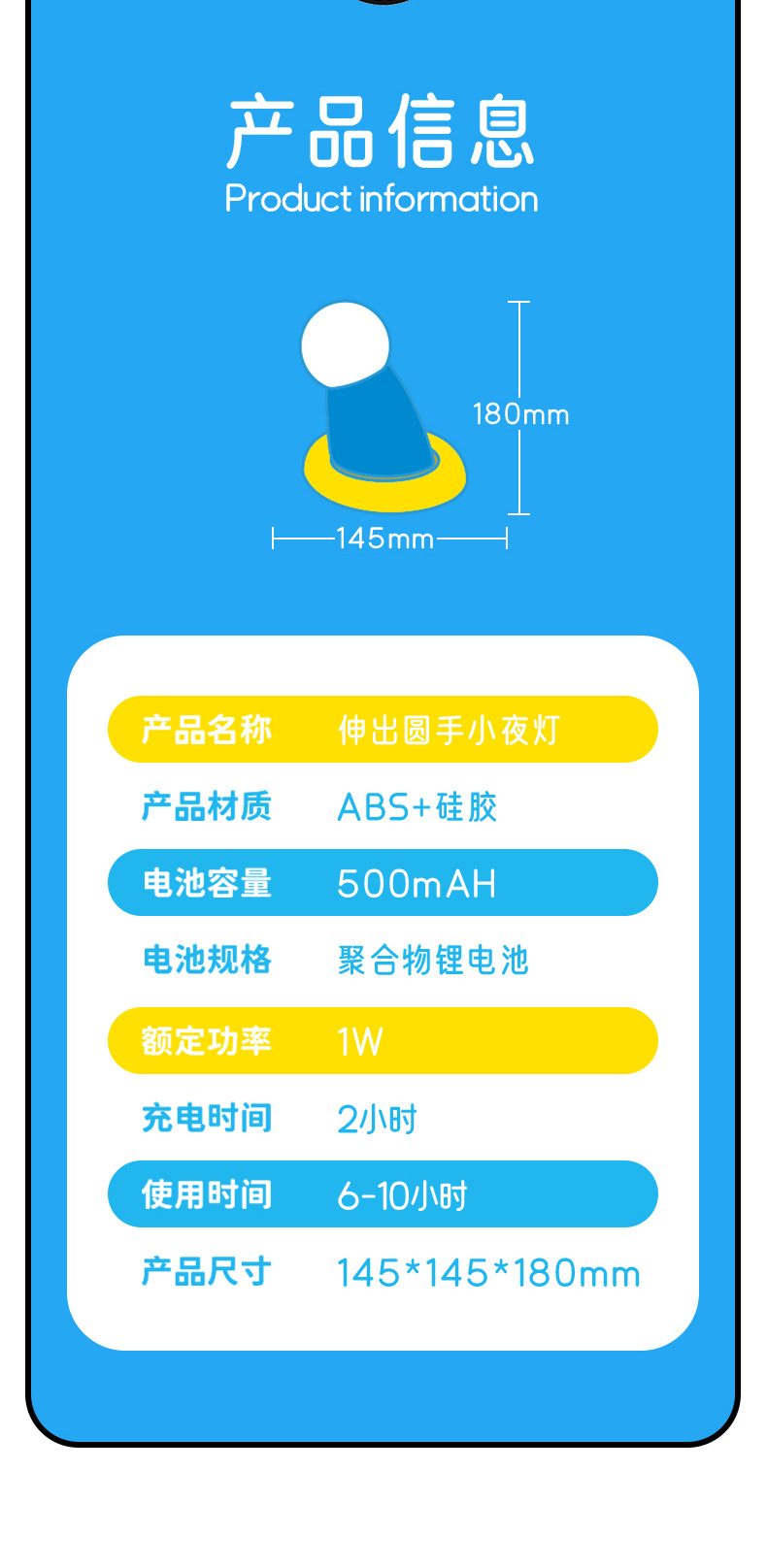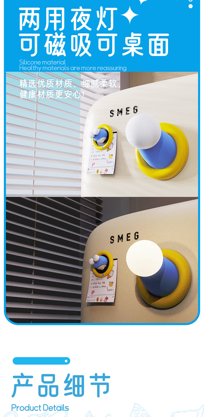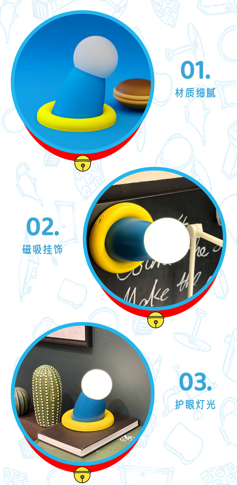 【两用夜灯 可磁吸可桌面】创意蓝胖子伸出圆手小夜灯 生日礼物可爱卧室磁吸小摆件定时伴睡灯