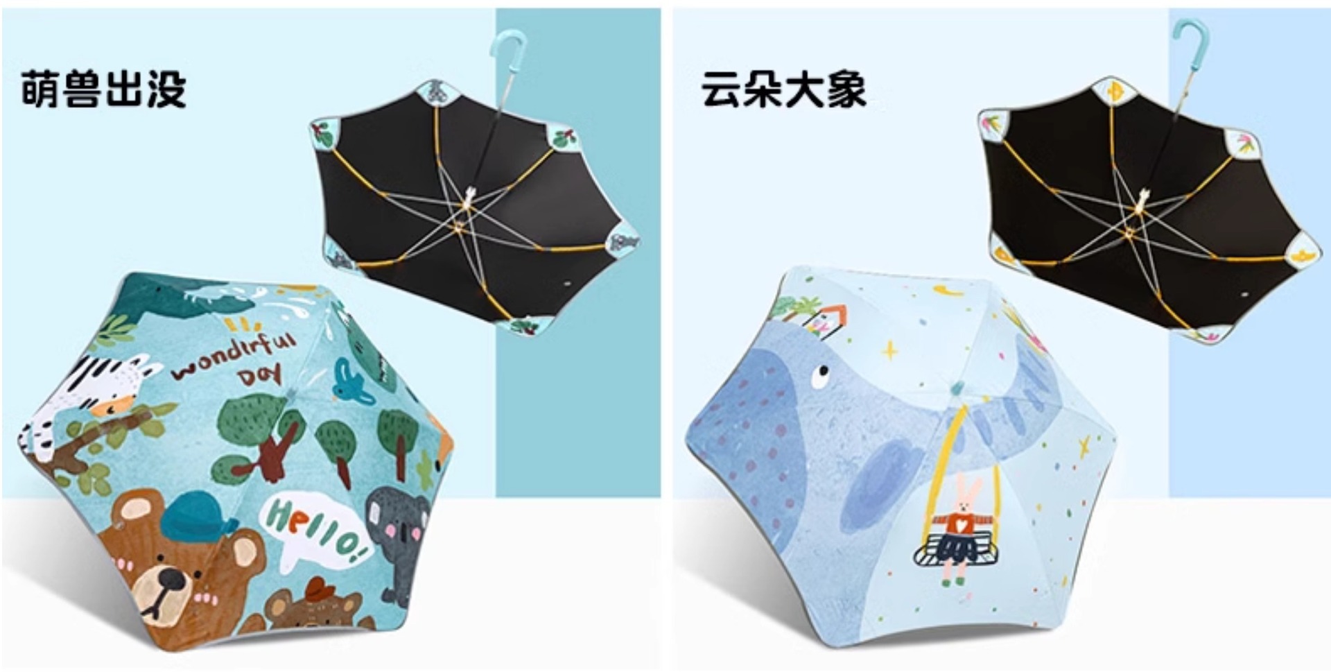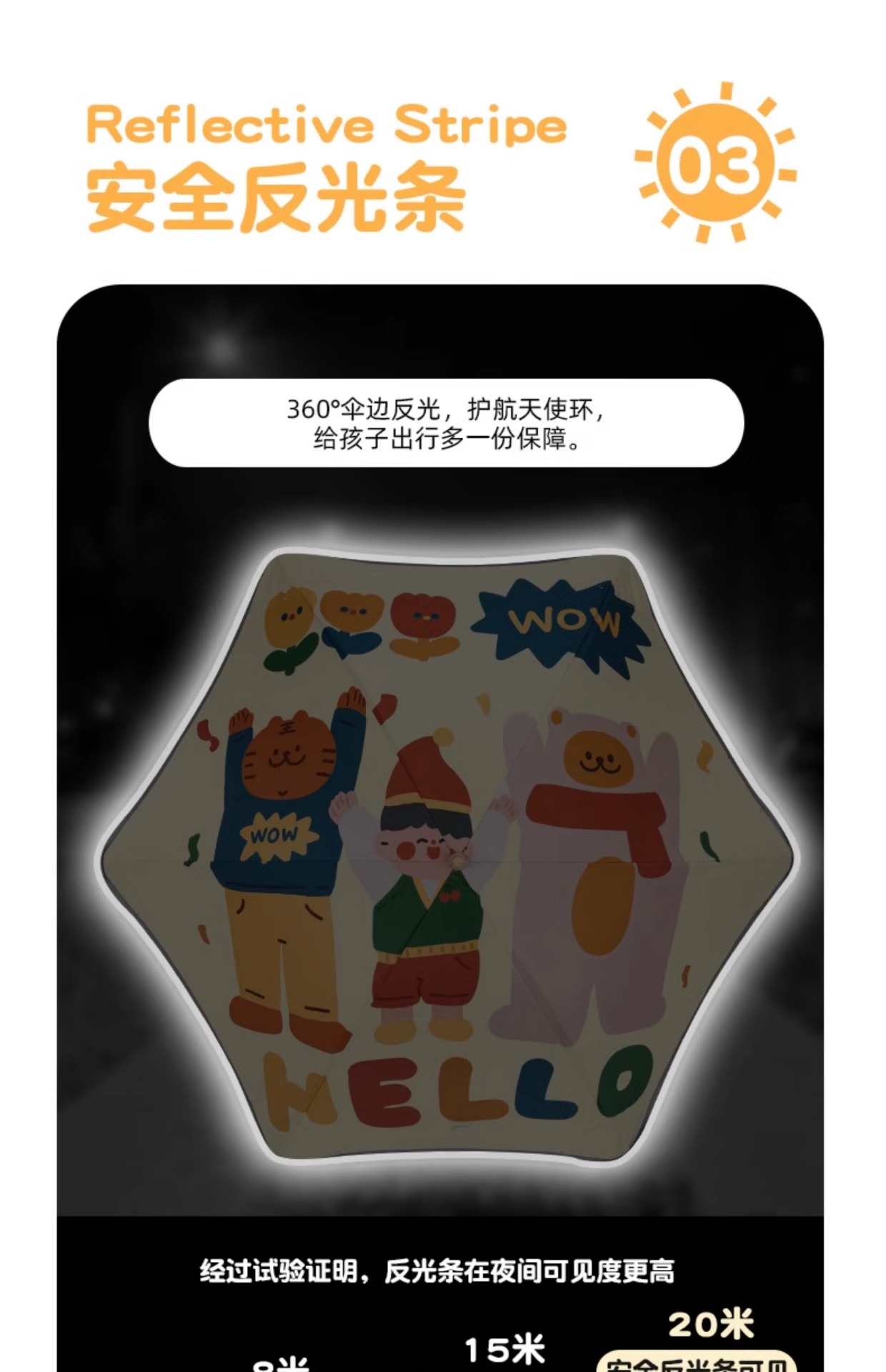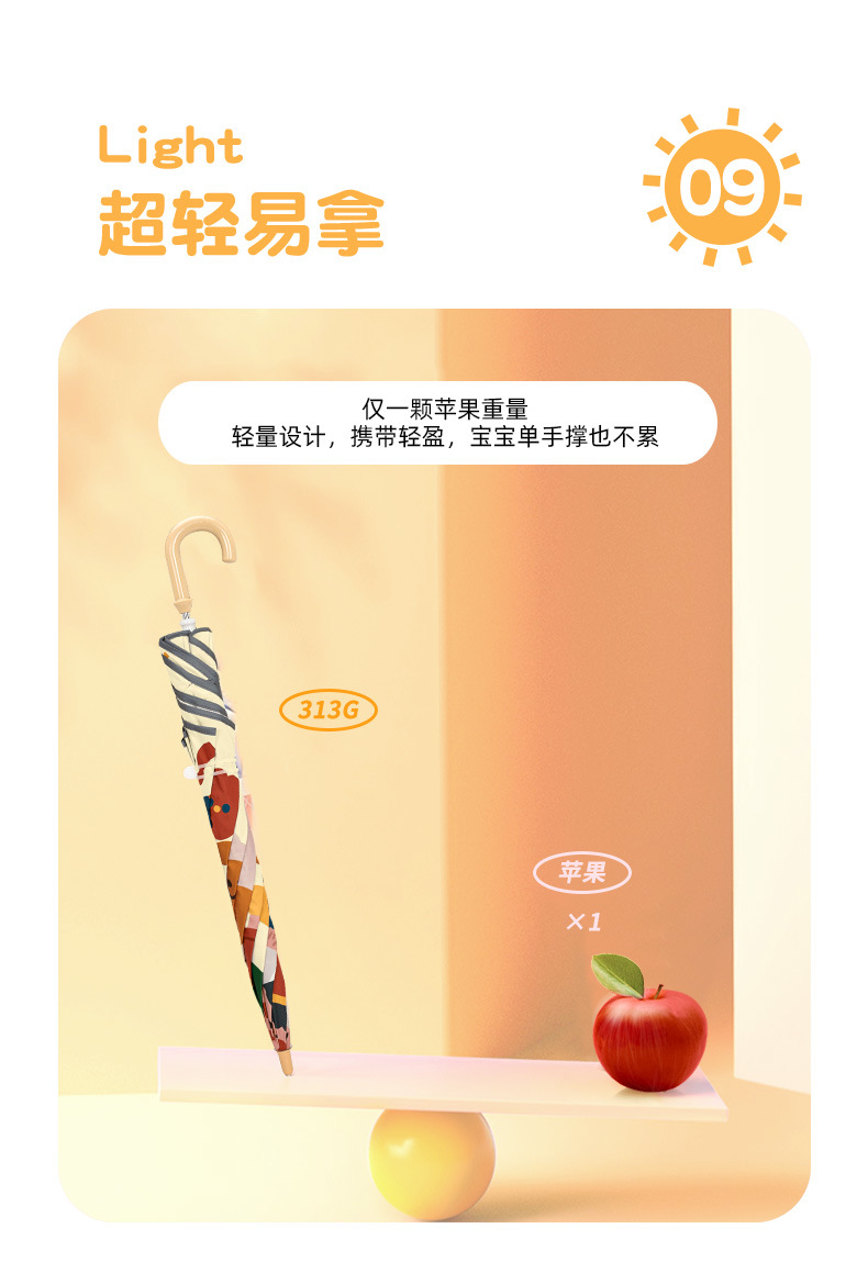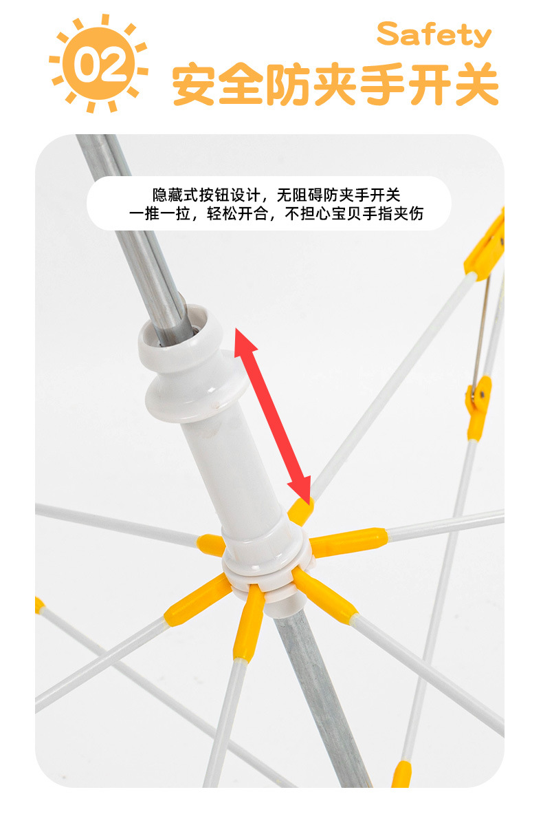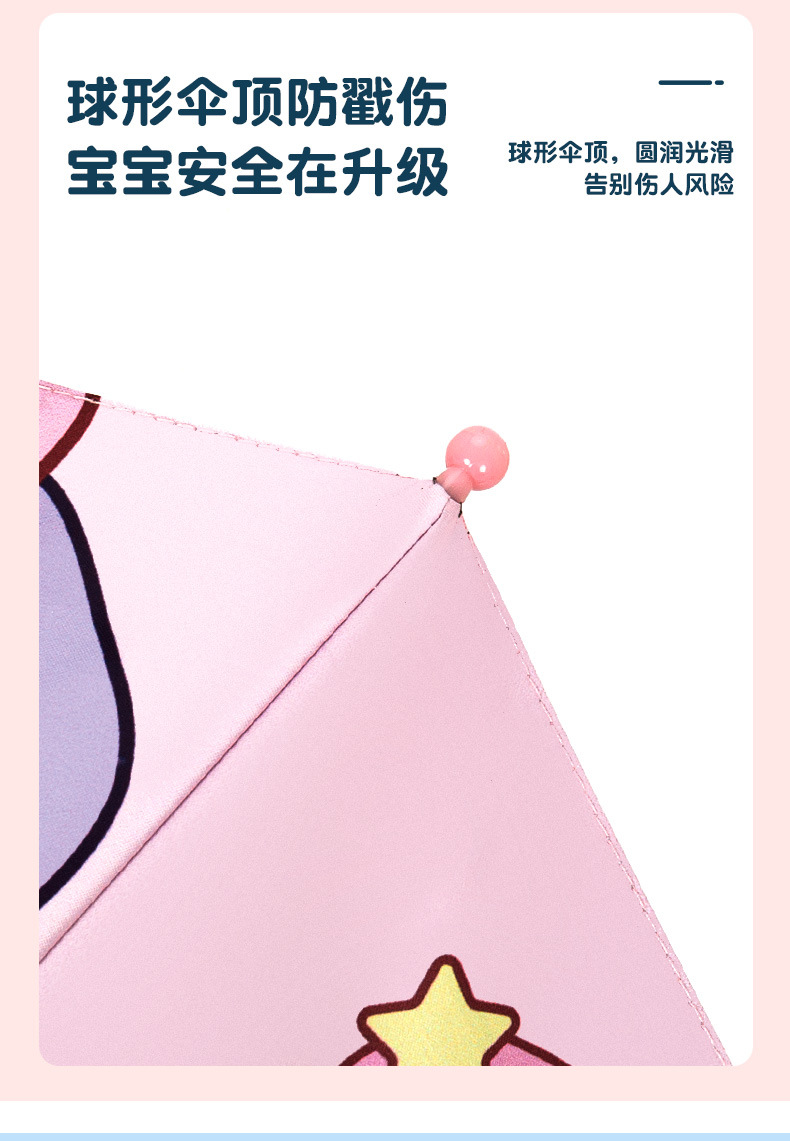 【专为儿童定制 圆角雨伞】儿童安全反光条长柄伞 晴雨两用 黑胶防晒涂层 呵护宝宝幼嫩肌肤 抗风伞骨无惧暴风雨 约313g