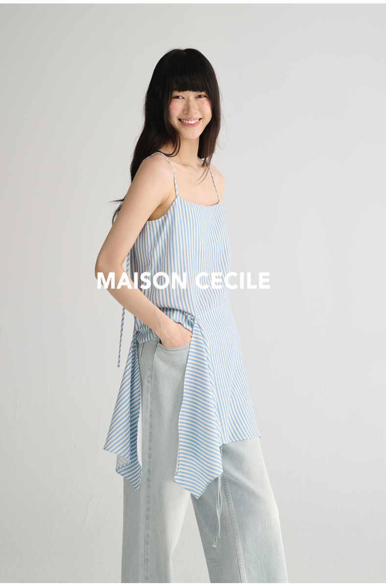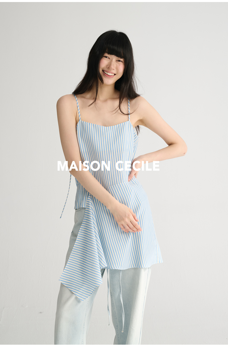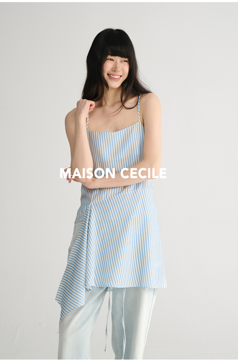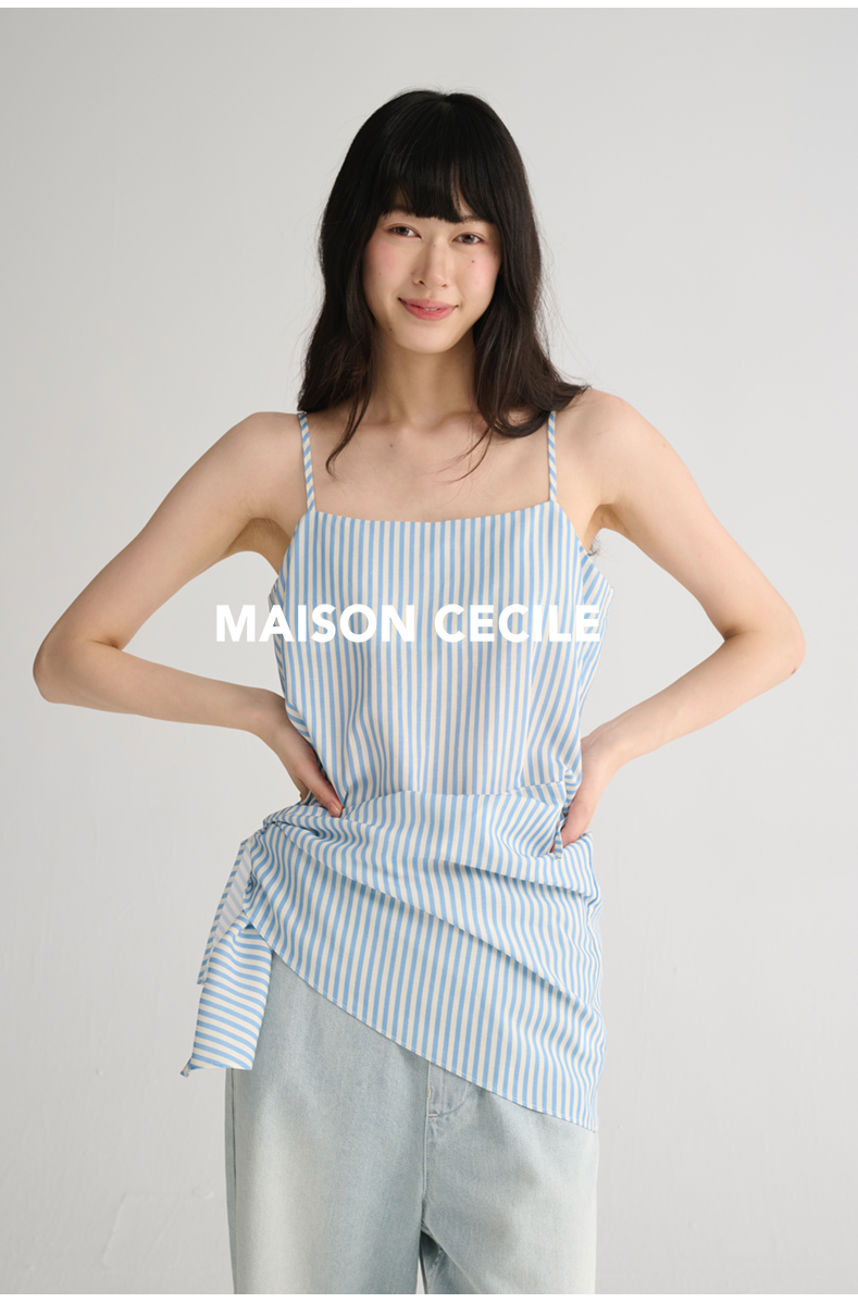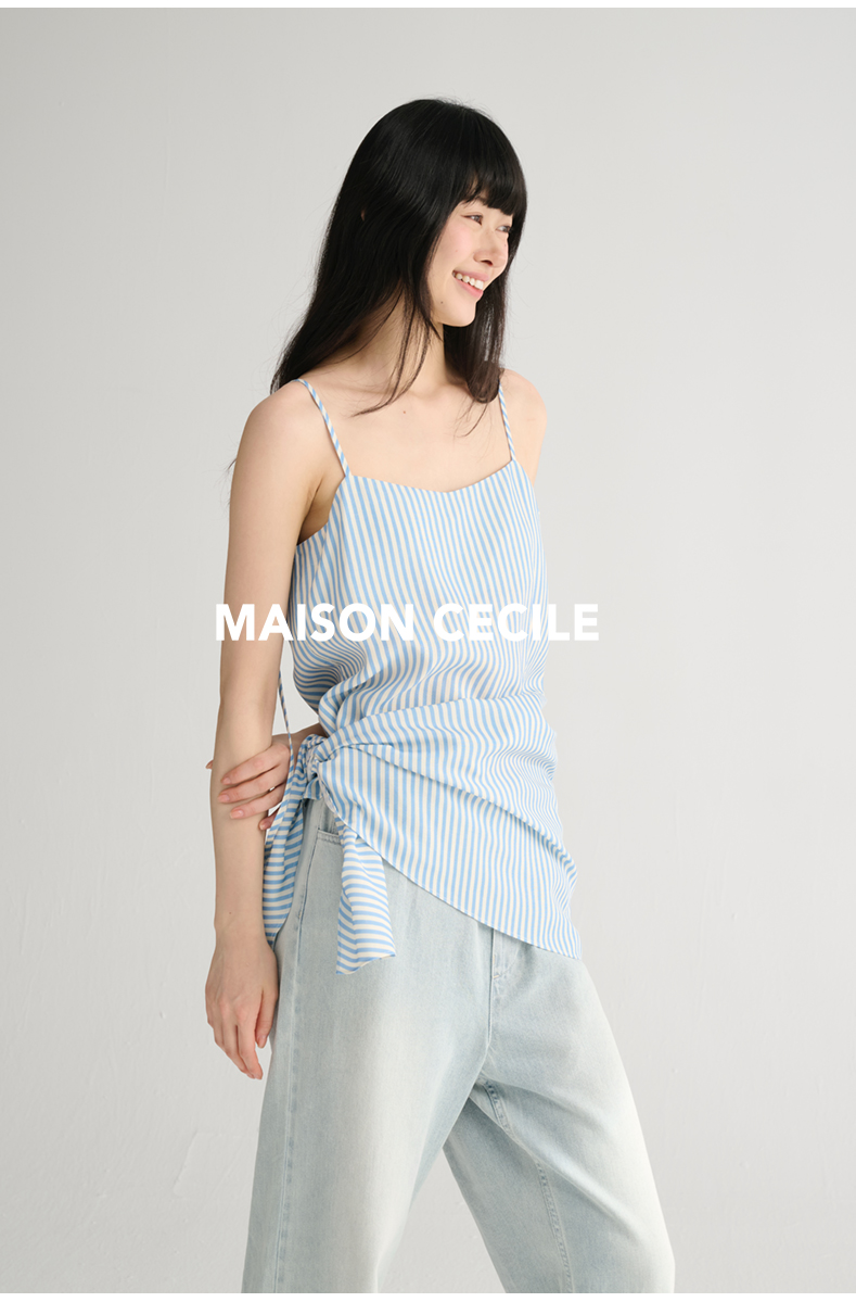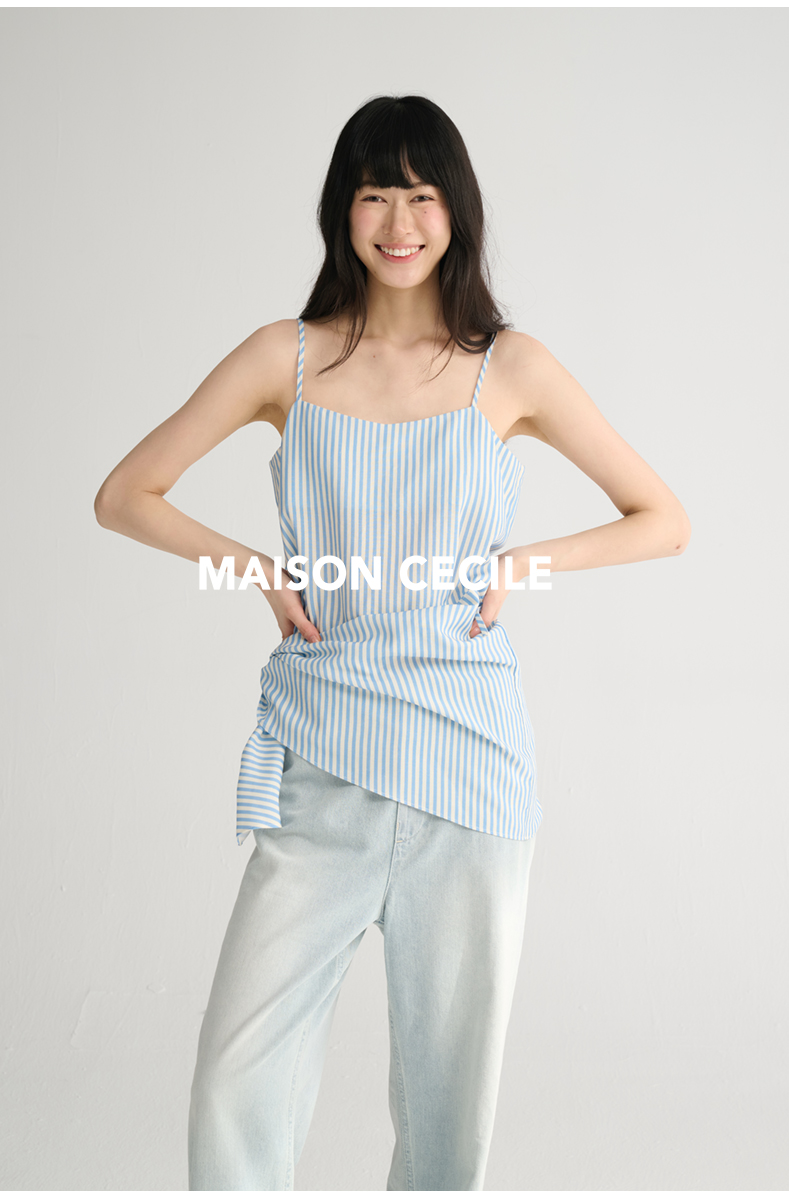 MAISON CECILE 两色/夏日清新条纹设计感扭结两穿吊带背心上衣