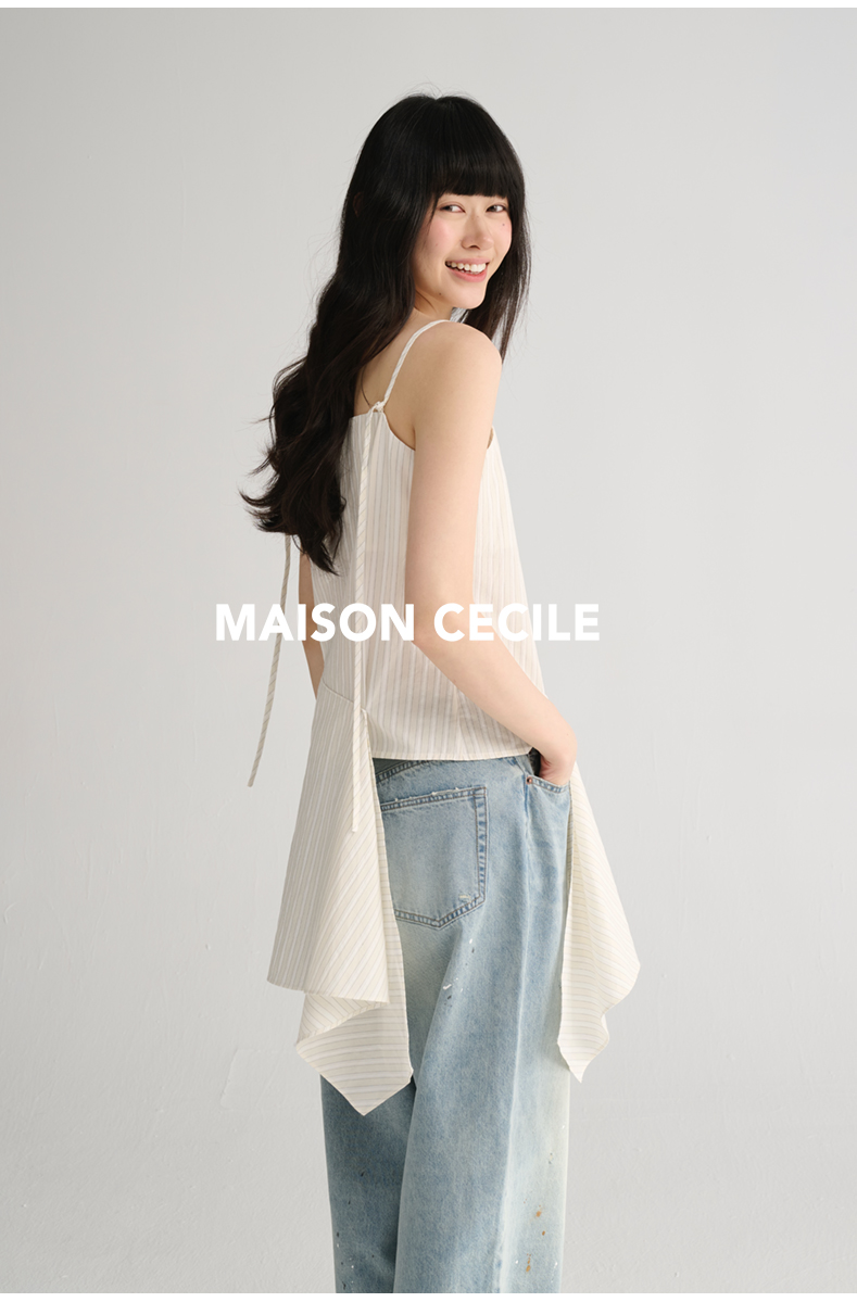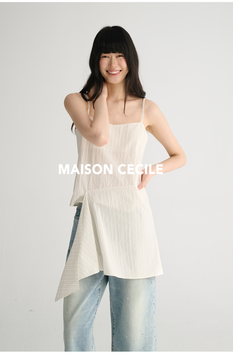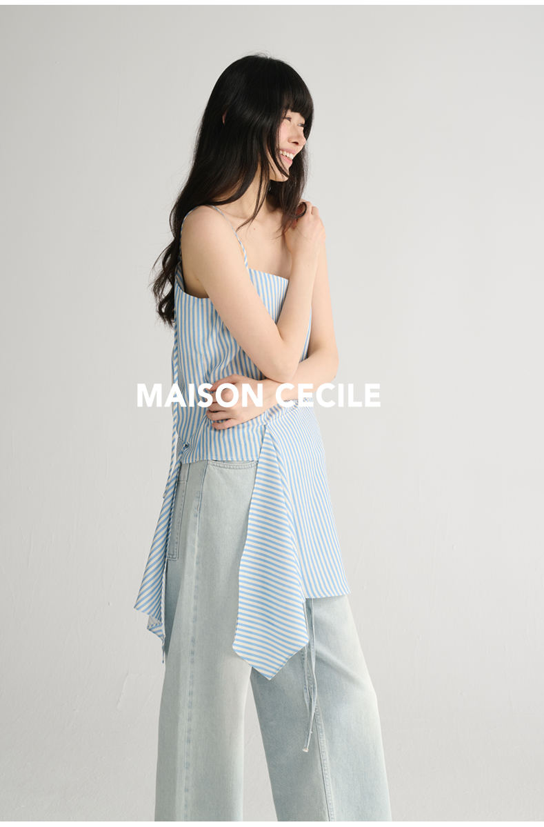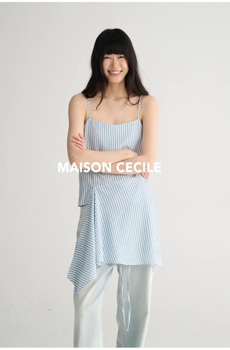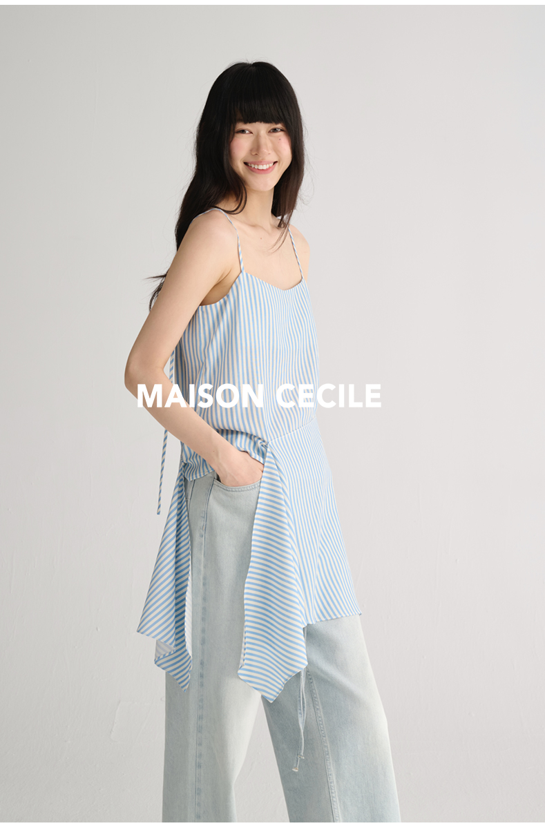 MAISON CECILE 两色/夏日清新条纹设计感扭结两穿吊带背心上衣