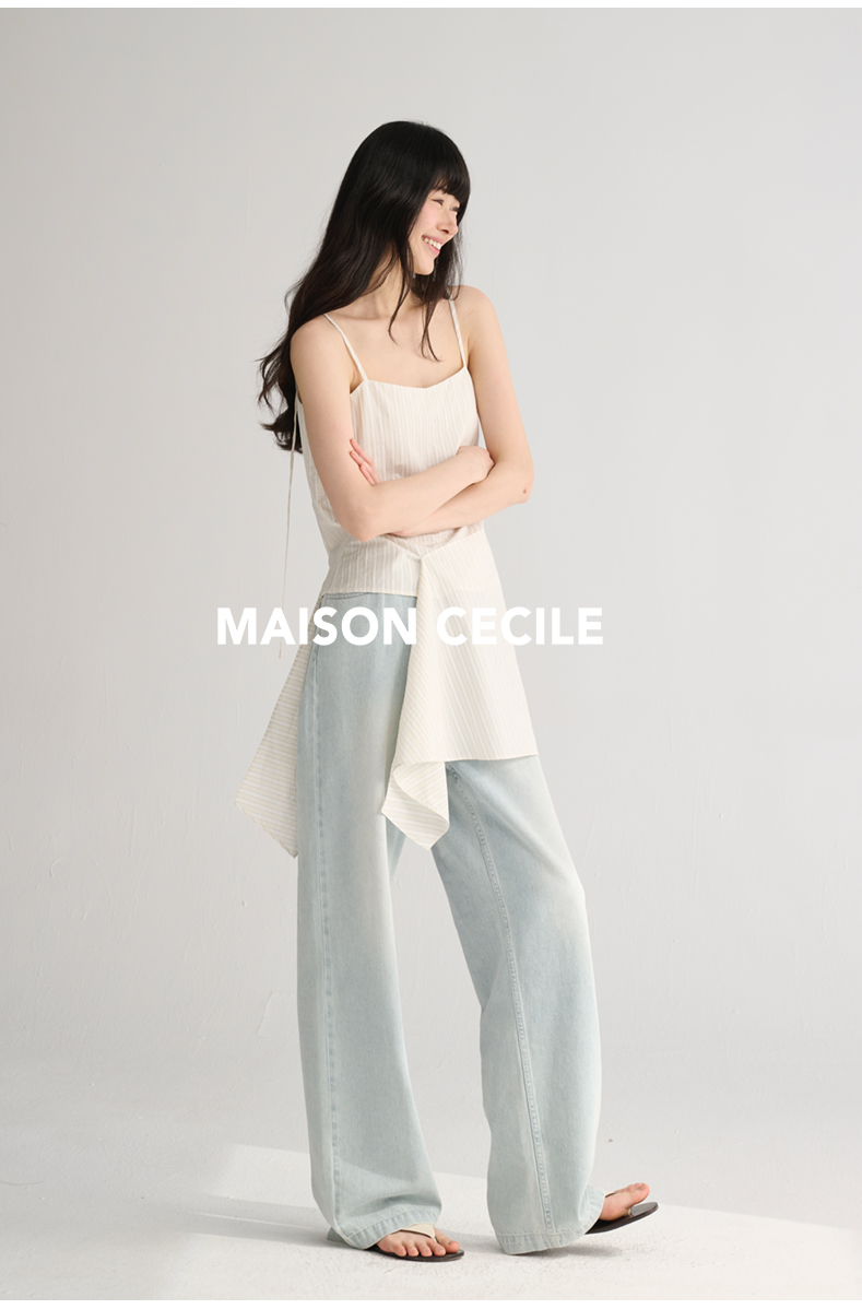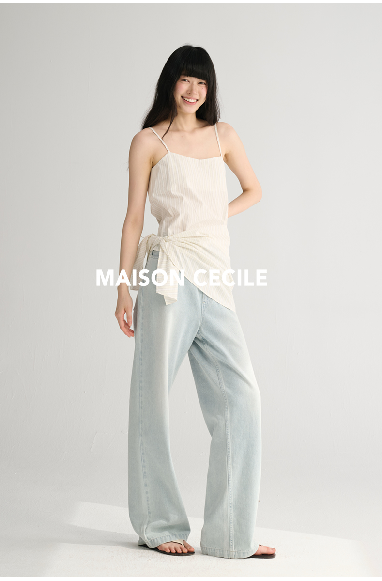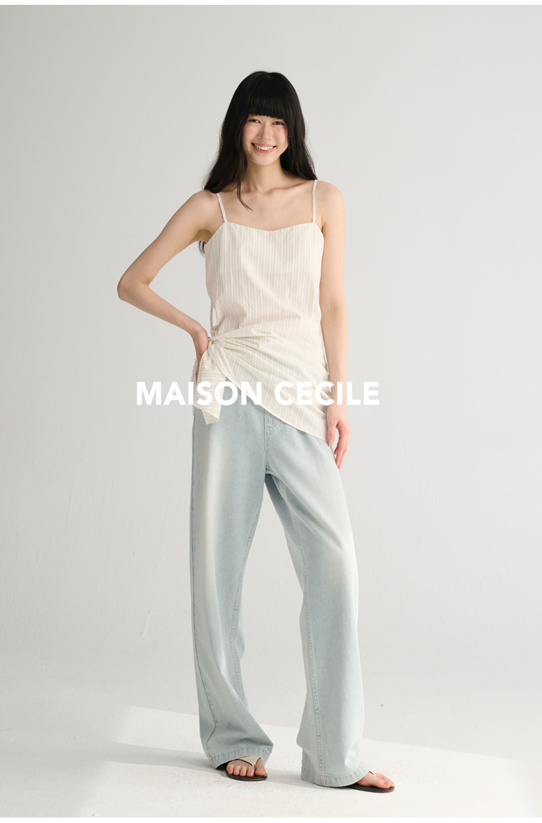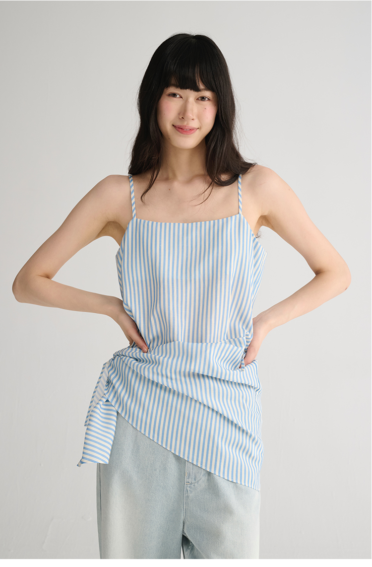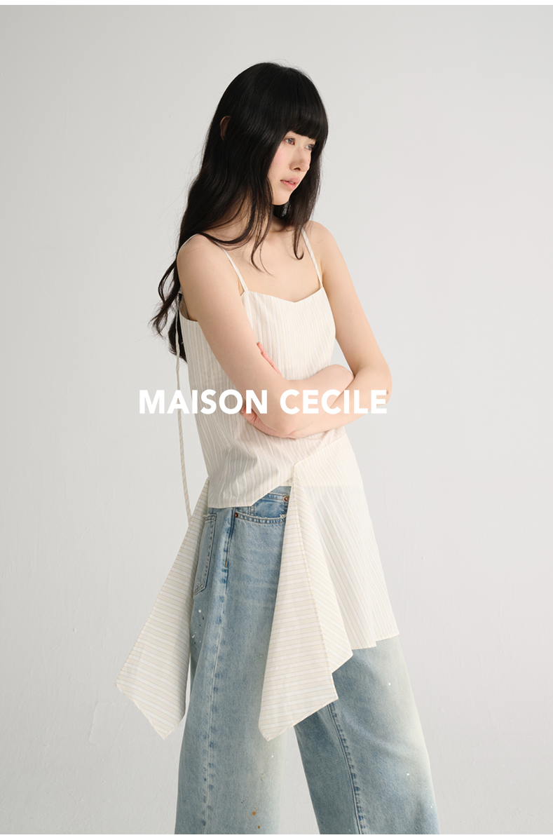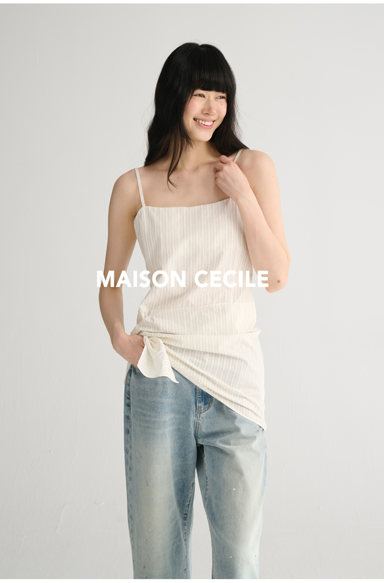 MAISON CECILE 两色/夏日清新条纹设计感扭结两穿吊带背心上衣
