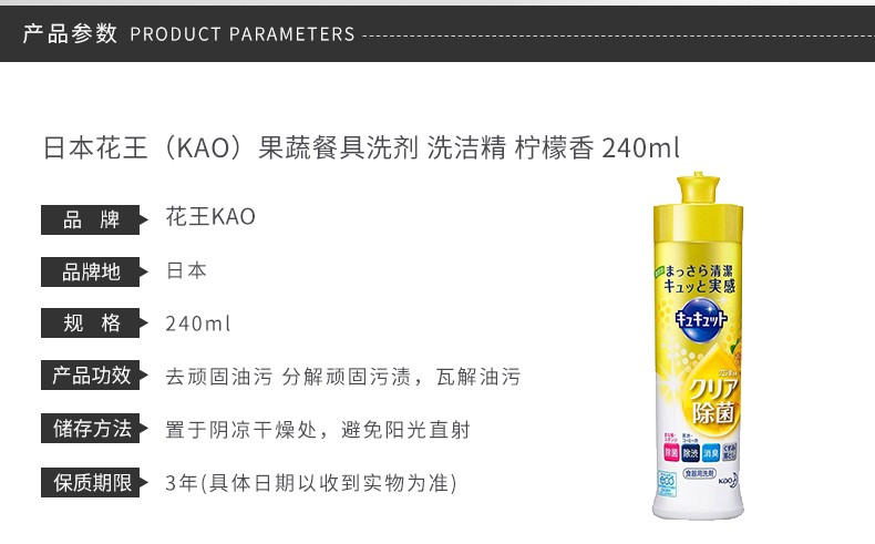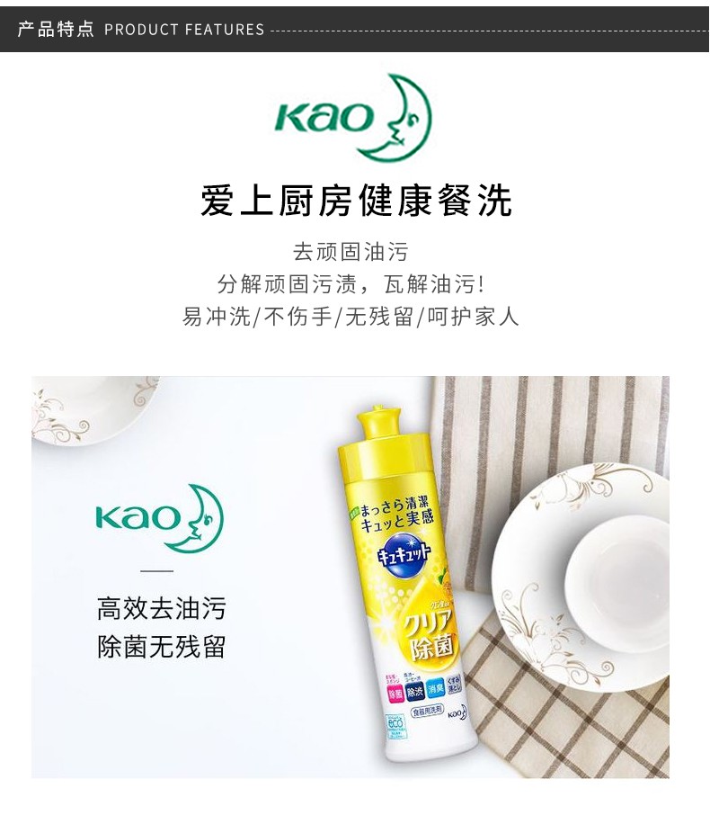 KAO/花王 果蔬餐具洗洁精 柠檬香 240MLJPY带授权招加盟代理