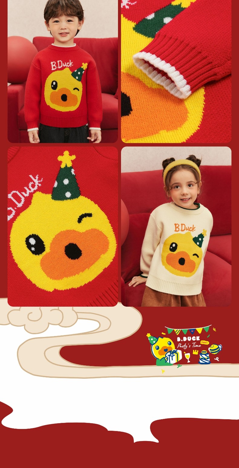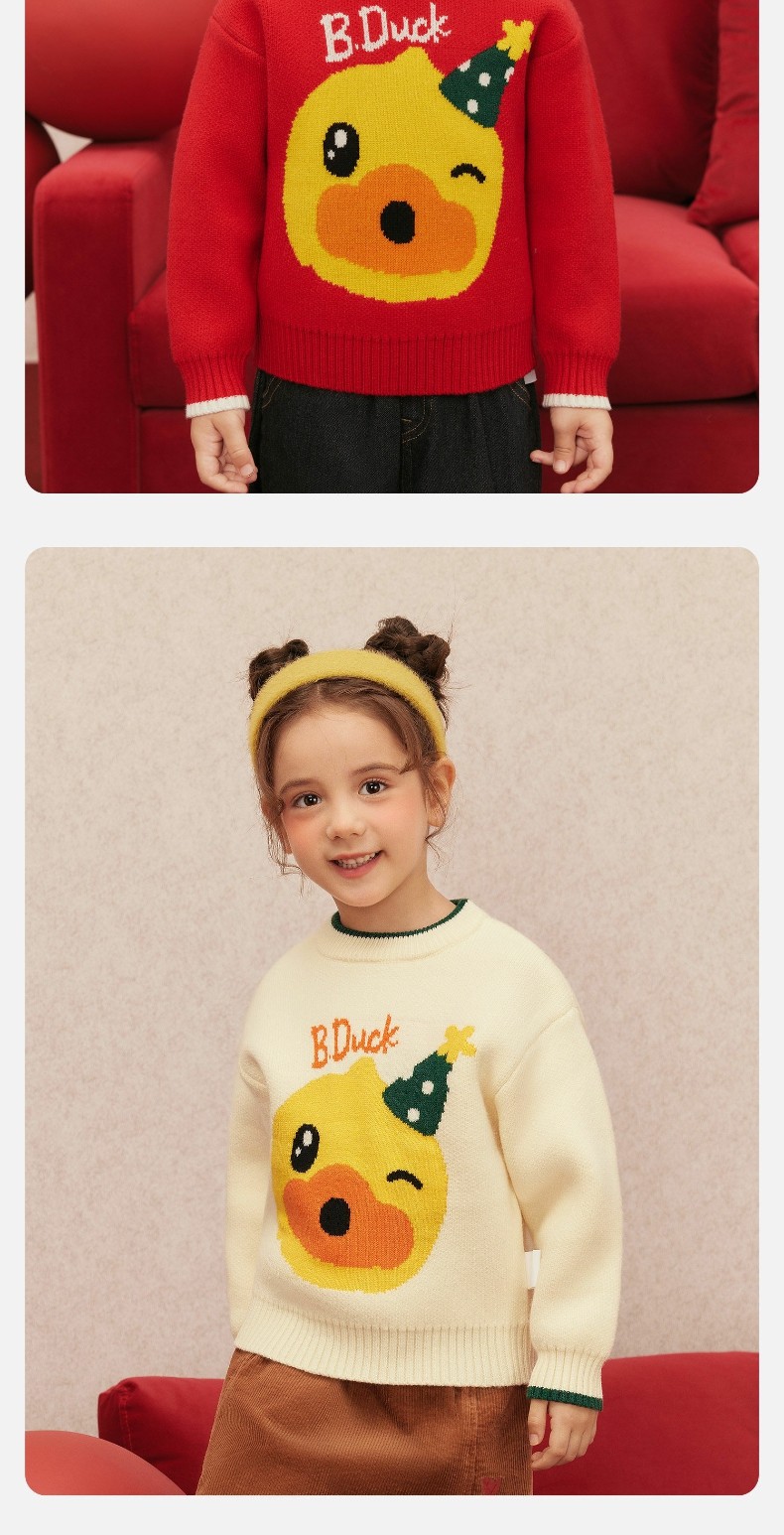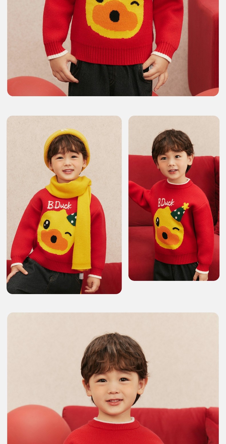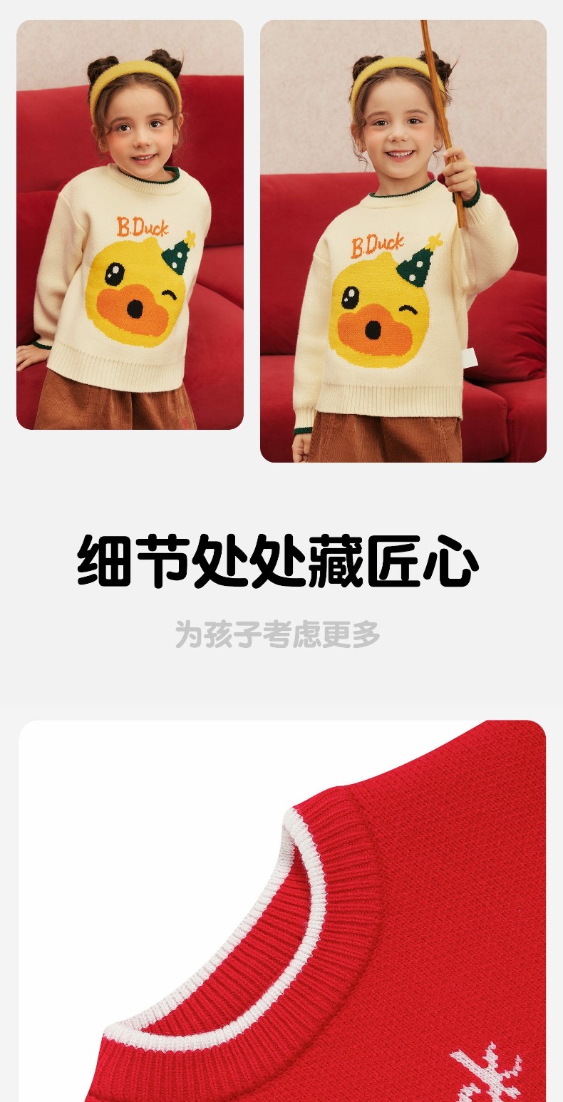 bduck小黄鸭童装男女童红色毛衣过年针织衫新年冬装儿童宝宝拜年服90-140 BF5512065