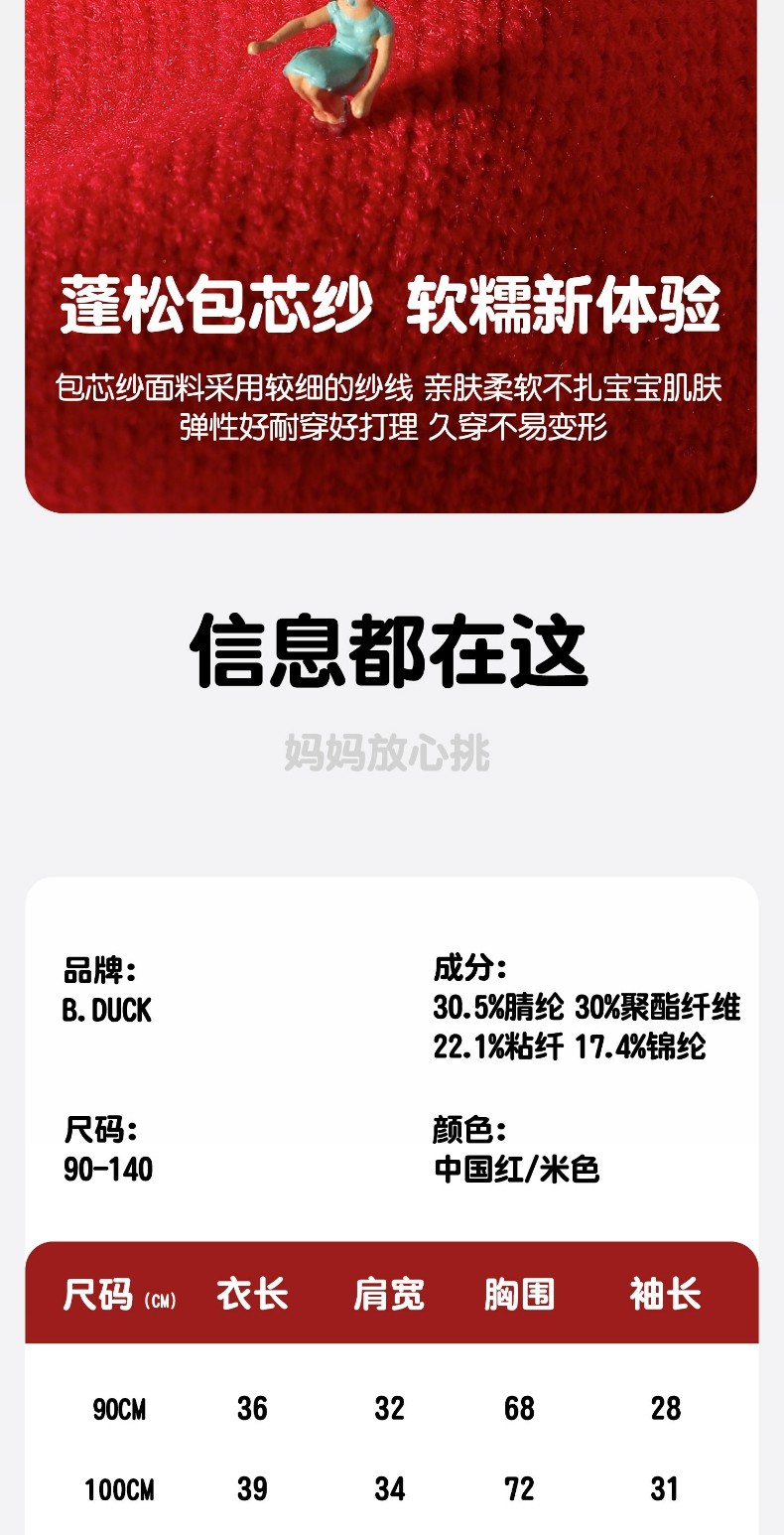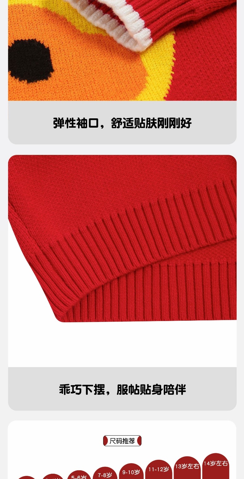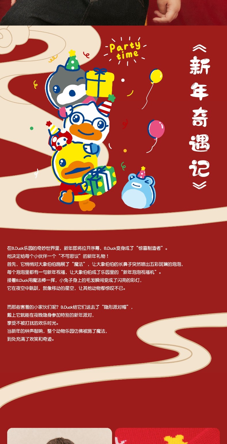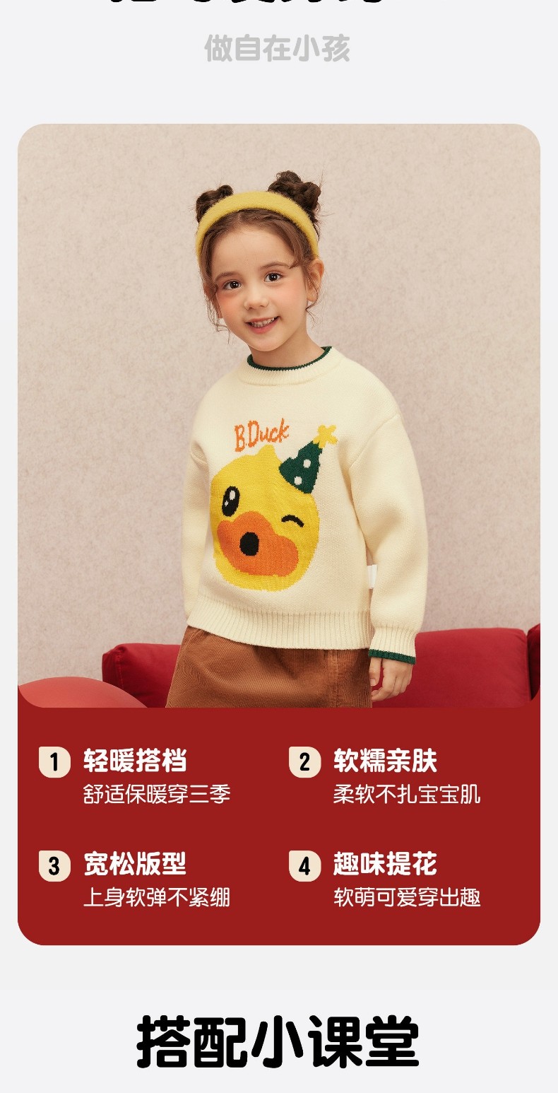 bduck小黄鸭童装男女童红色毛衣过年针织衫新年冬装儿童宝宝拜年服90-140 BF5512065