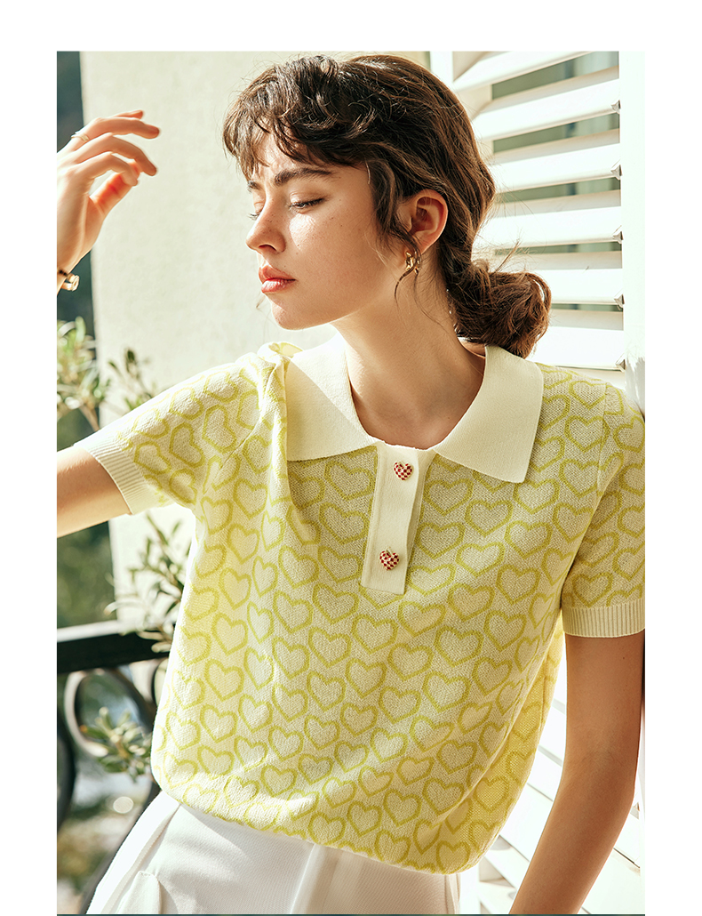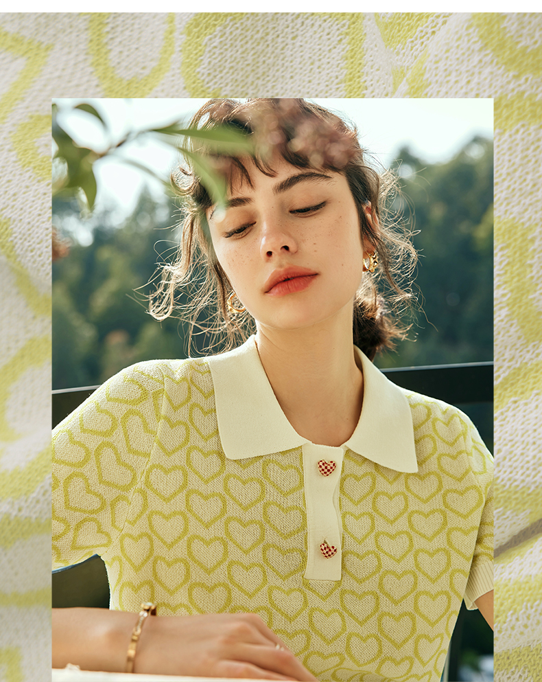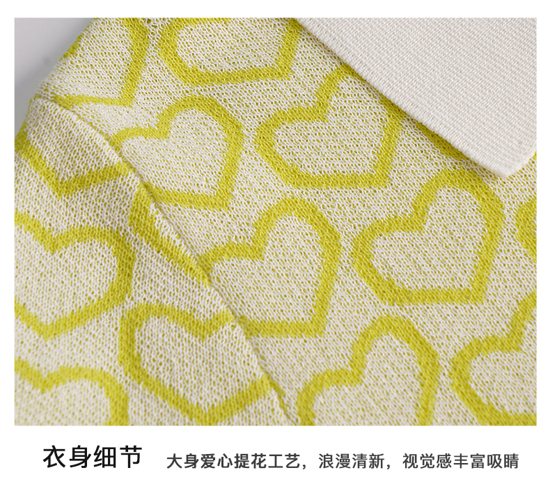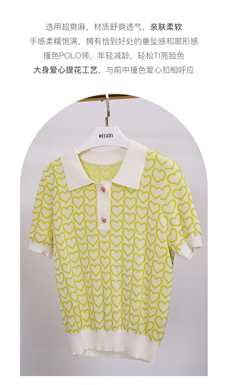 OLrain欧芮儿法式polo领针织衫女夏季2023新款宽松爱心提花套头衫