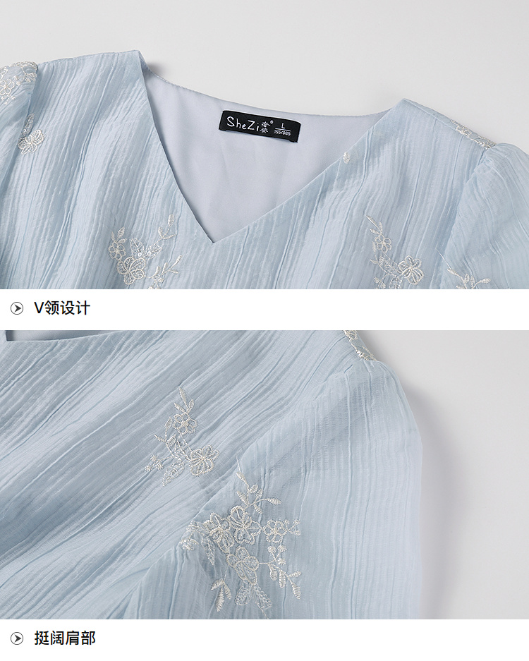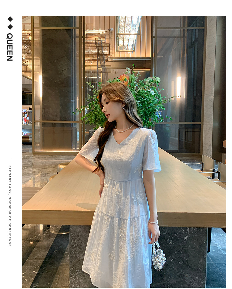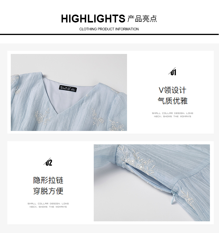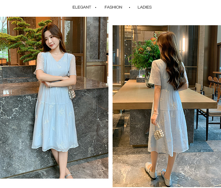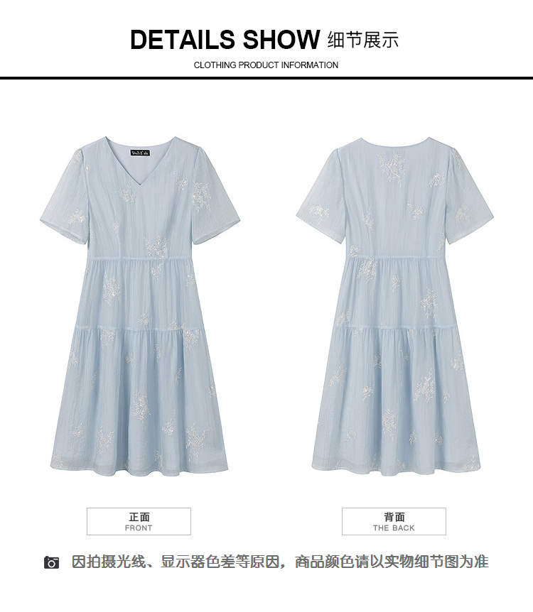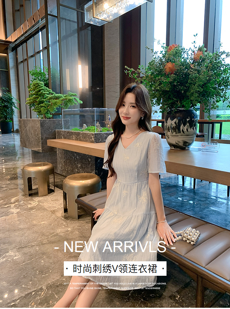 奢姿大码女装2025夏季V领刺绣简约气质连衣裙胖妹妹时尚轻奢裙子9952822258