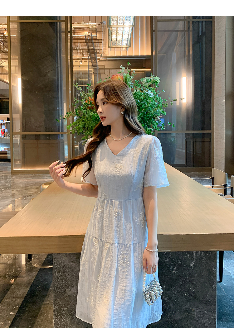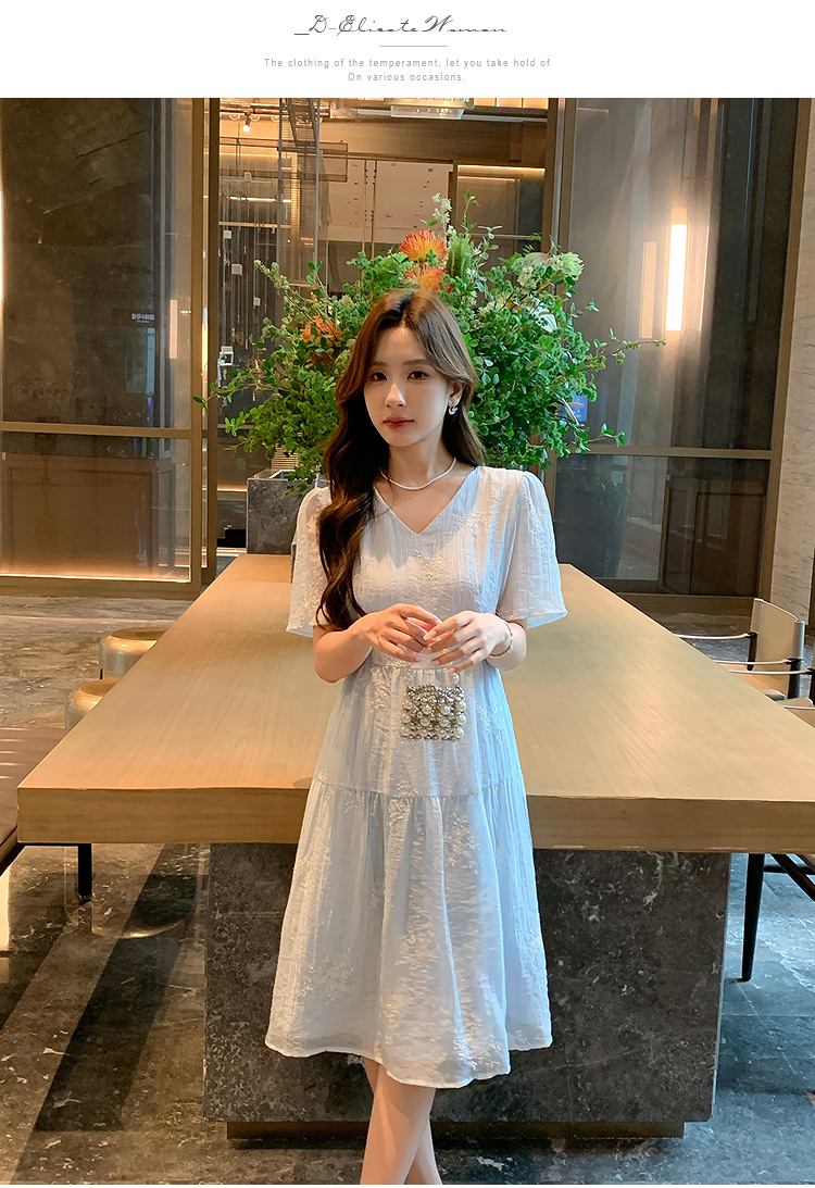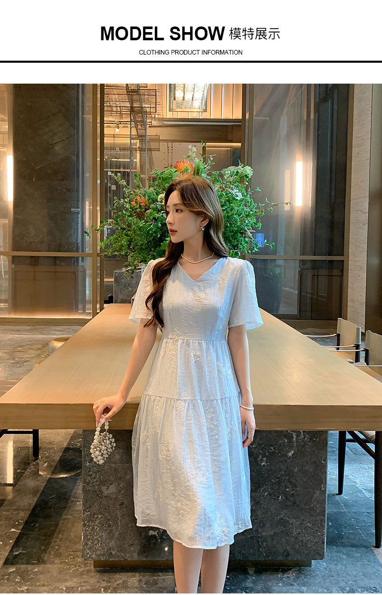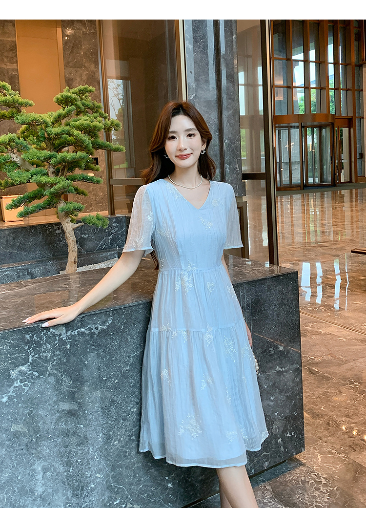奢姿大码女装2025夏季V领刺绣简约气质连衣裙胖妹妹时尚轻奢裙子9952822258