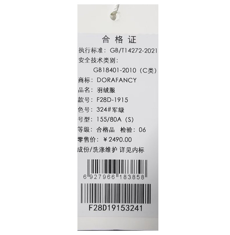 朵拉梵西羽绒服F28D1915