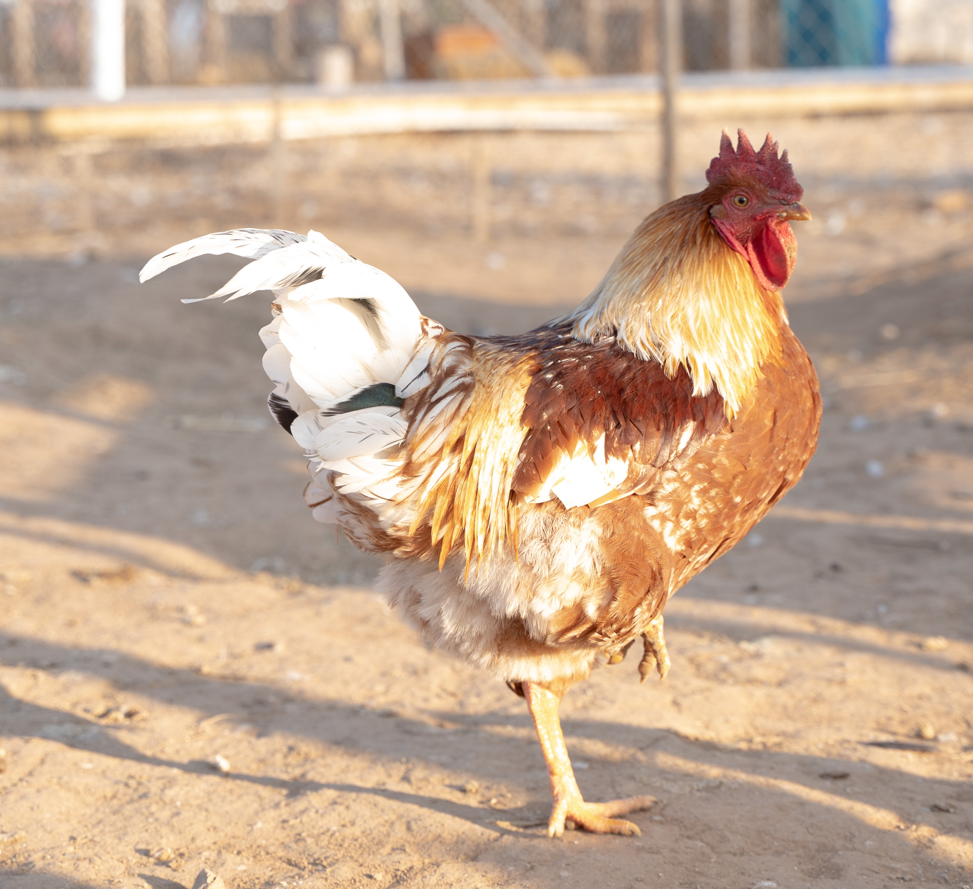 鸡散养在农场的林间。它们鸡生幸福,晒着太阳,可以随意跑山、恋爱、吃自家的蔬菜和五谷杂粮。这样的鸡和那种工业化养鸡场里被灯泡照着、终身不能挪动、没有社交的鸡,完全不是一个物种。