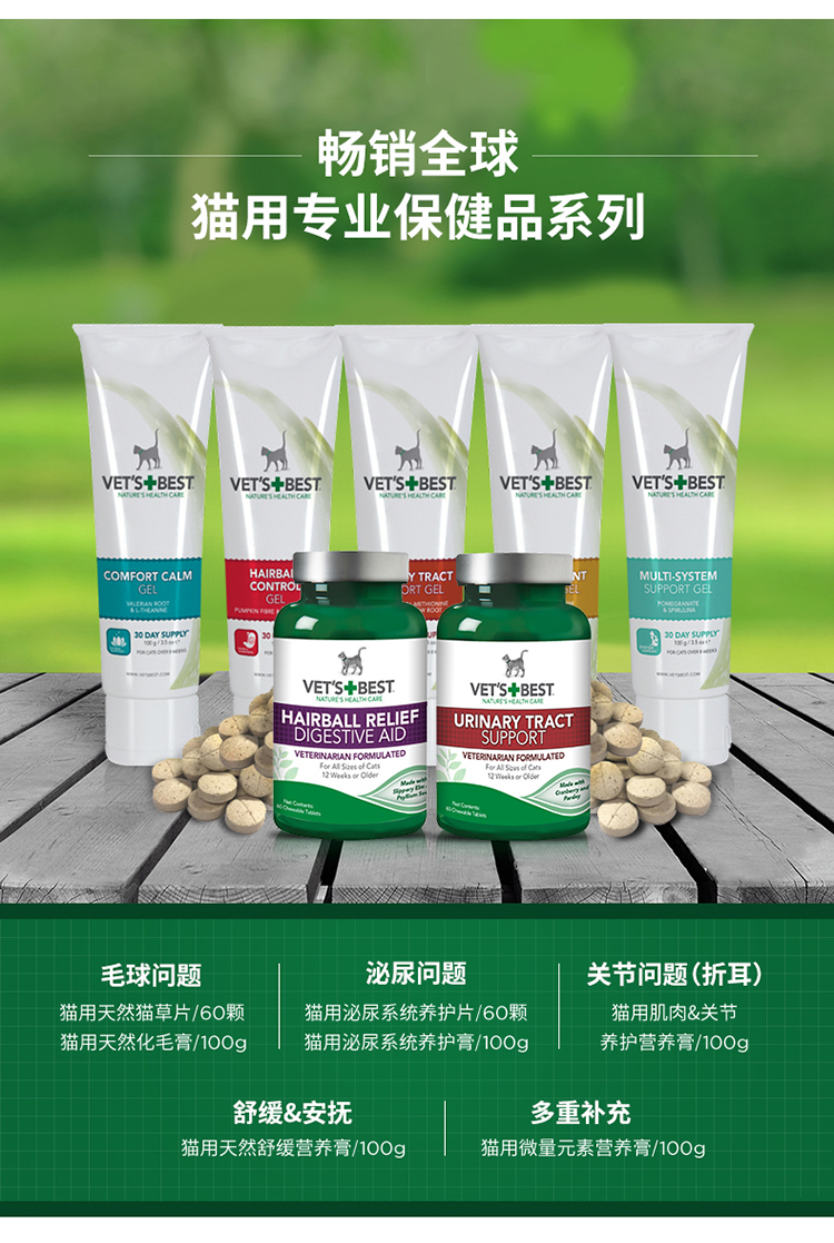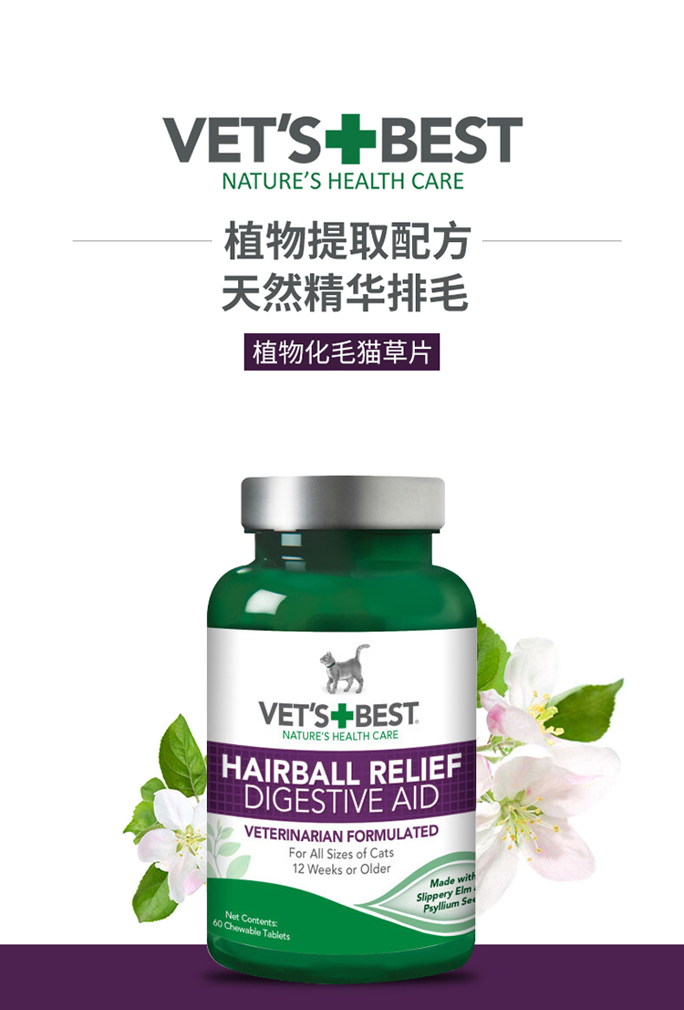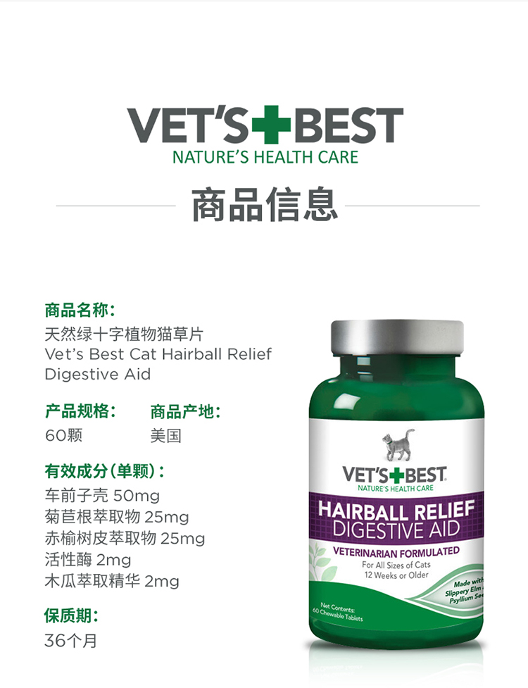 维倍思绿十字猫草片猫咪去毛球化毛膏吐毛猫咪用调理肠胃60粒