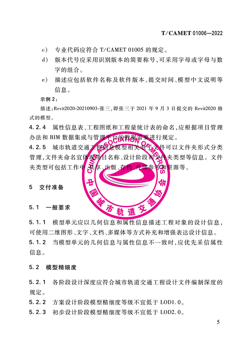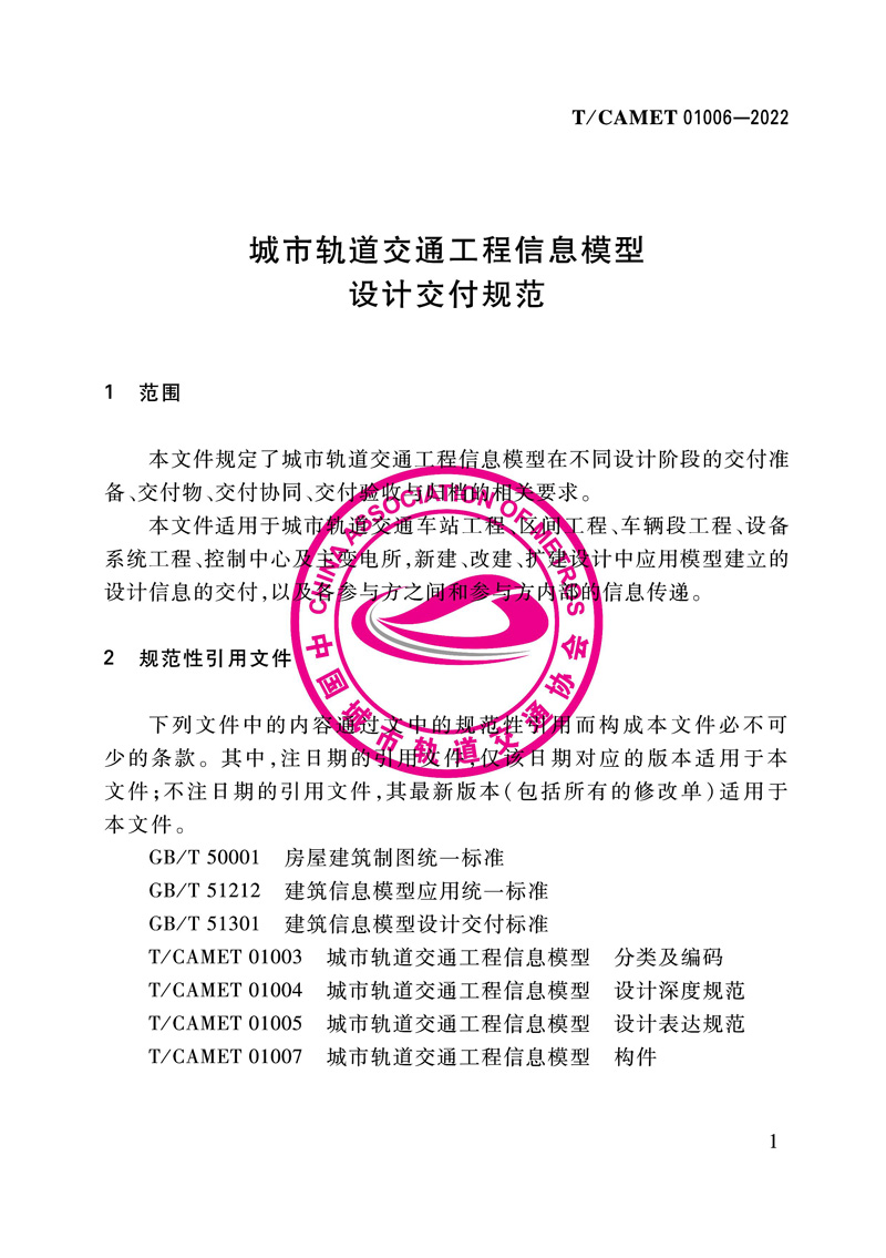 6558 城市轨道交通工程信息模型 设计交付规范(T/CAMET 01006-2022)