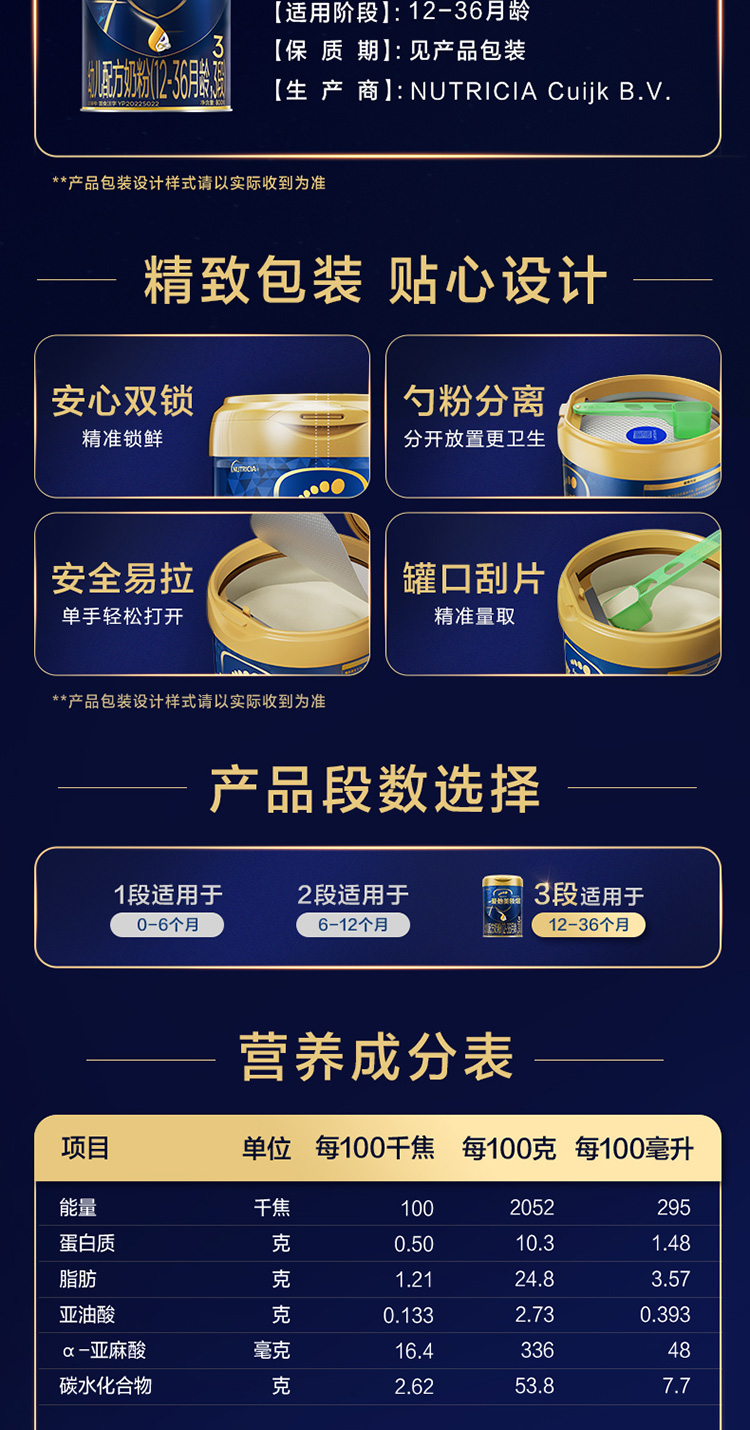 爱他美领熠3段幼儿配方奶粉800g*1罐/ATM-613854