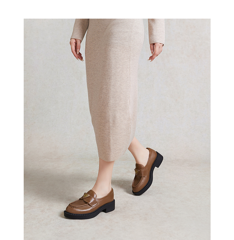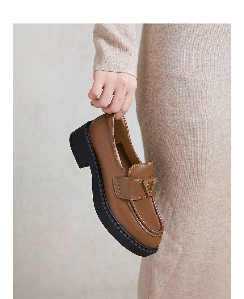 natursun方跟乐福鞋气质通勤显瘦小方头不累脚高跟鞋N25446018