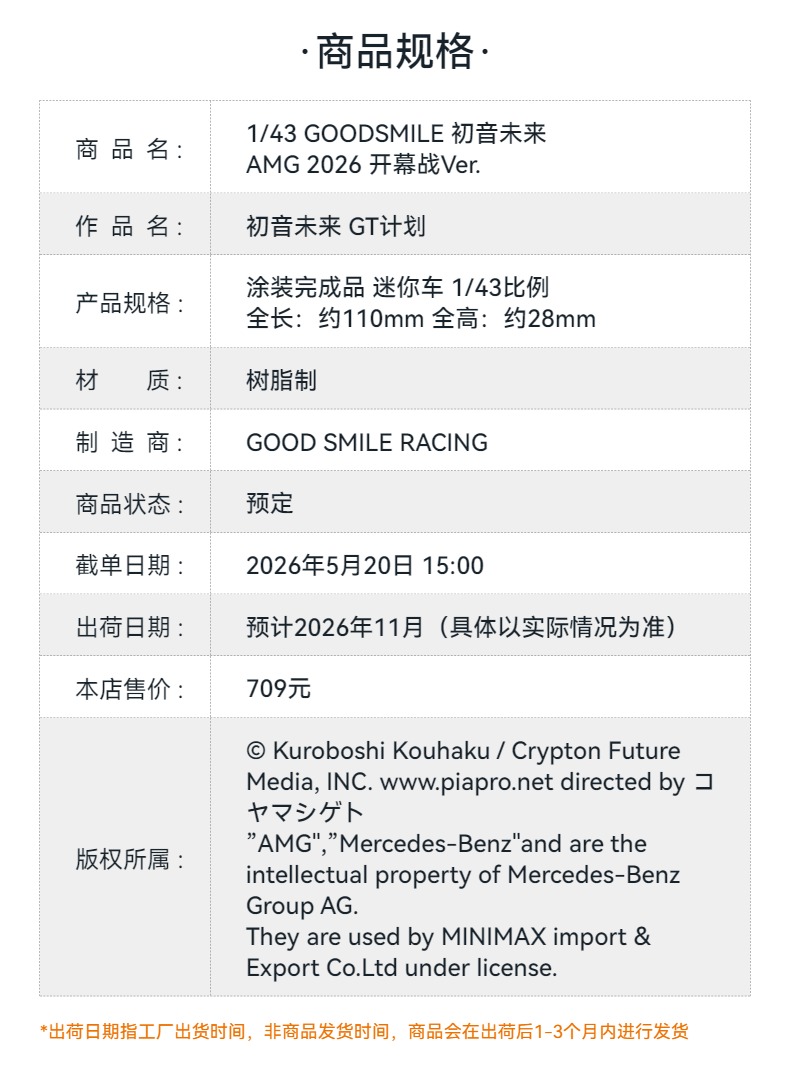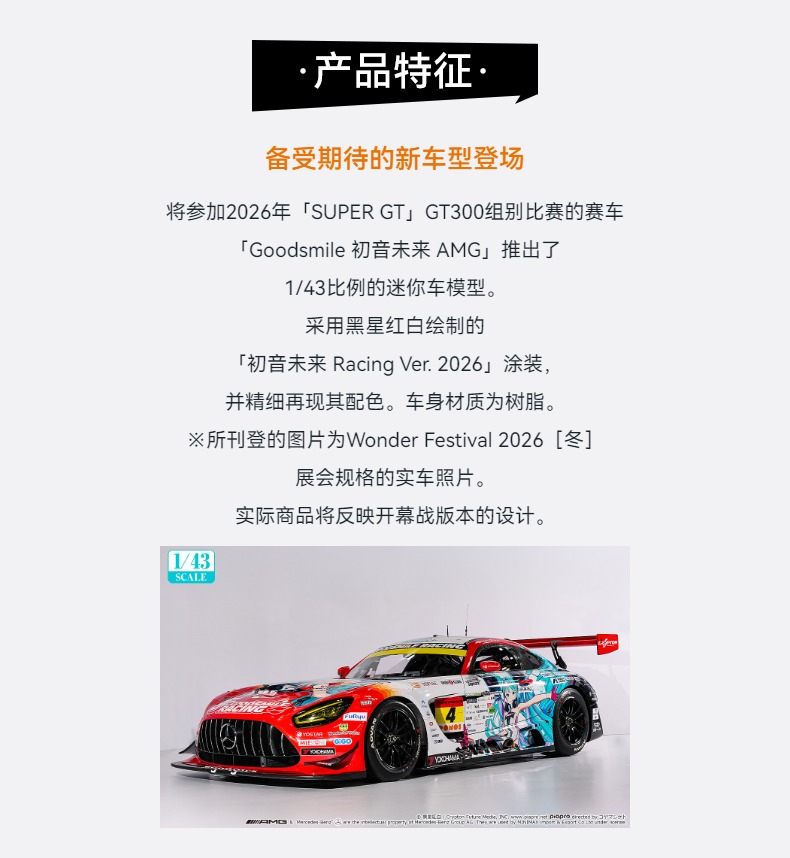 【GSC预售定金】1/43 GOODSMILE 初音未来 AMG 2026 开幕战Ver. 初音未来 GT计划