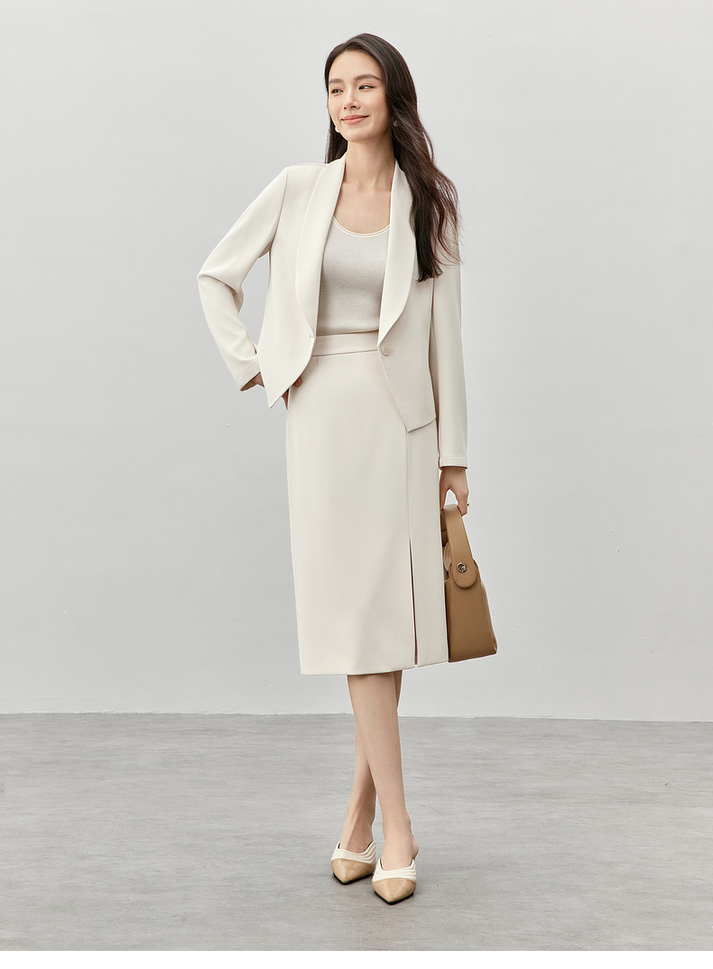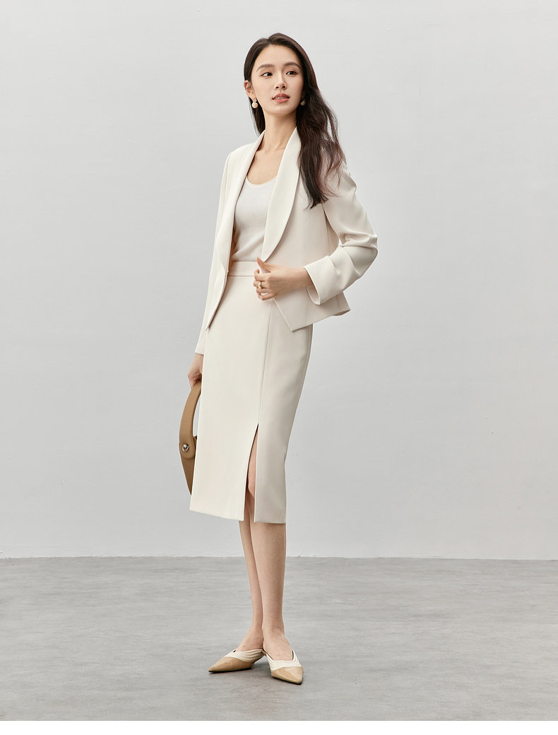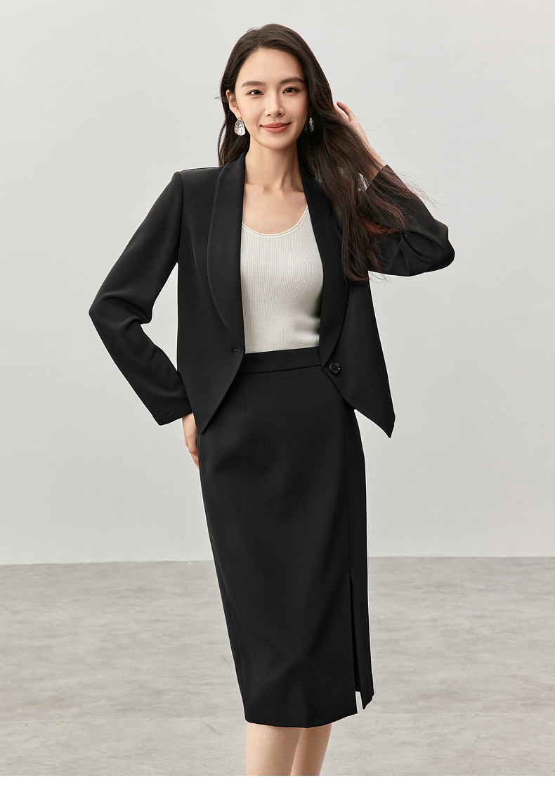 【内购】小个子系列职场通勤/气质青果领西装套装开衩半裙高级感套装-56886