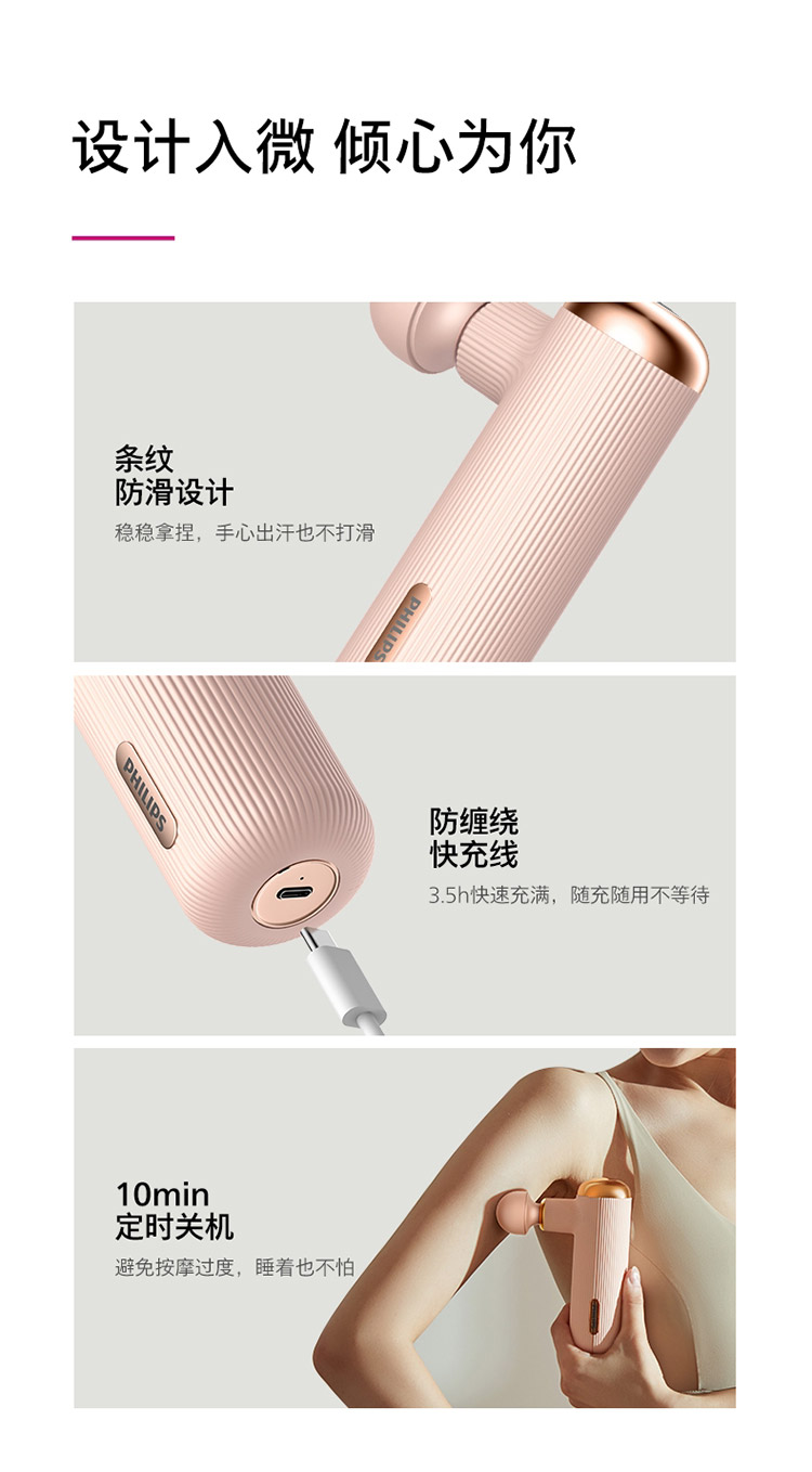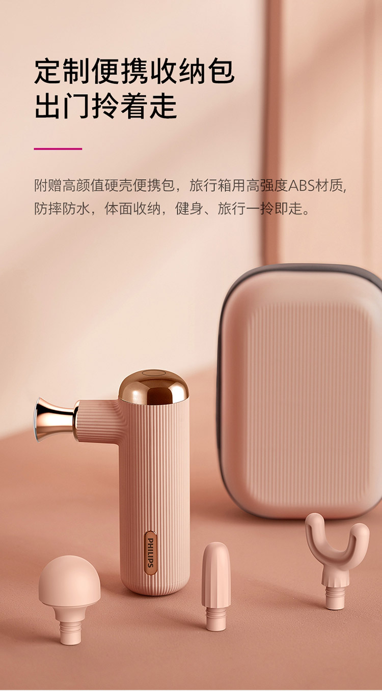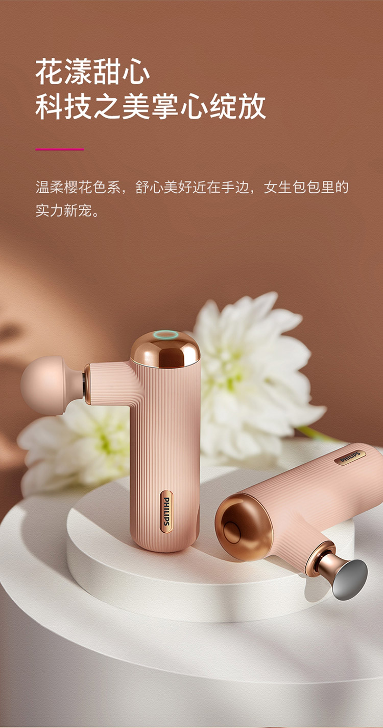 飞利浦PHILIPS筋膜枪肌肉放松按摩仪器迷你mini便携口袋健身电动女生粉色按摩枪