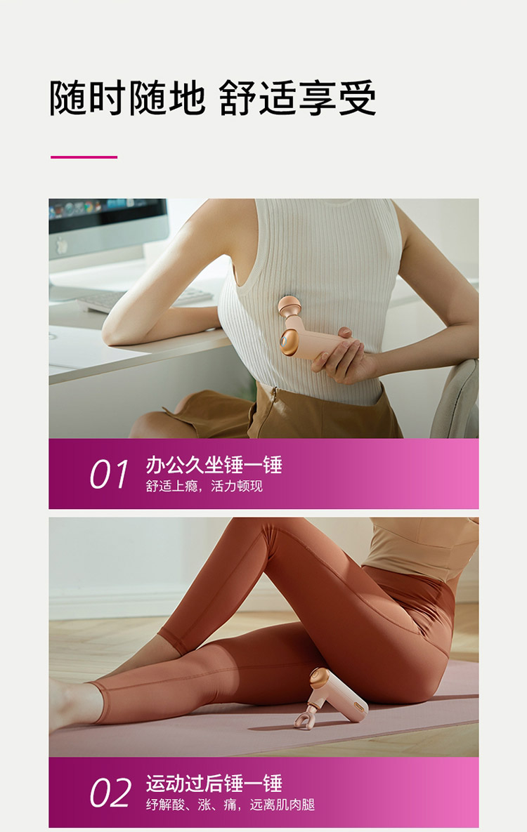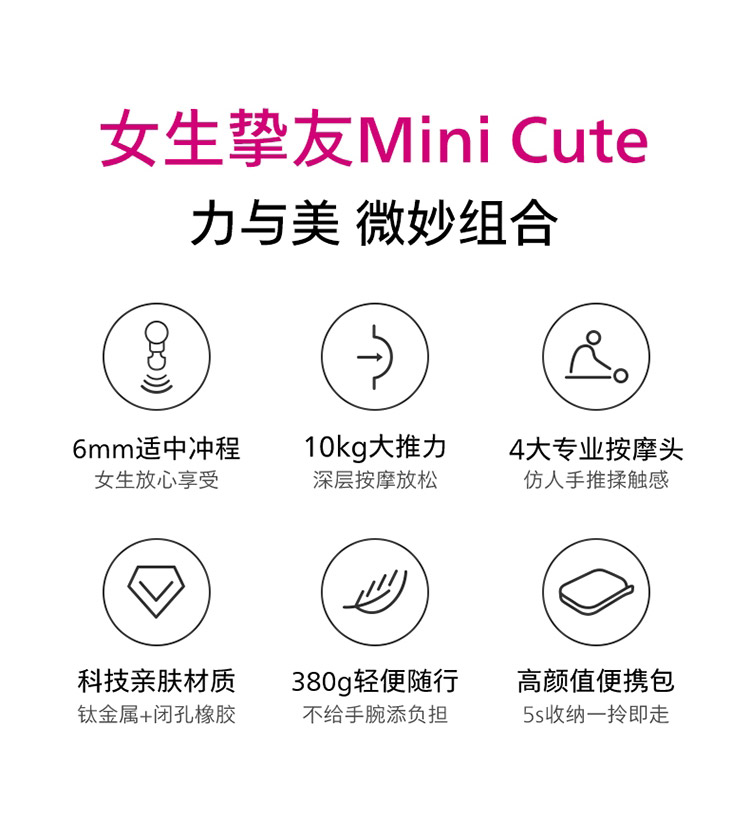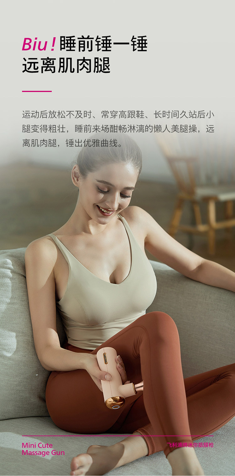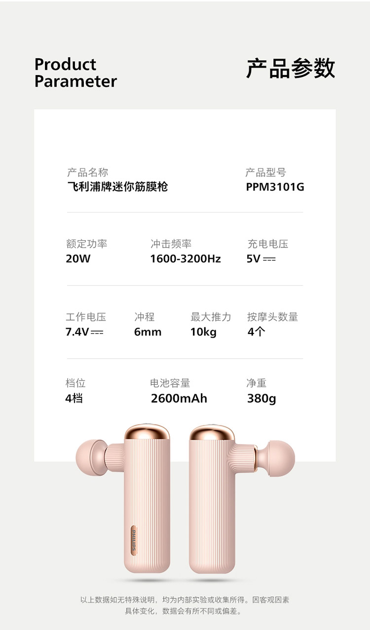 飞利浦PHILIPS筋膜枪肌肉放松按摩仪器迷你mini便携口袋健身电动女生粉色按摩枪