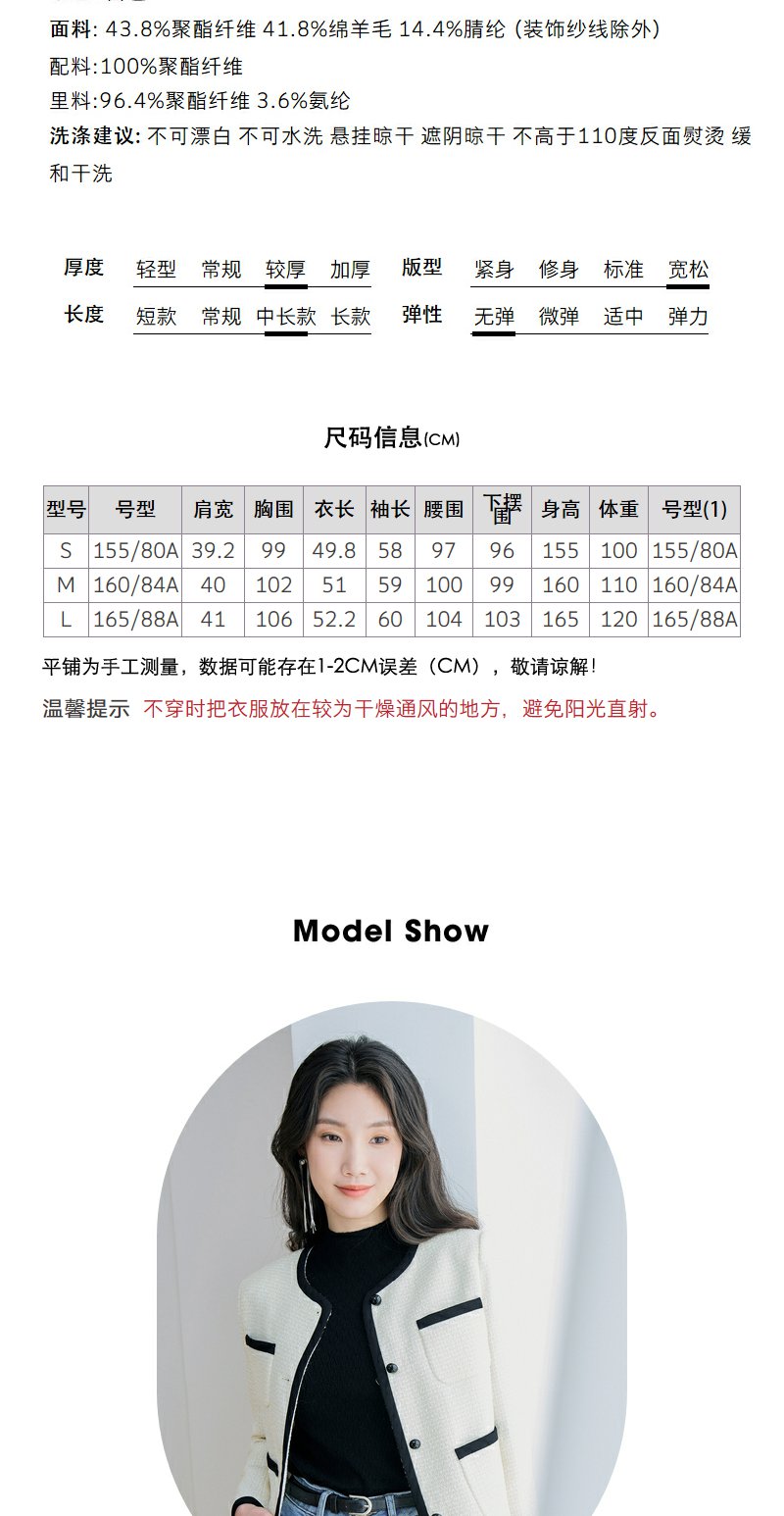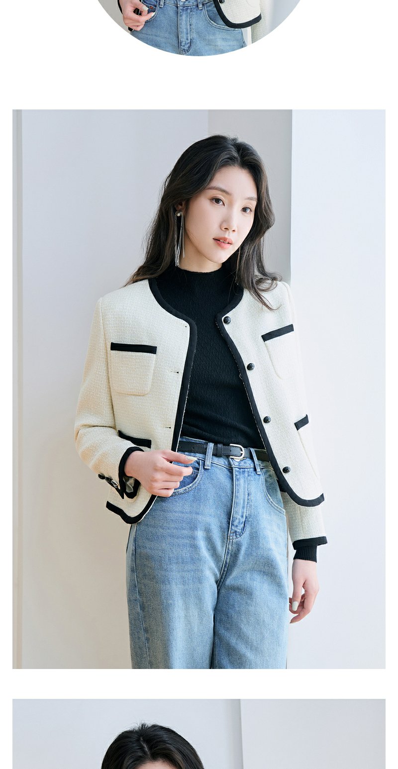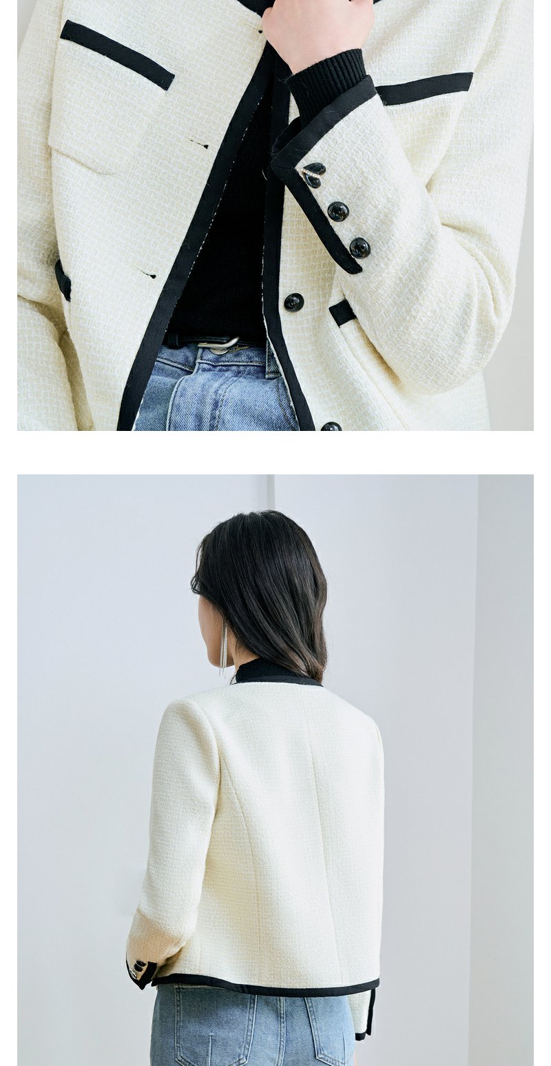 NEELLY纳俪商场同款冬新款小香风羊毛粗花呢外套女撞色显瘦短上衣N25104C04511