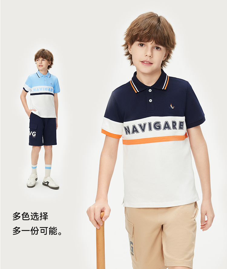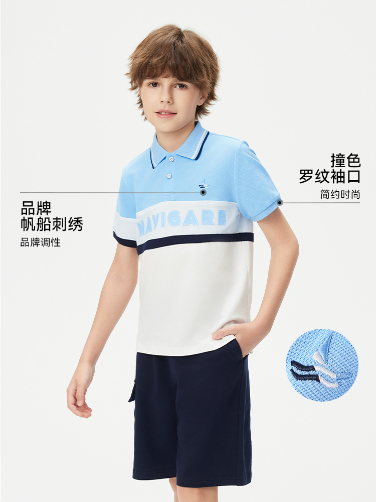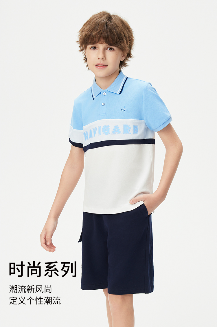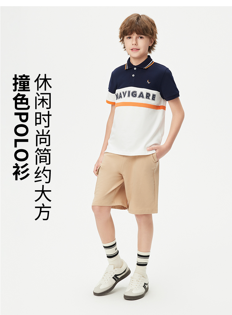 【纳维凯尔】【120-165】Navigare意大利小帆船男童夏款短袖POLO衫