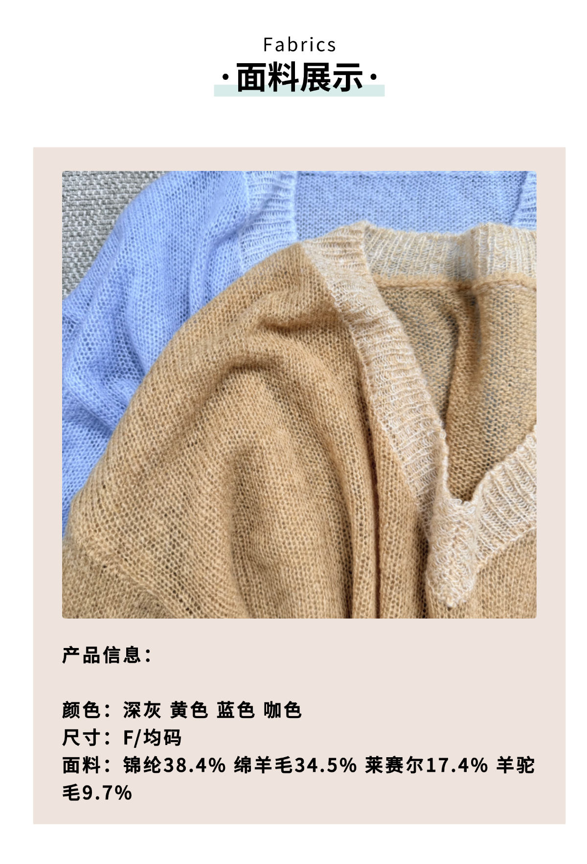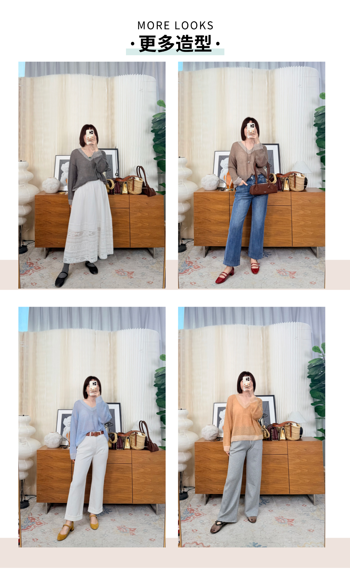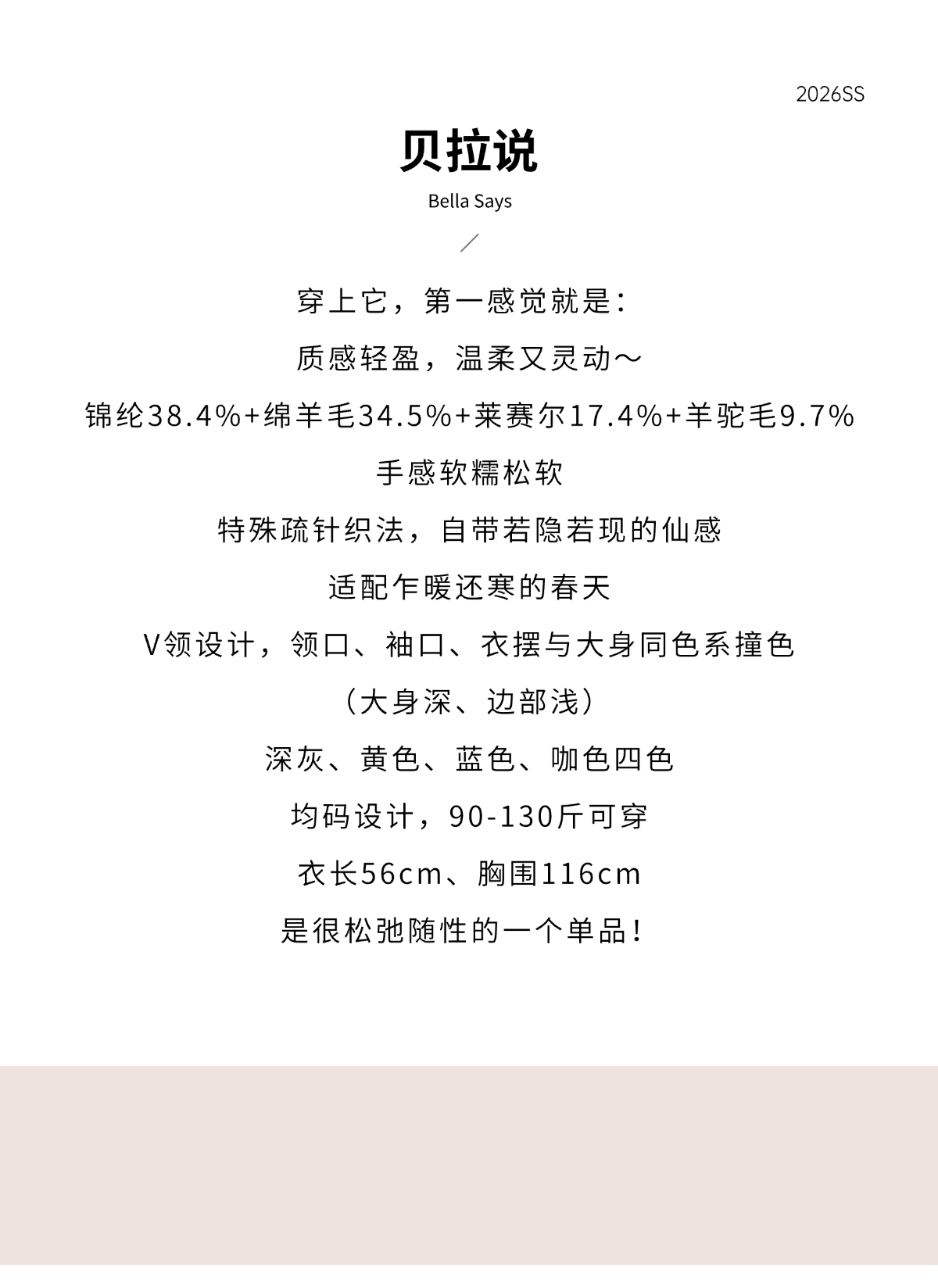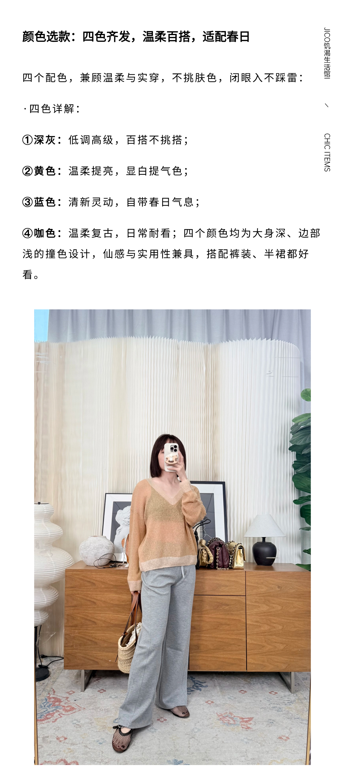 长期主义 V领撞色长袖毛衫 羊毛天丝羊驼毛 若隐若现的轻盈软糯仙系