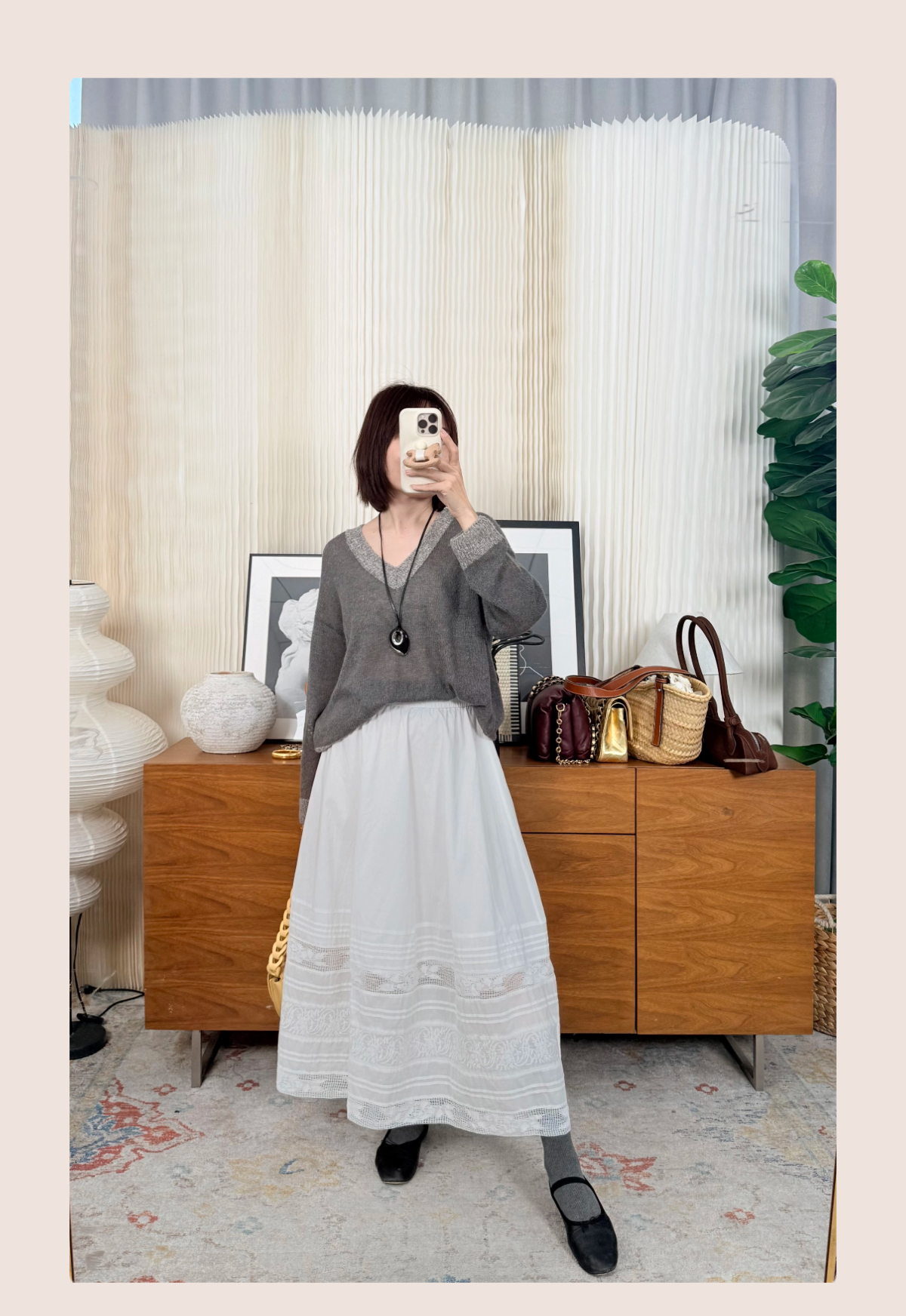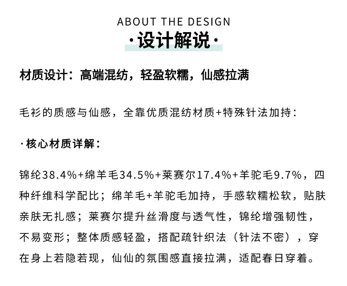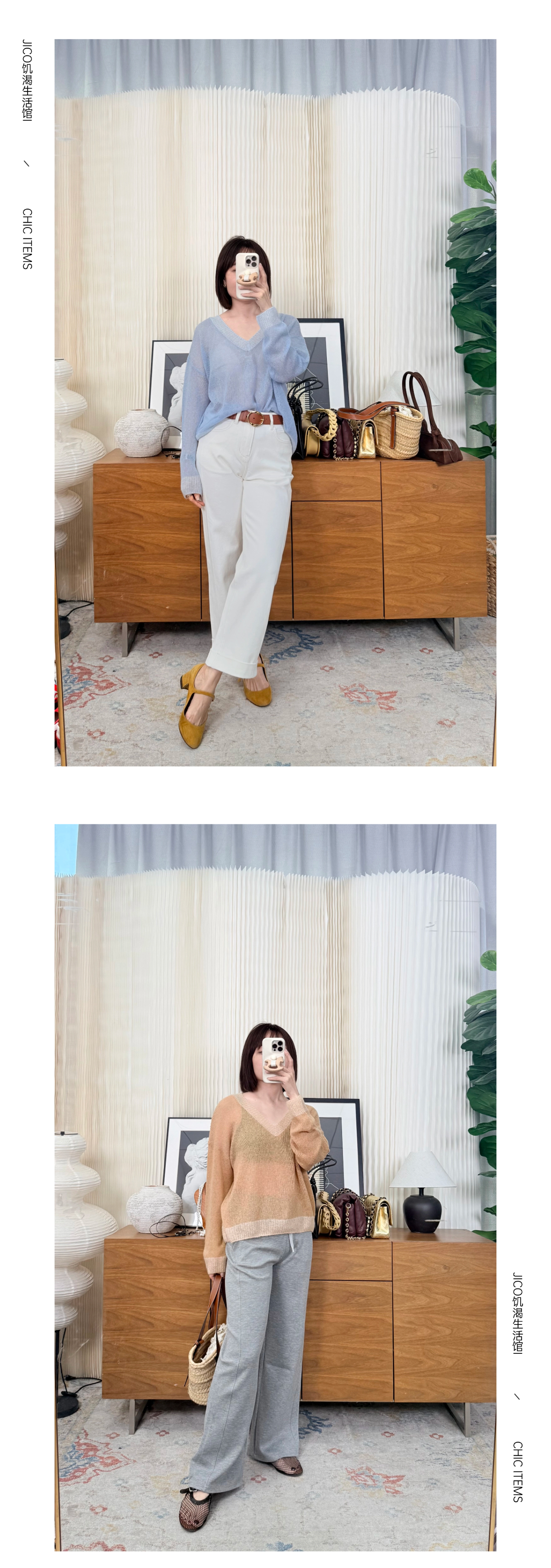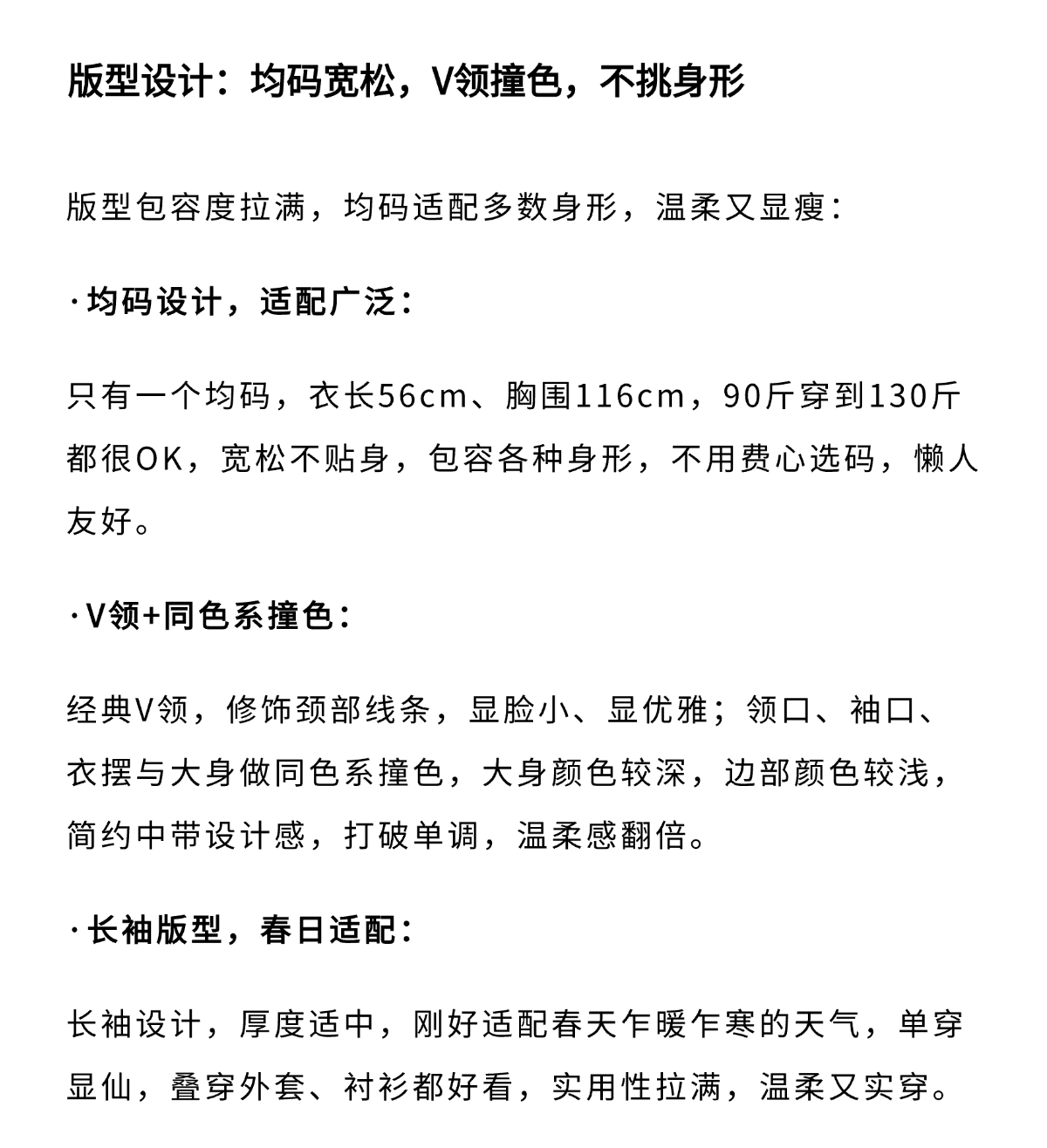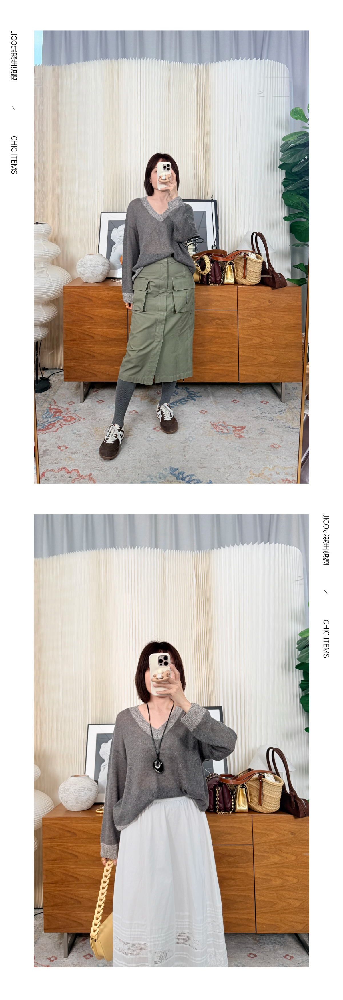 长期主义 V领撞色长袖毛衫 羊毛天丝羊驼毛 若隐若现的轻盈软糯仙系