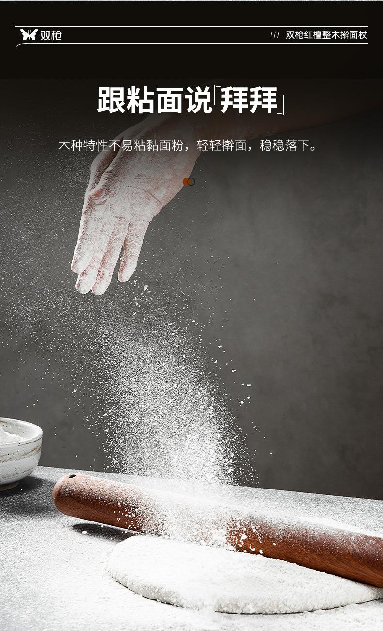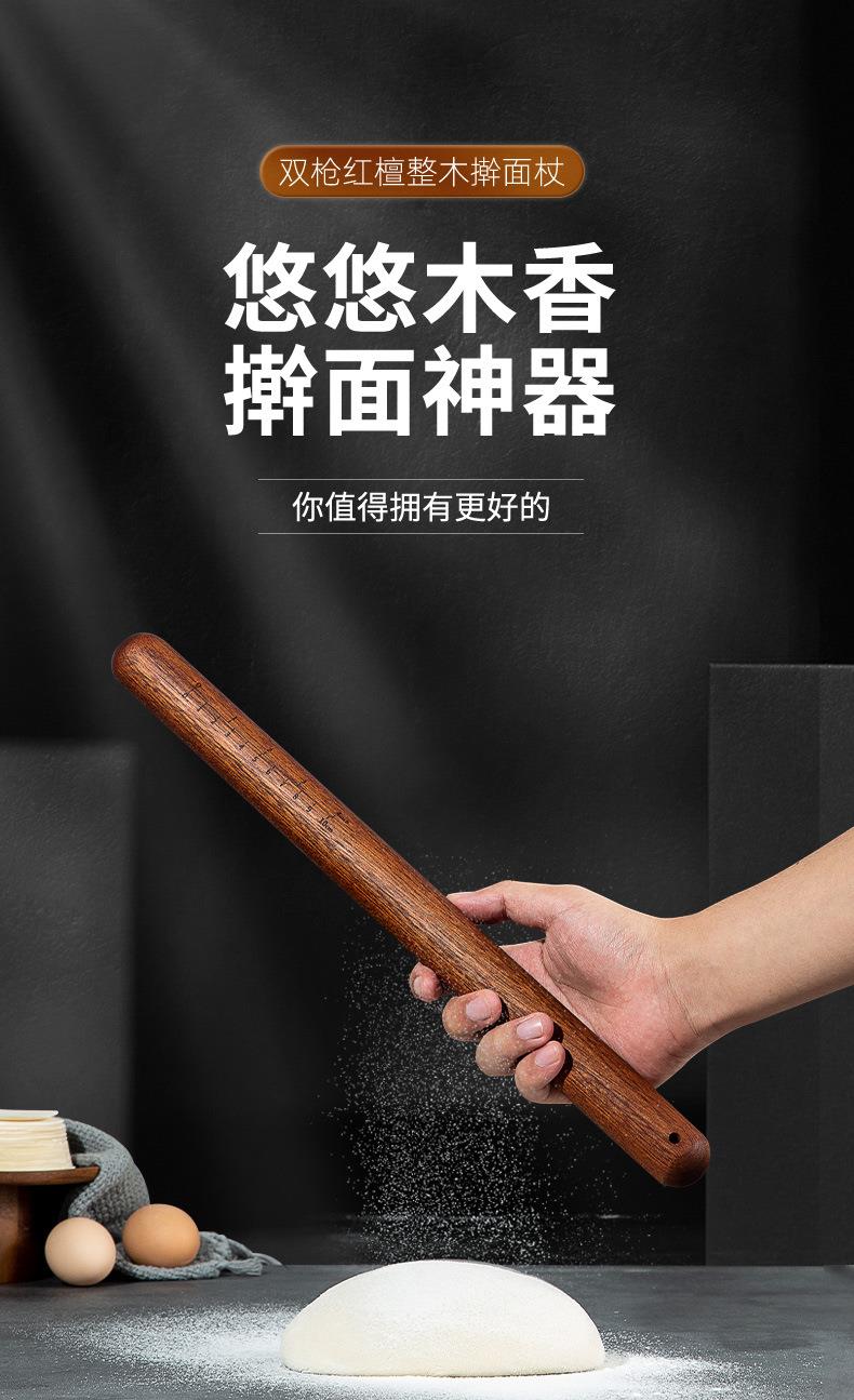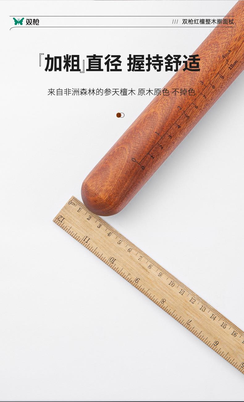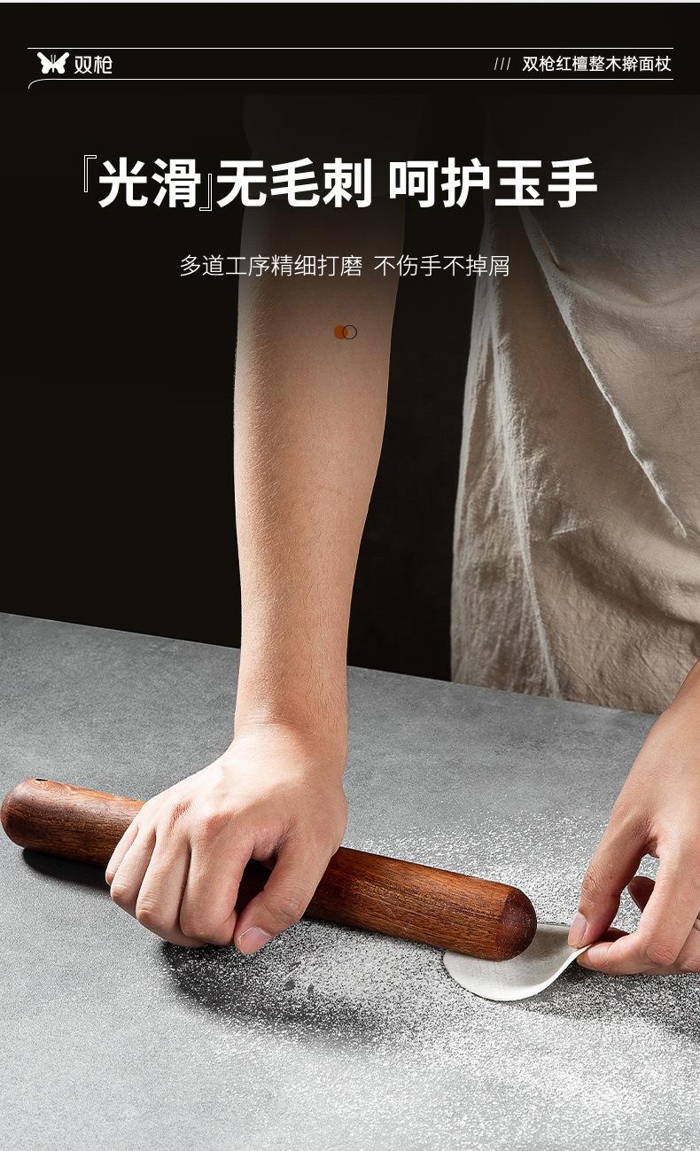 双枪红檀木擀面杖家用实木杆面棒面赶杖擀面棍饺子皮神器不粘大号
