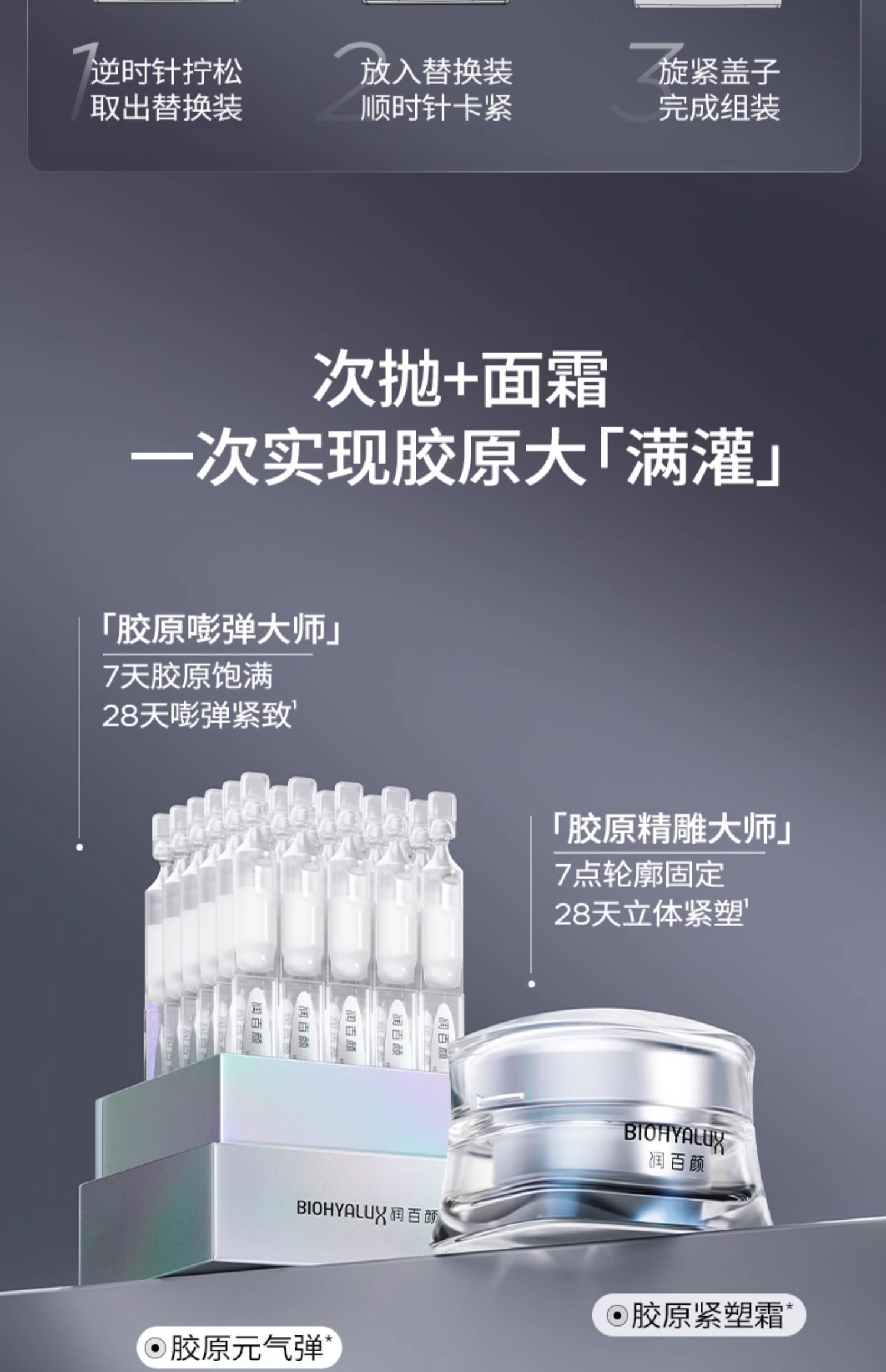 赠同款面霜5g+元气弹次抛6支 润百颜紧致充盈精华面霜 A-5379 (主品效期至27-10)