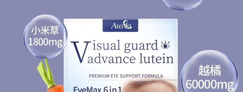 【保税】澳洲 澳爱优(Ausiki)成人叶黄素护眼灵软胶囊 60粒