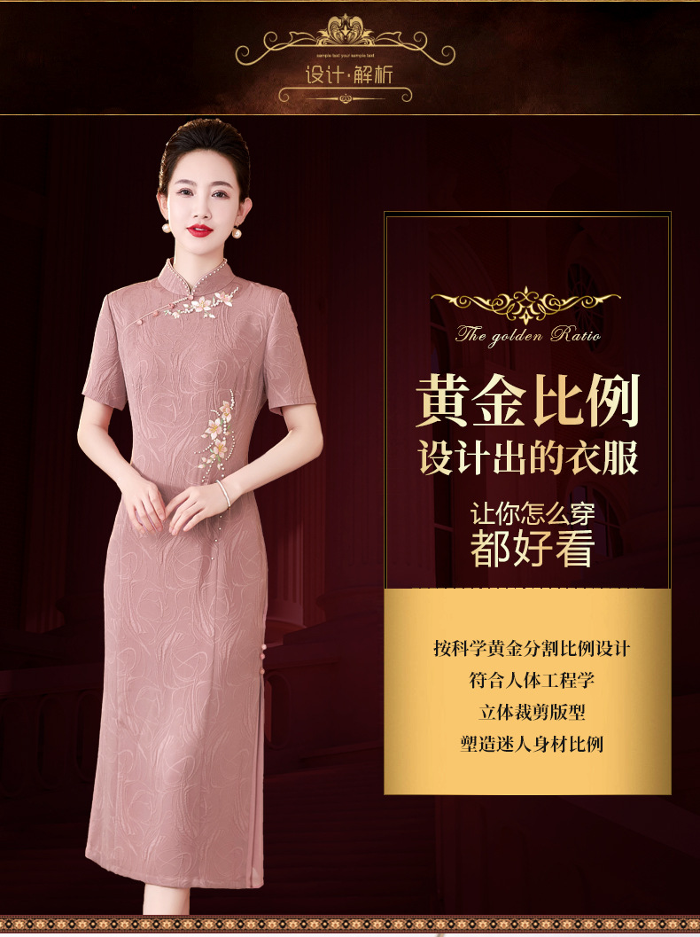 复古国风时尚印花包臀裙,修身一步裙圆领短袖(版型偏小)A字裙 ZMLM0048