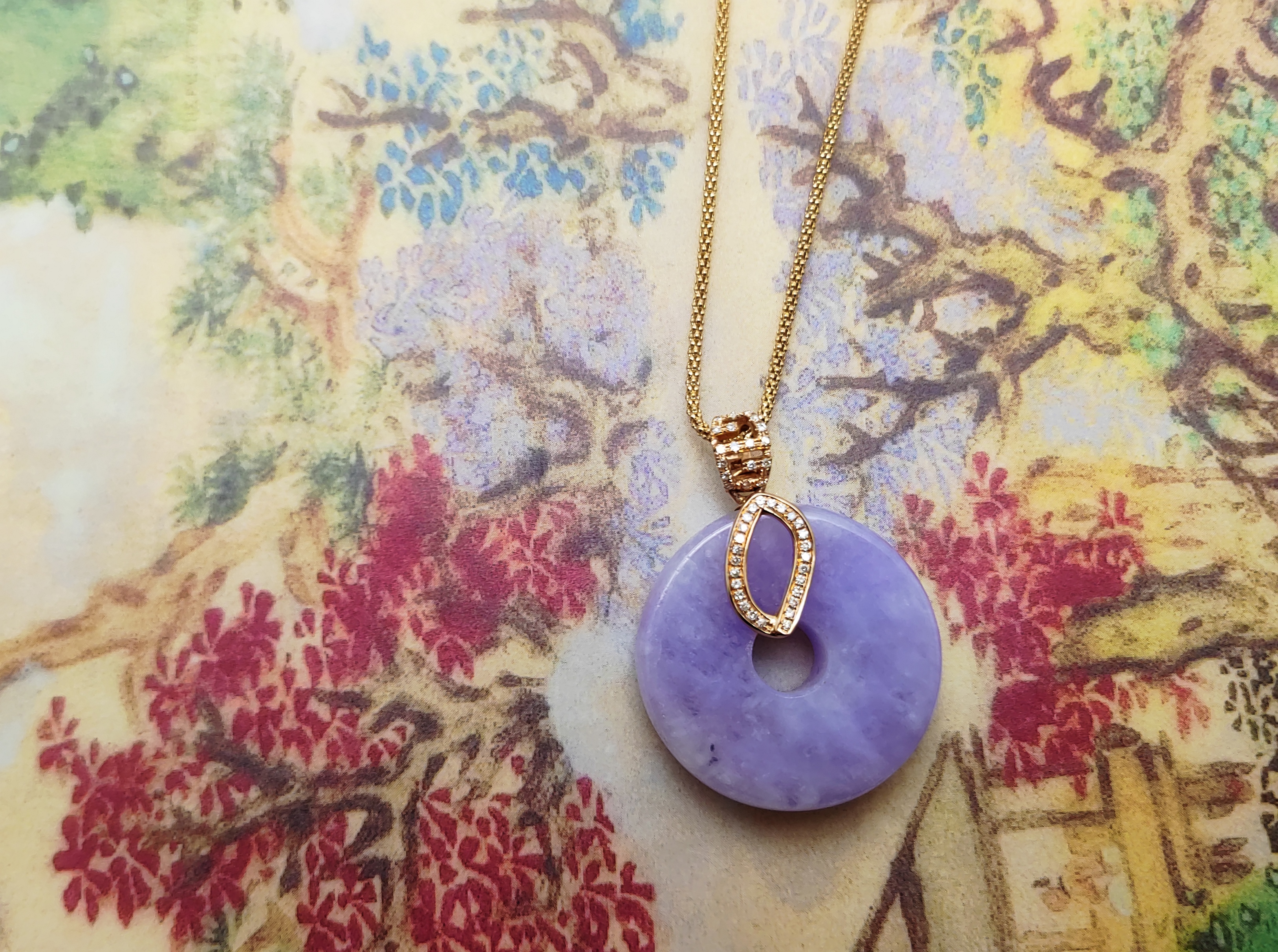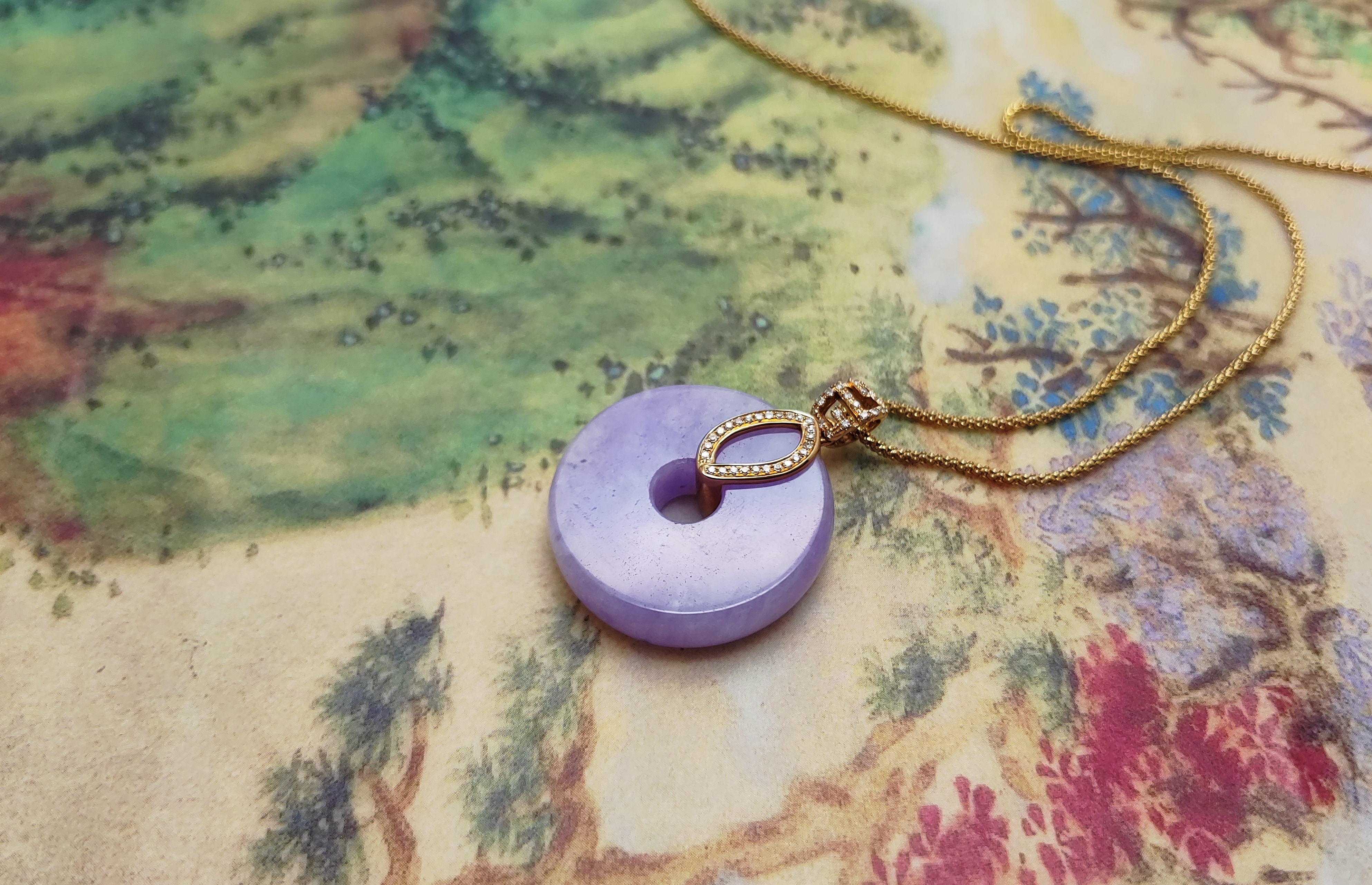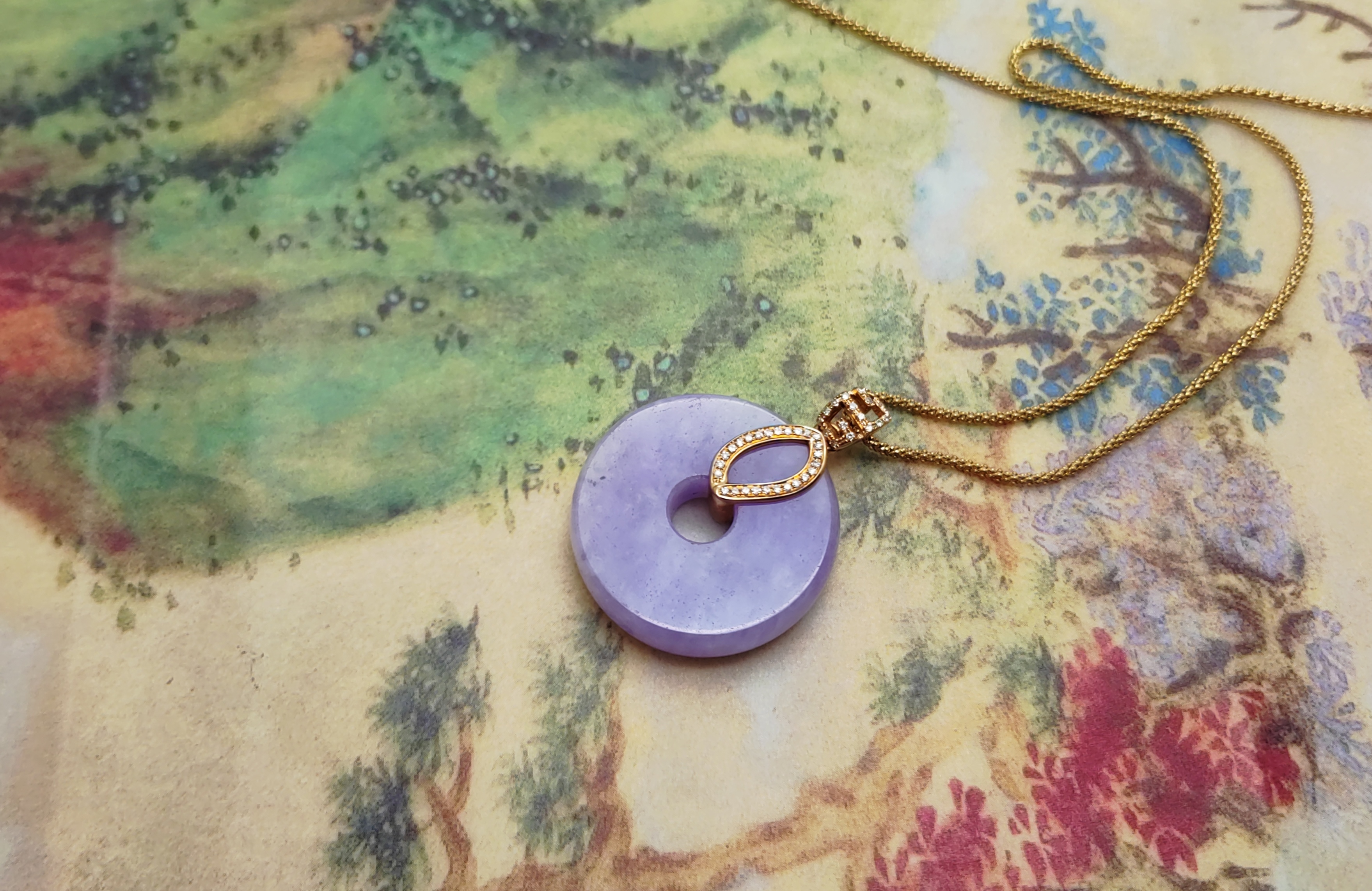珠宝感十足的紫色翡翠平安扣吊坠。