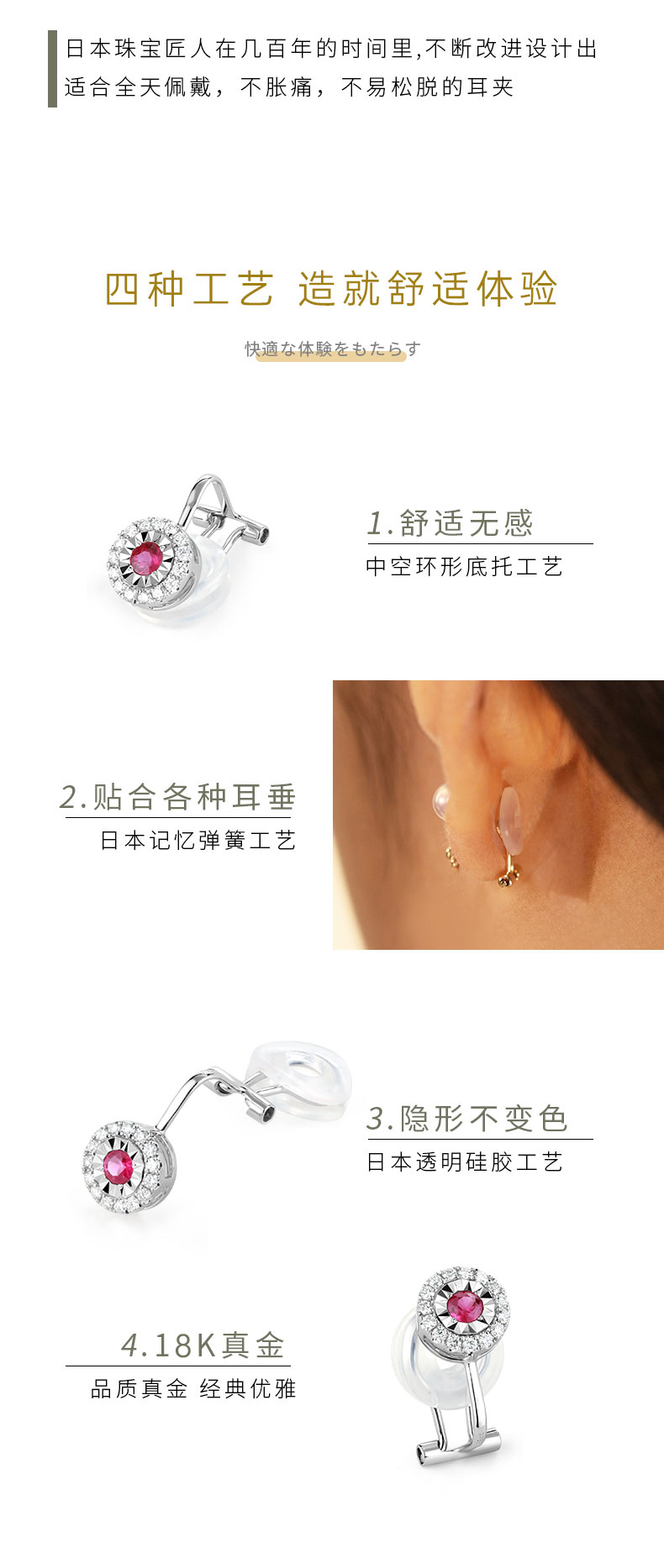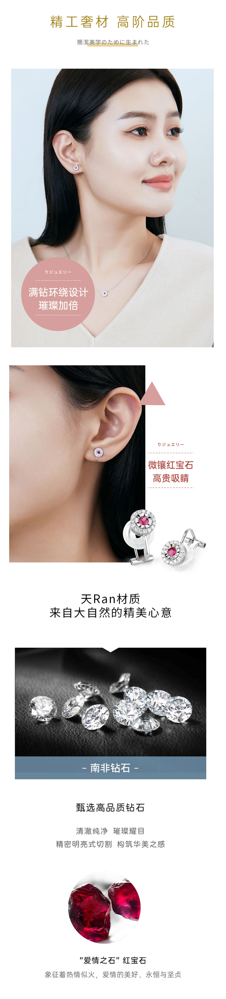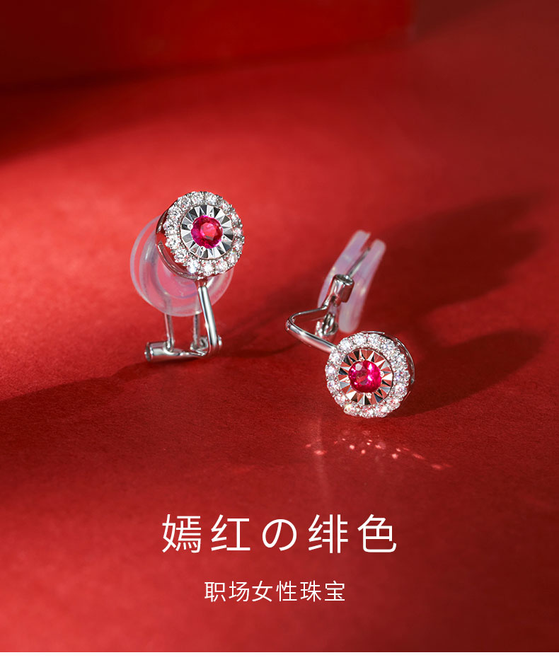 【天猫同款】悦甄 18k金红宝石钻石耳夹 嫣然