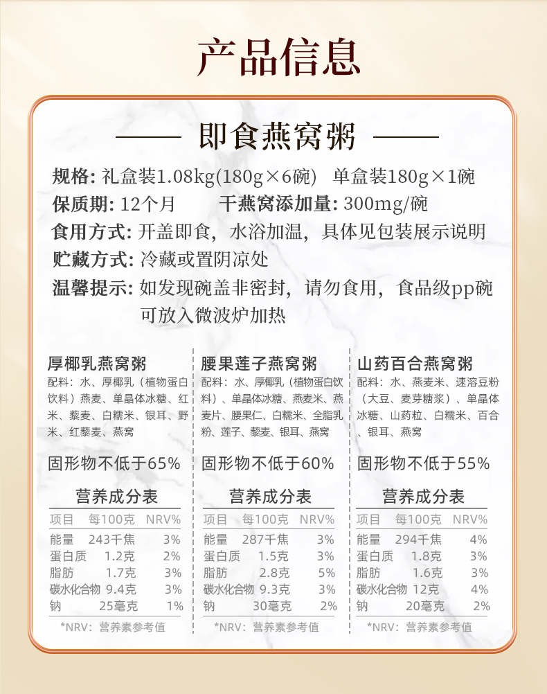 真材实料,看得见的燕窝 即食方便燕窝粥180g/盒