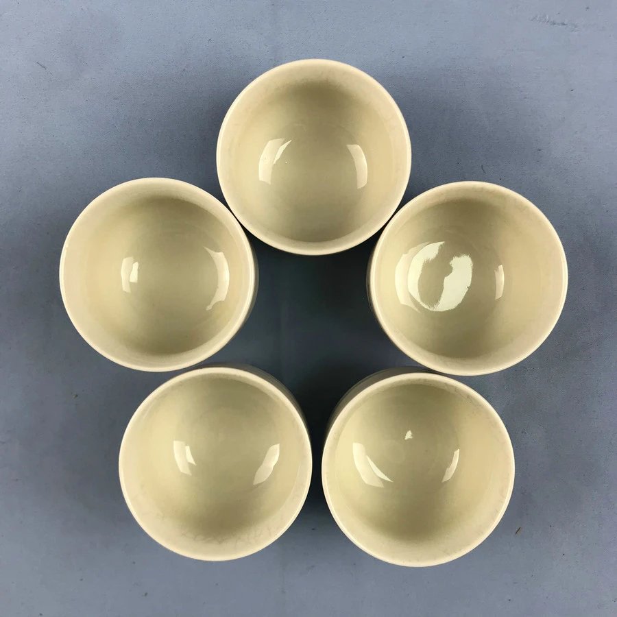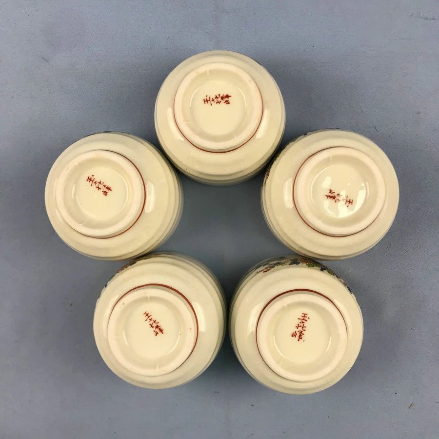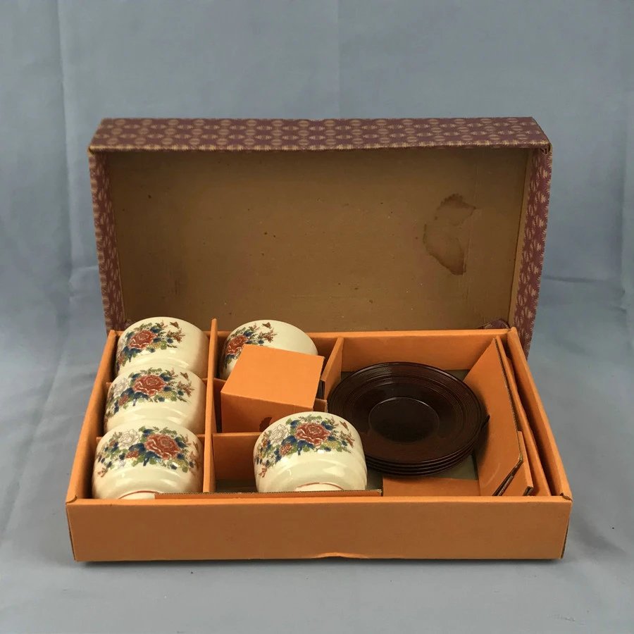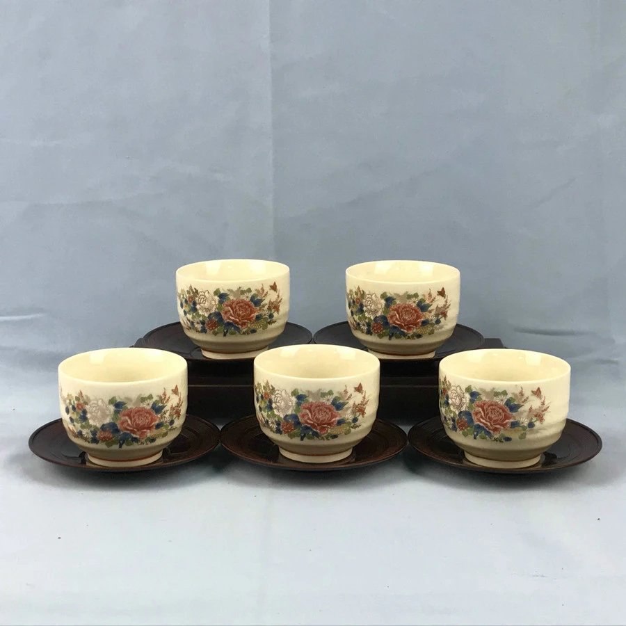 日本玉卉峰彩蝶穿花白瓷茶碗 5杯5碟 原盒保留
