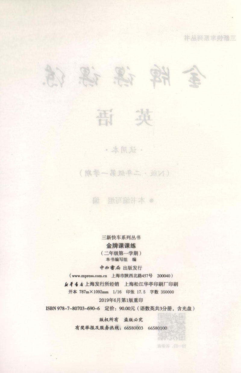 金牌课课练 英语N版 2年级上册/二年级第一学期 含光盘 三新快车系列丛书 上海小学教材教辅配套同步辅导课堂练习 中西书局