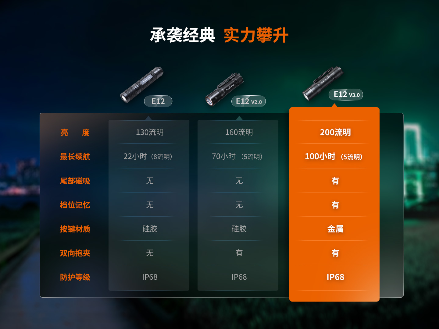 Fenix E12 V3.0 家用尾部磁吸便捷式LED防水迷你小手电钥匙扣手电筒