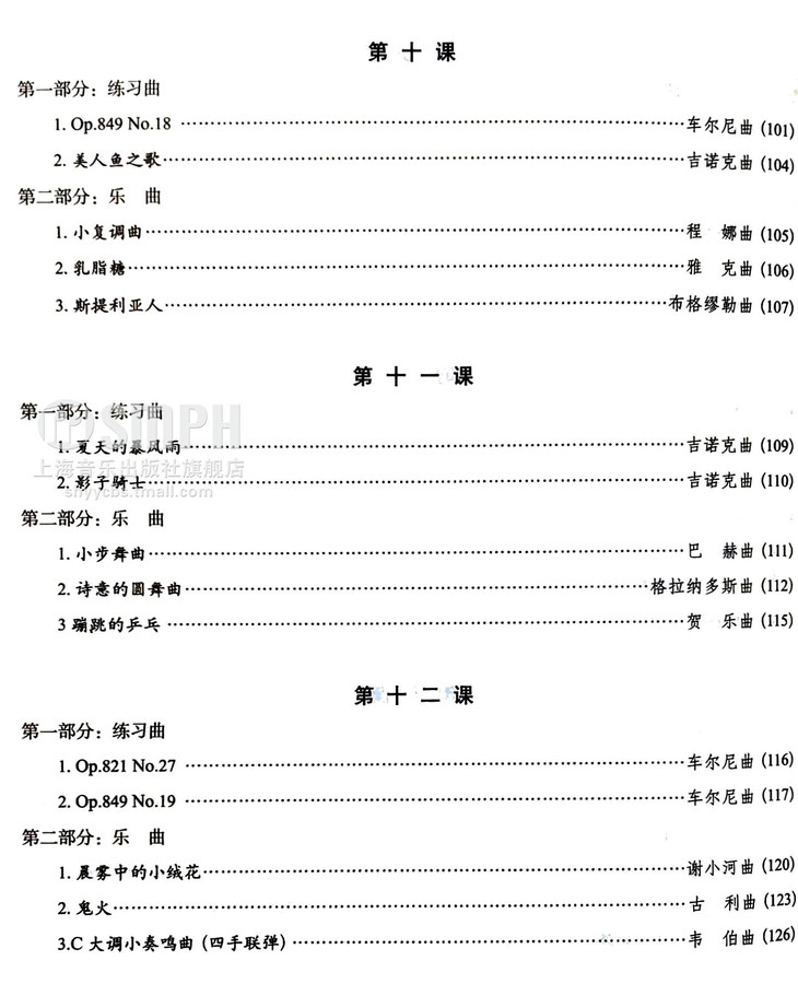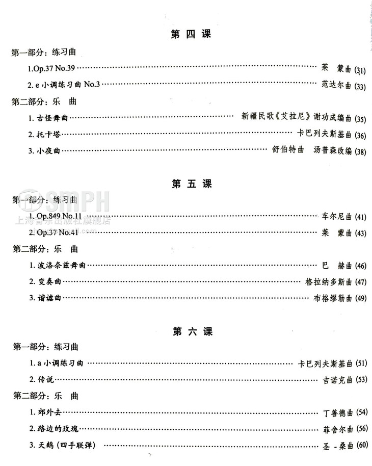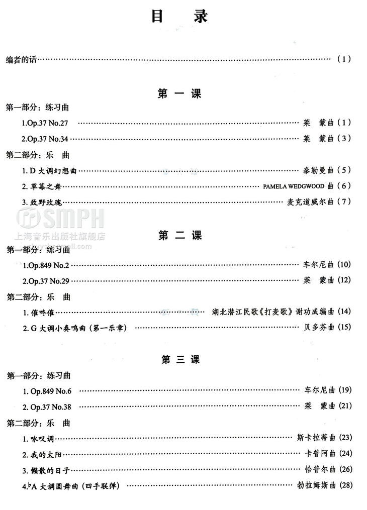使用本书时,教师可遵循因材施教的原则,针对不同学生的实际情况对曲目进行灵活搭配。