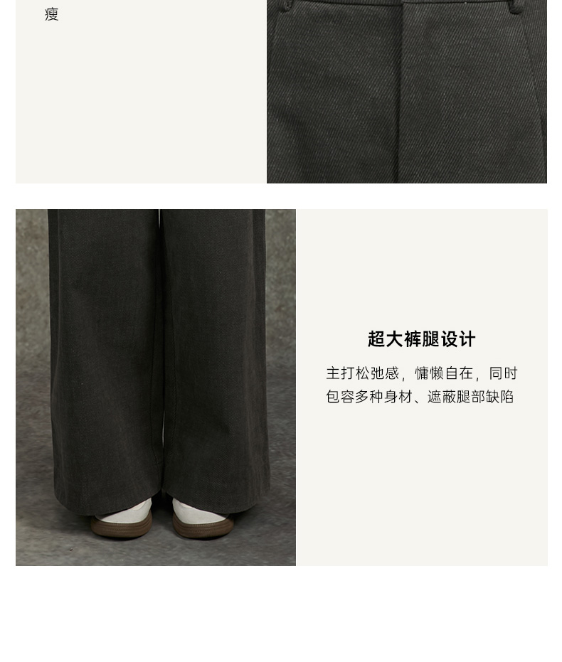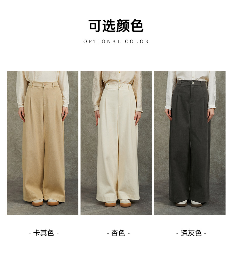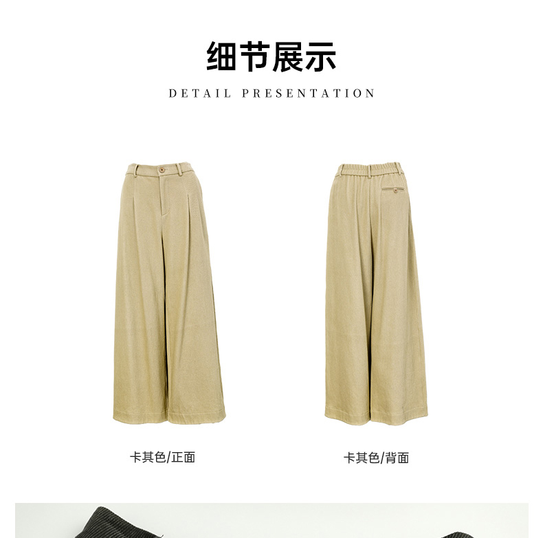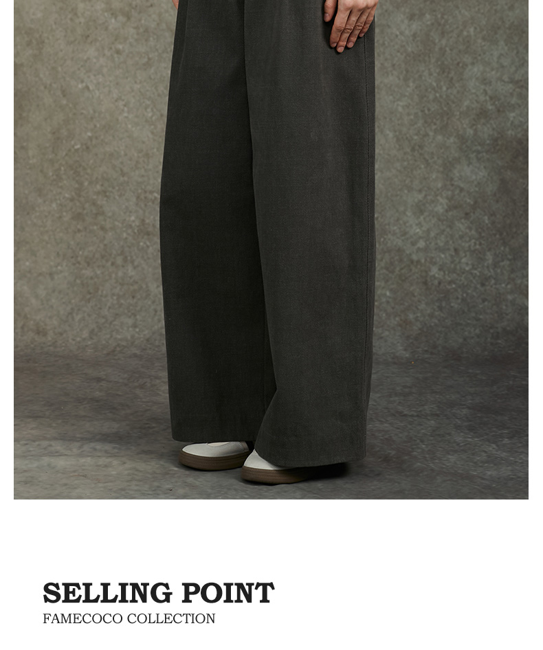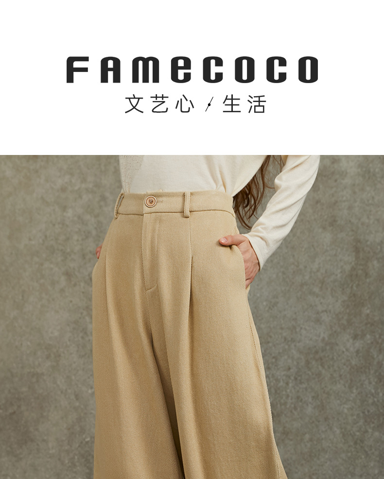 Famecoco范可儿宽松直筒裤纯色松紧腰休闲慵懒文艺范FAC6GA003