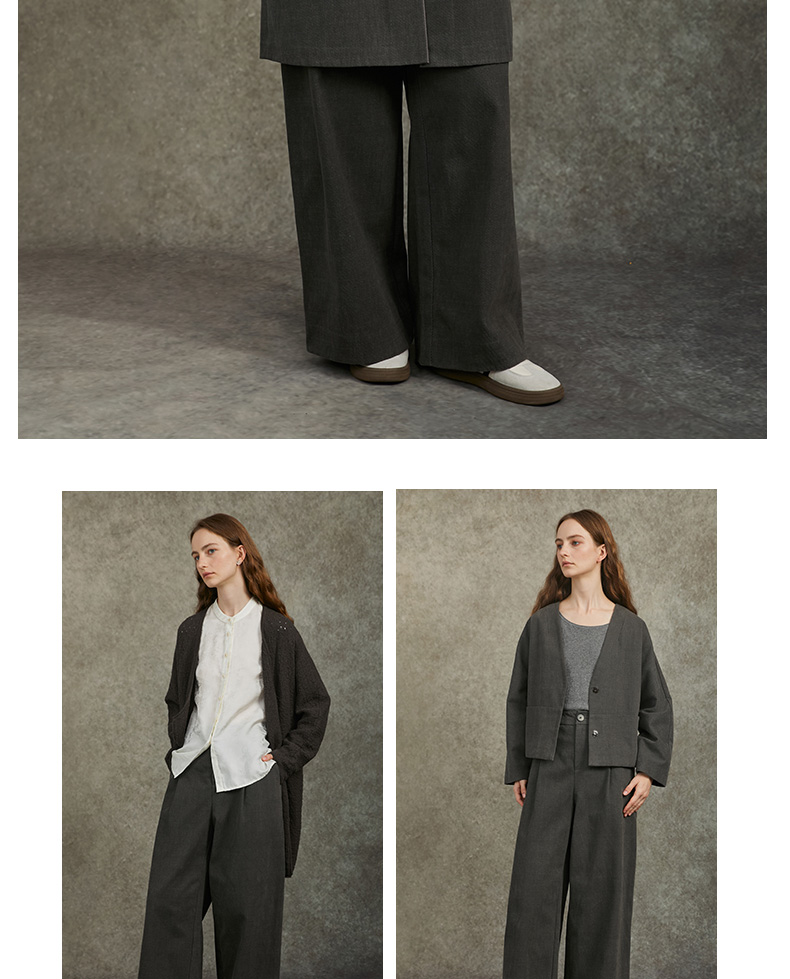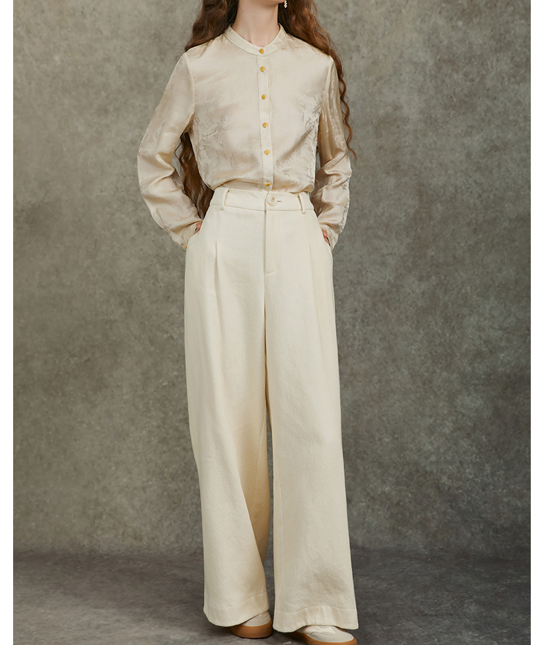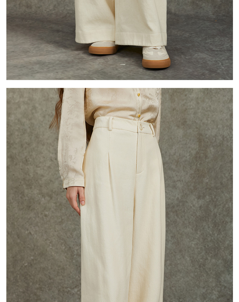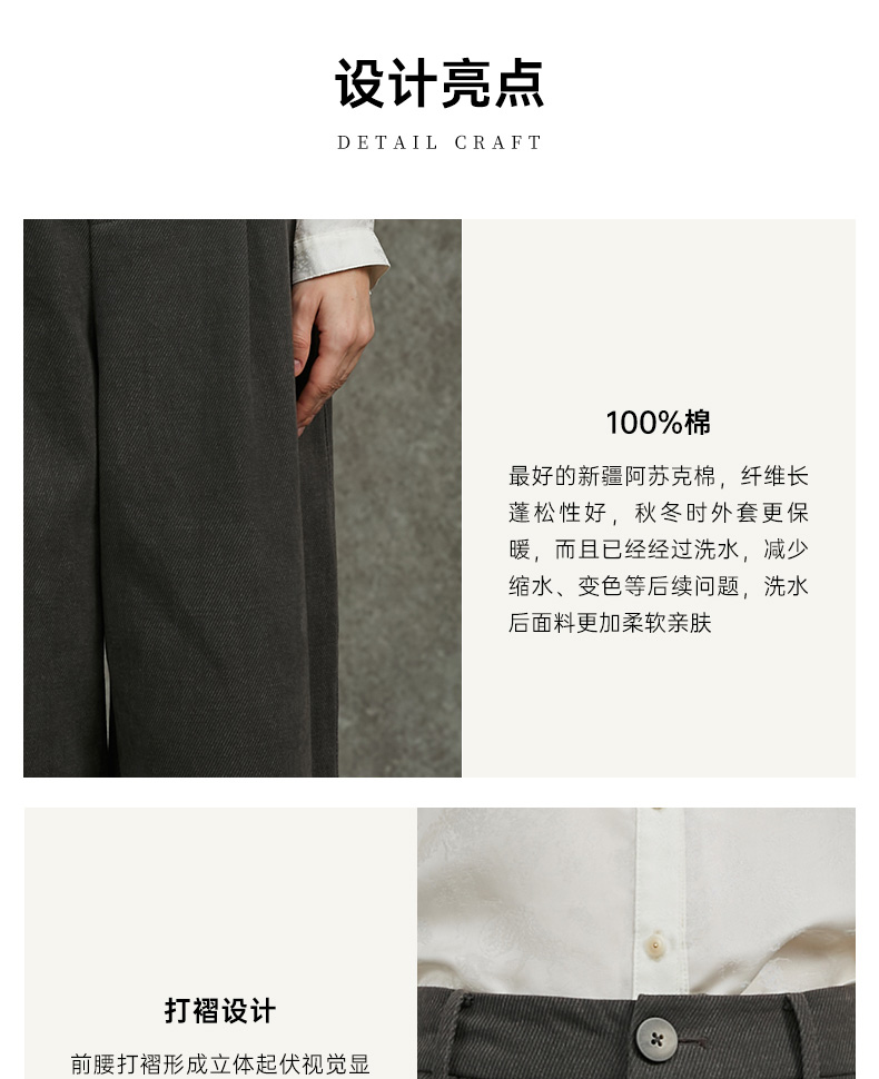Famecoco范可儿宽松直筒裤纯色松紧腰休闲慵懒文艺范FAC6GA003
