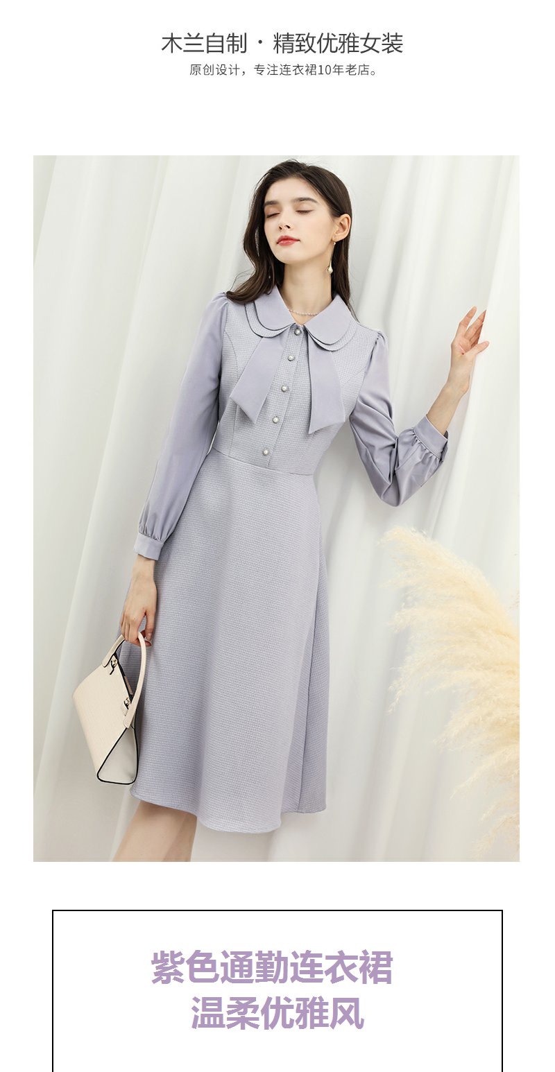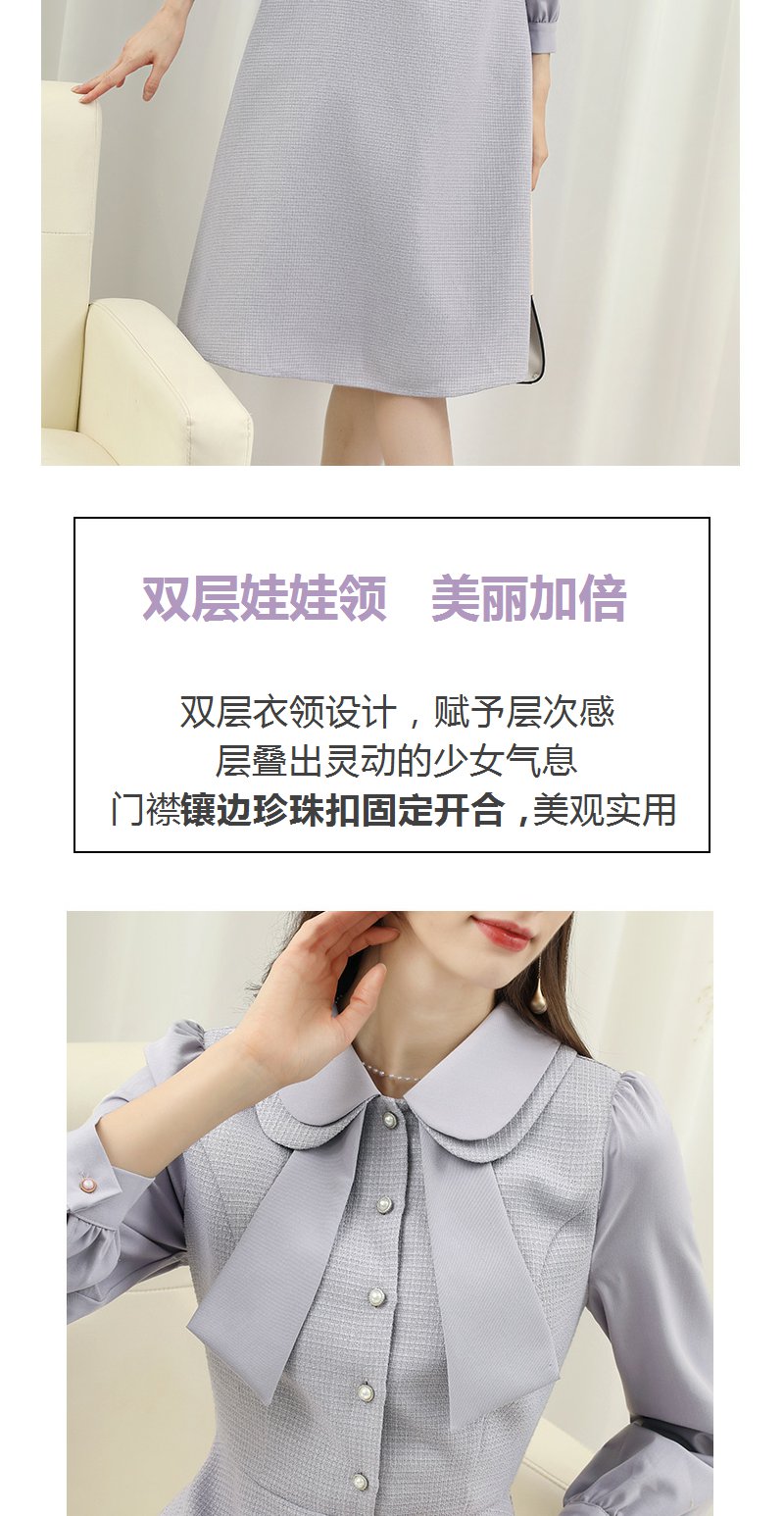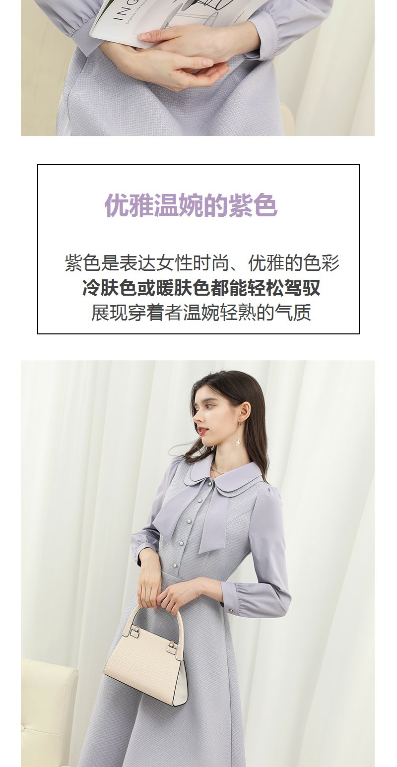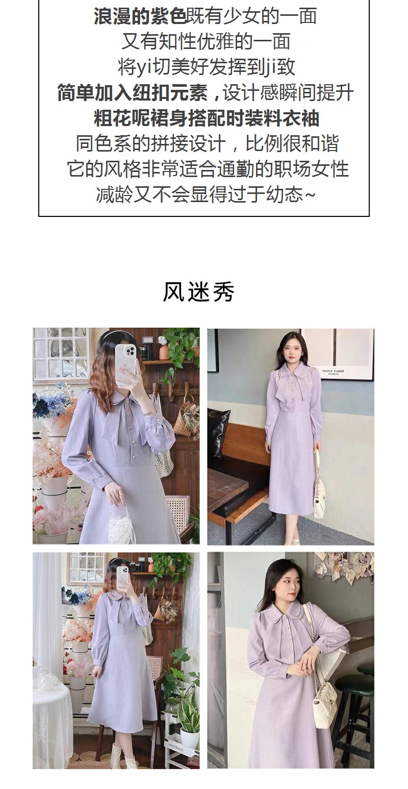 未风紫色娃娃领小香风连衣裙女开春2025春季新款女装气质法式裙子