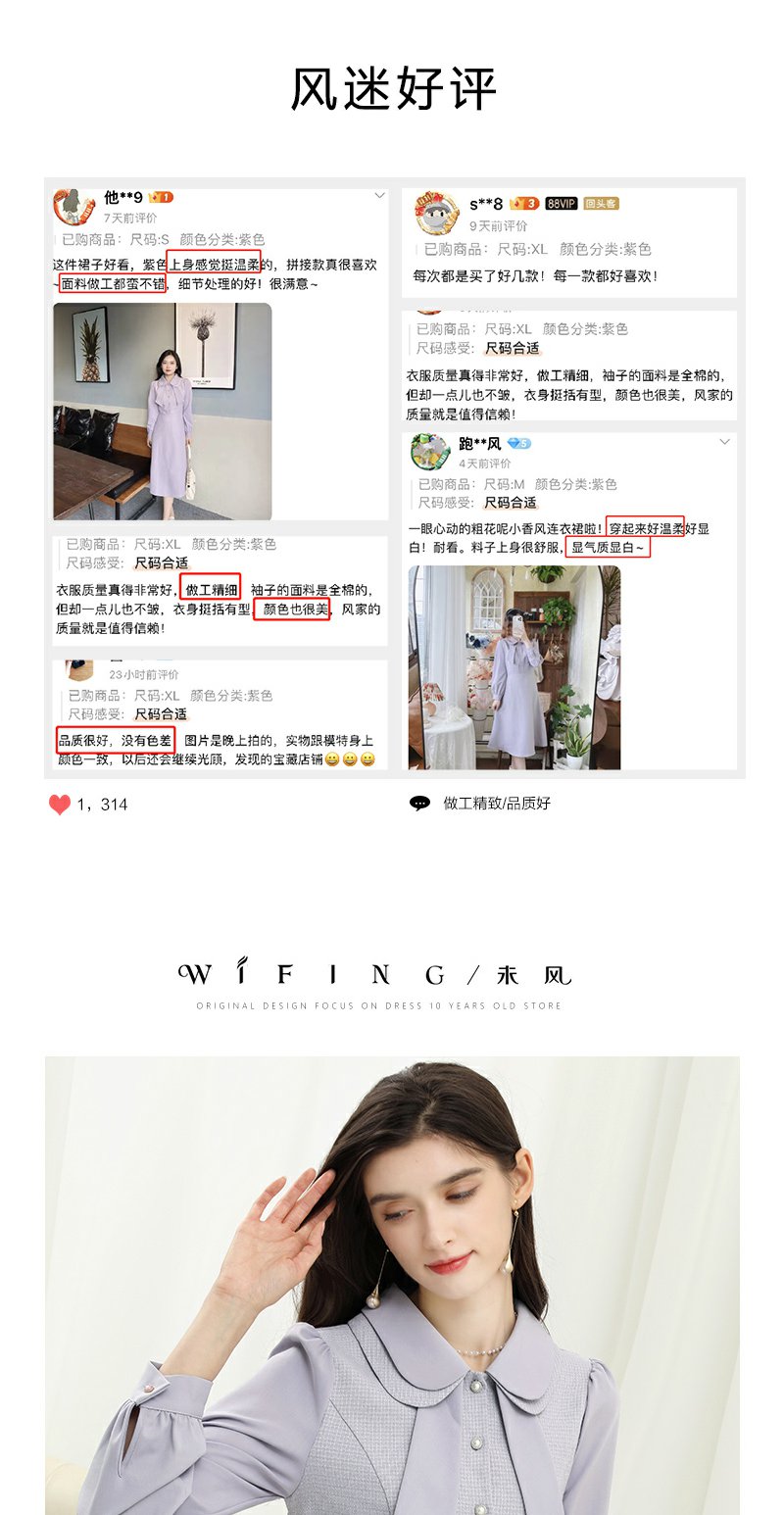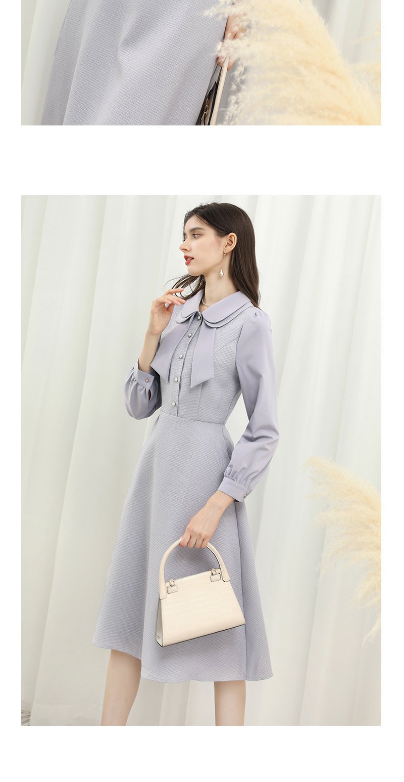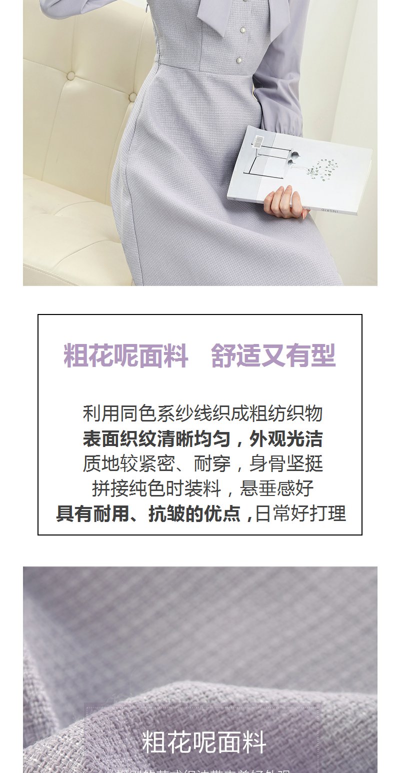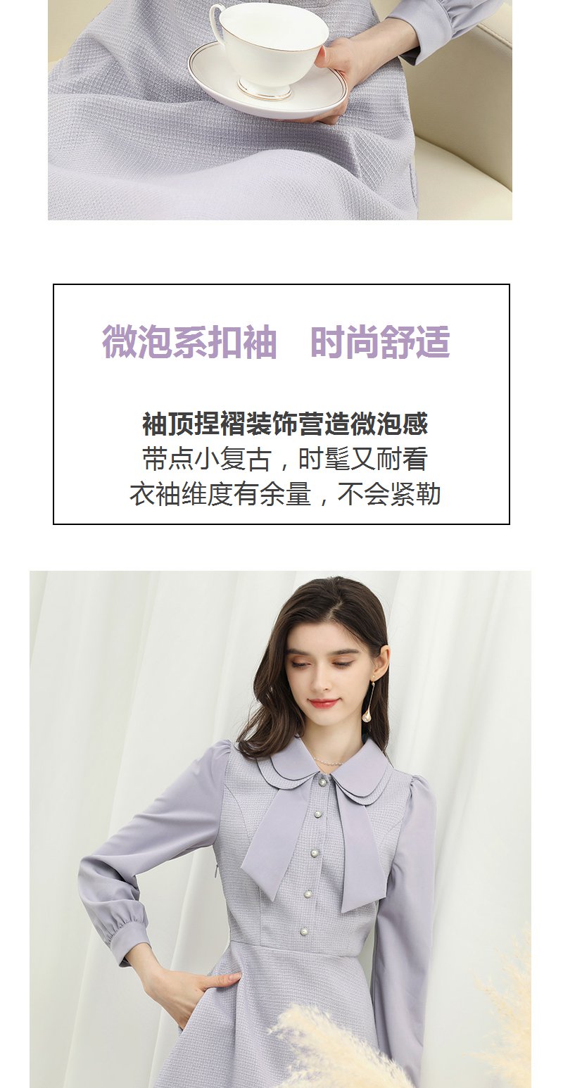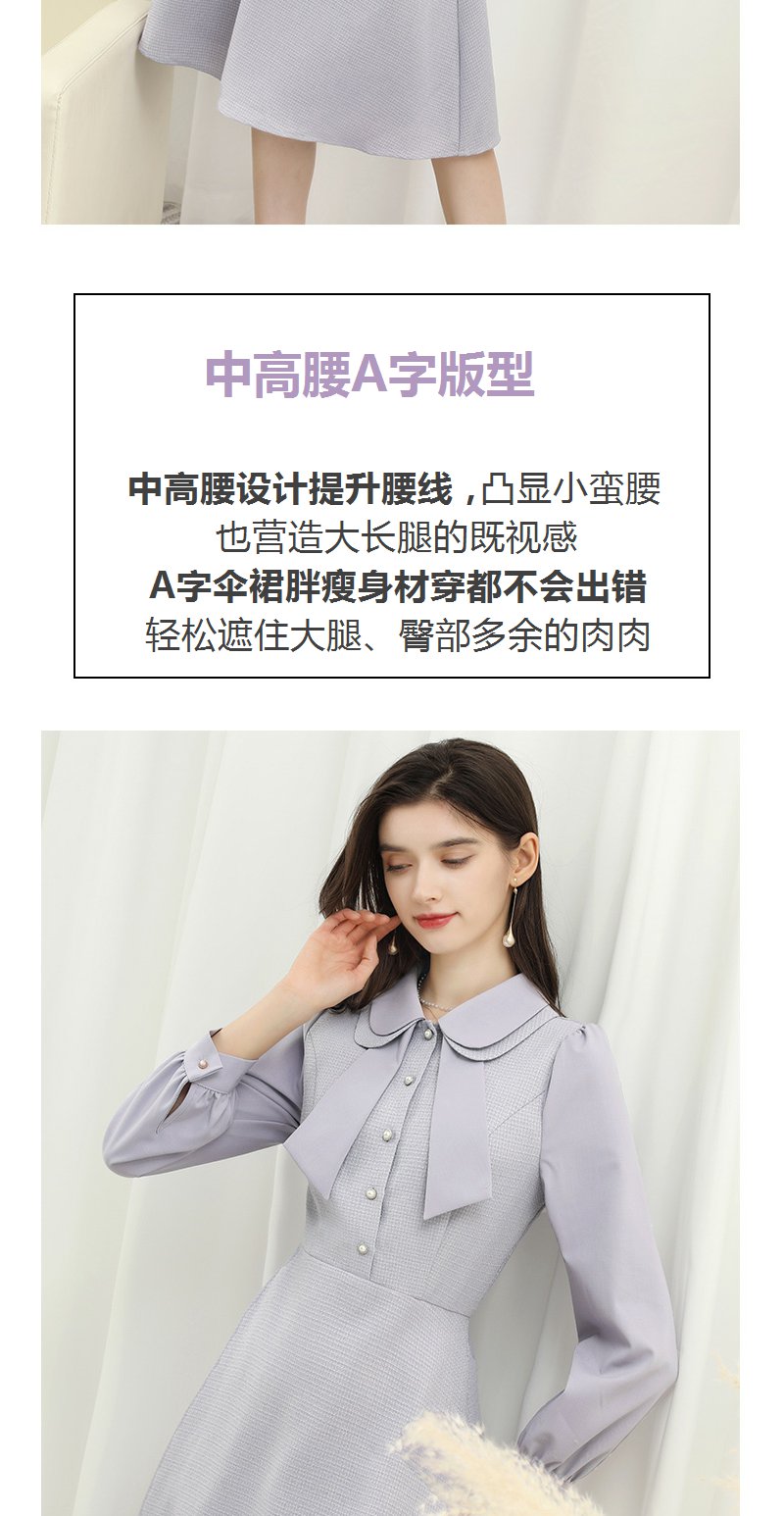 未风紫色娃娃领小香风连衣裙女开春2025春季新款女装气质法式裙子