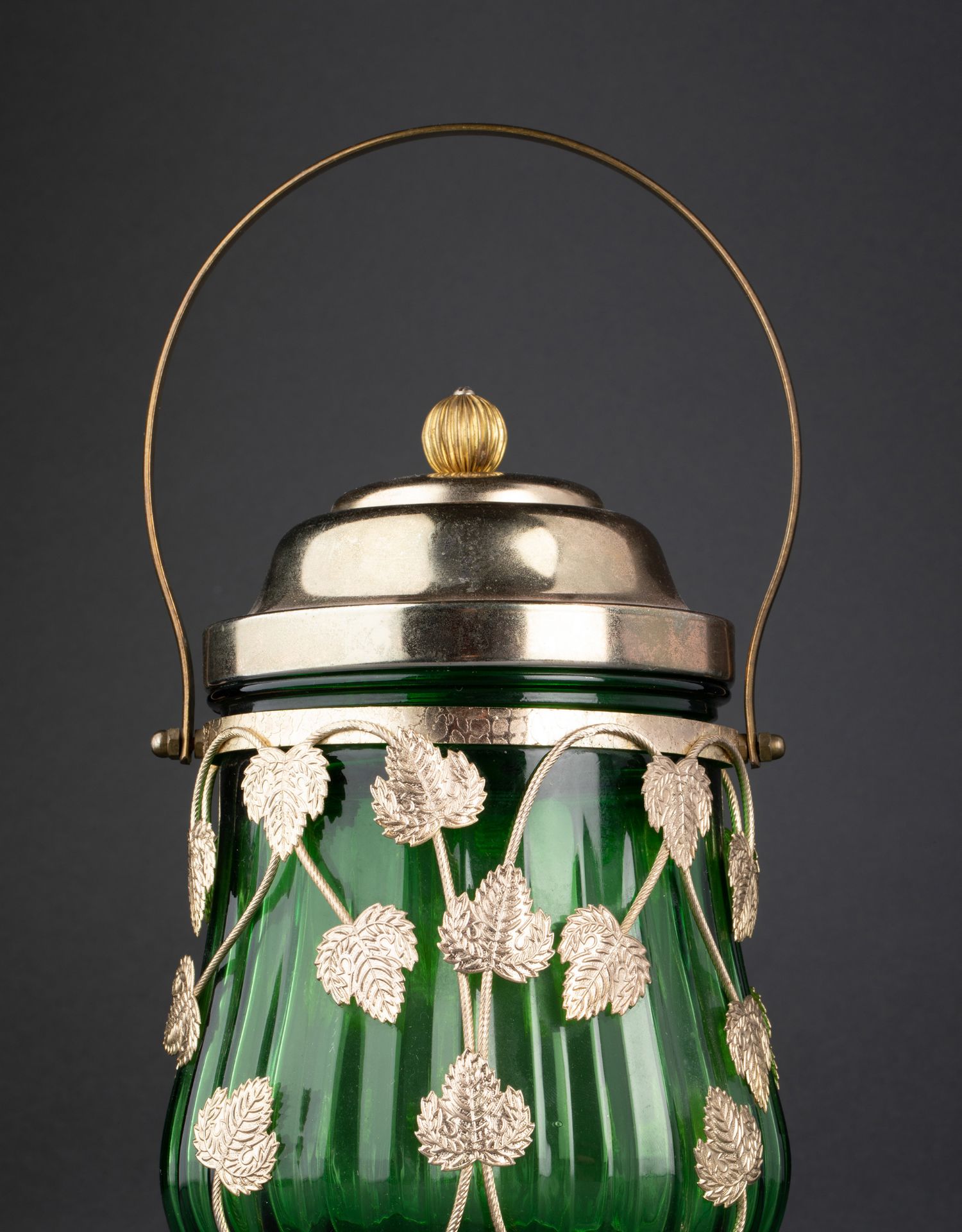 独角鹿西洋古董法国新艺术风格植物主题装饰八音盒水晶罐饼干桶