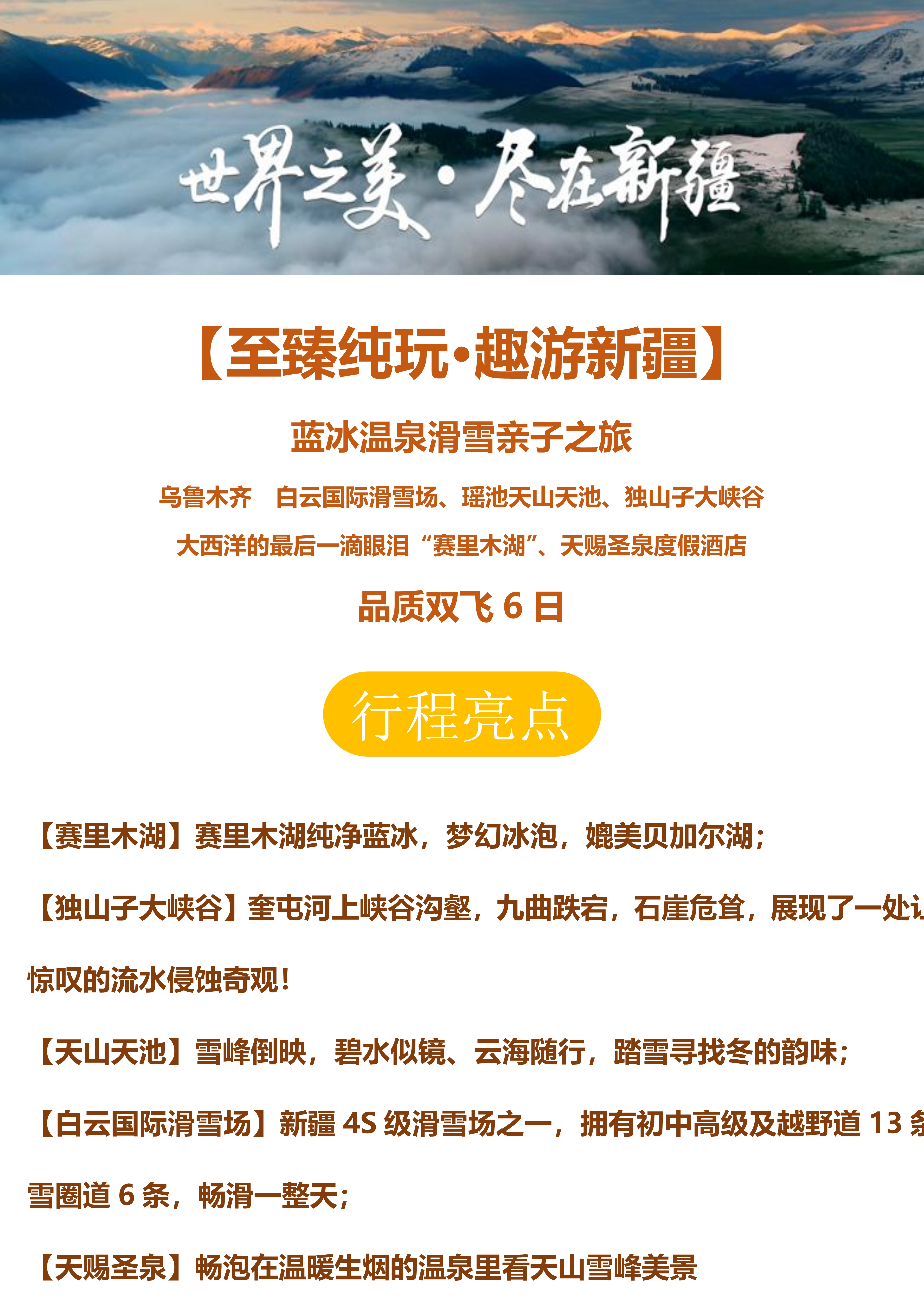 【至臻纯玩·趣游新疆】蓝冰温泉滑雪亲子6日